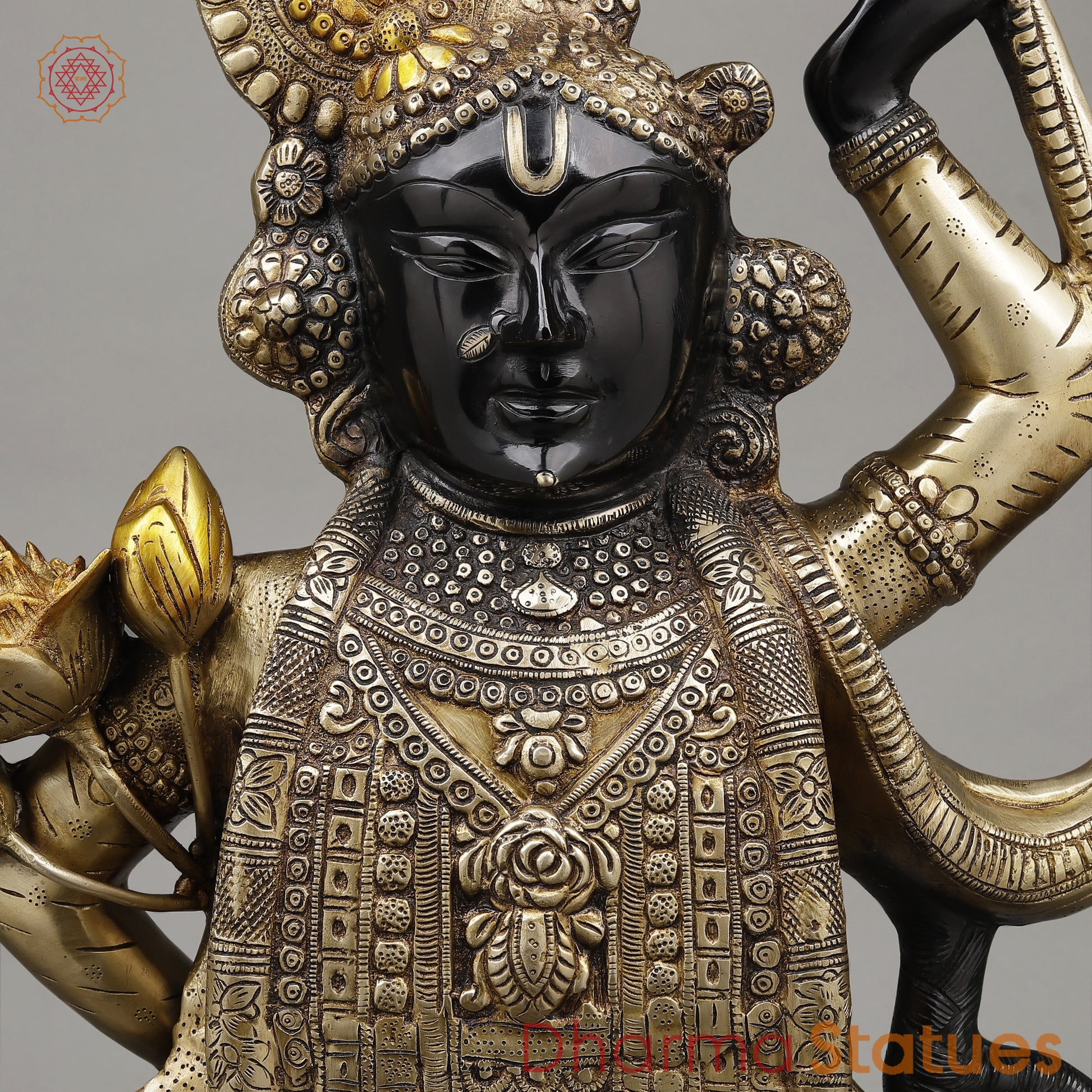 Brass Srinath Ji Standing, Golden & Black& Smooth Finish, 32"