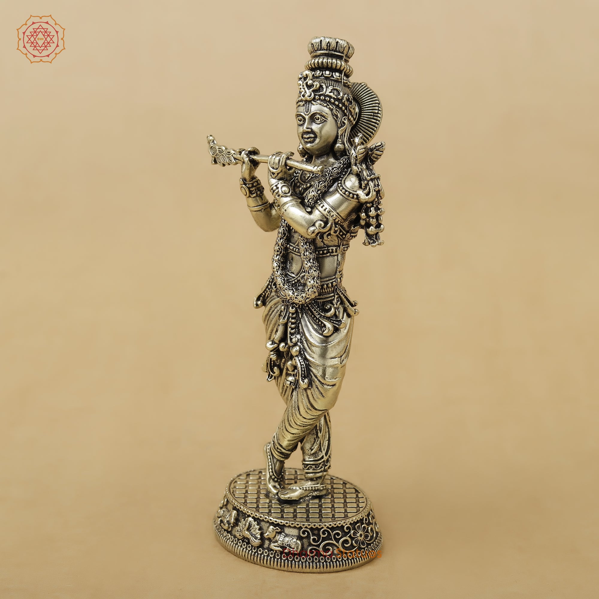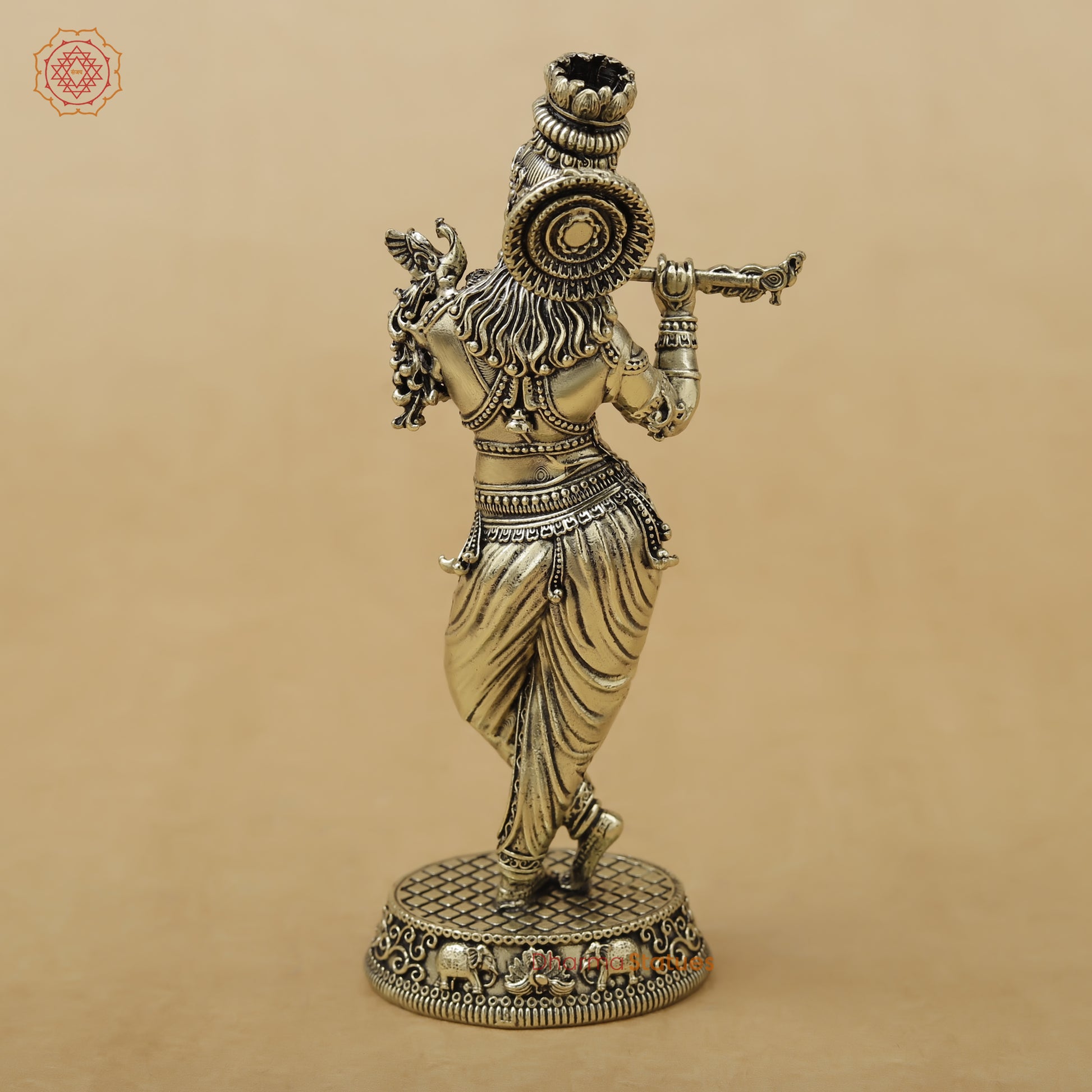 Celebrate divine love and serenity with this beautifully crafted Brass Lord Krishna Statue. Fine-casted to highlight intricate detailing, the idol depicts Krishna gracefully playing the flute in his iconic tribhanga posture. The exquisite craftsmanship and refined antique finish make it a perfect spiritual décor piece for home temples, living spaces, or gifting.