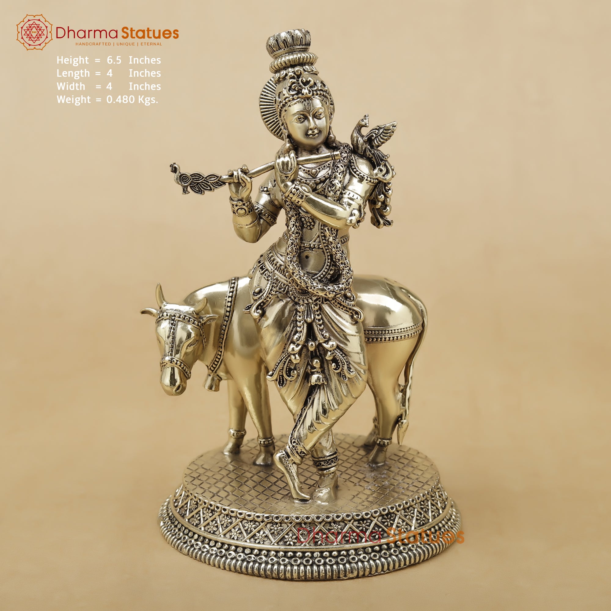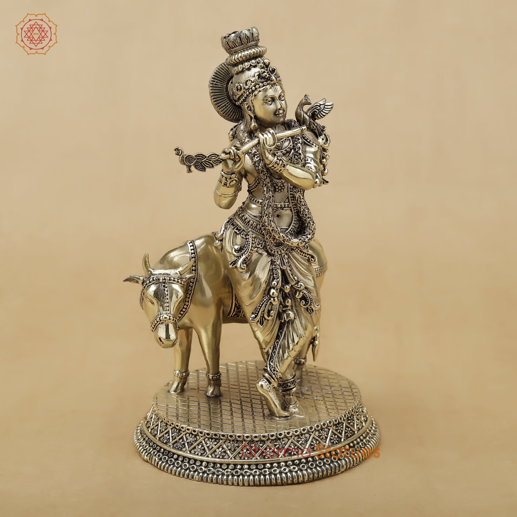 Bring home the serene and auspicious presence of Lord Krishna with His beloved cow, symbolizing love, compassion, and divine protection. This beautifully handcrafted statue is made with intricate detailing – from Krishna’s graceful posture playing the flute to the finely carved ornaments, attire, and the gentle expression of the cow behind Him.