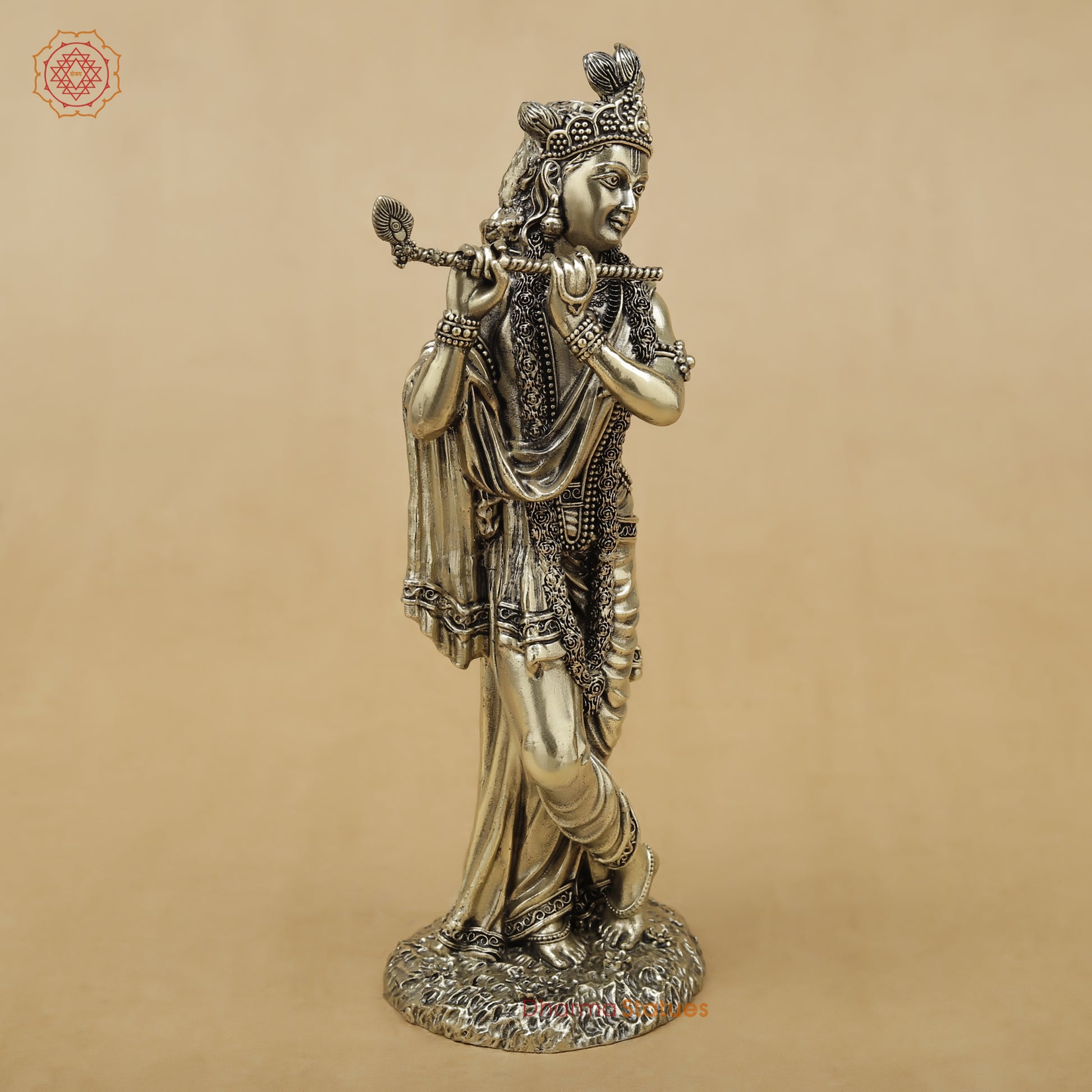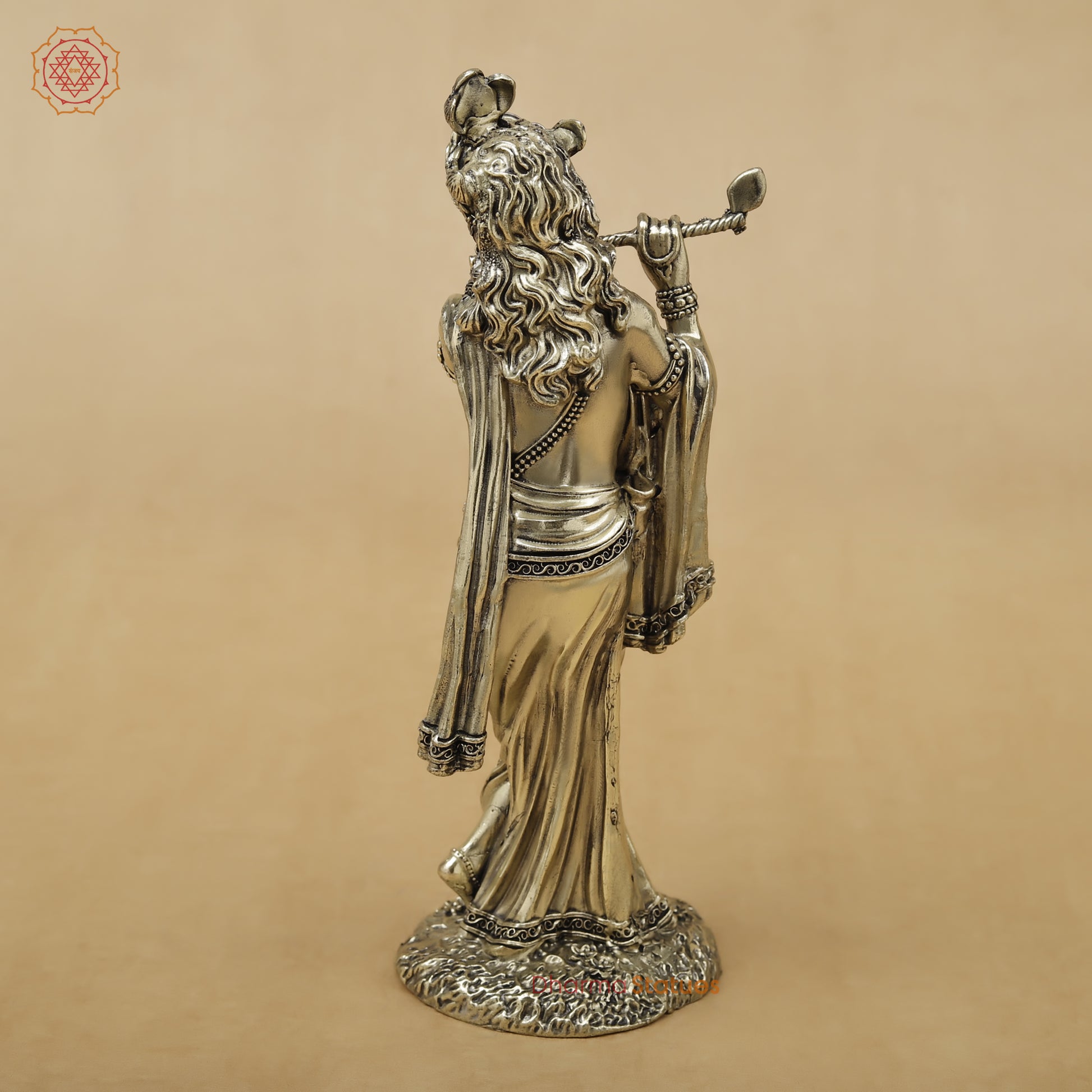 Bring home the charm and divinity of Lord Krishna with this beautifully fine-casted brass statue. Depicted in a serene flute-playing posture, this idol showcases intricate detailing, flowing drapery, and a refined antique finish. Perfect for compact altars, décor shelves, workspaces, or heartfelt gifting, it infuses any space with peace, love, and devotion.