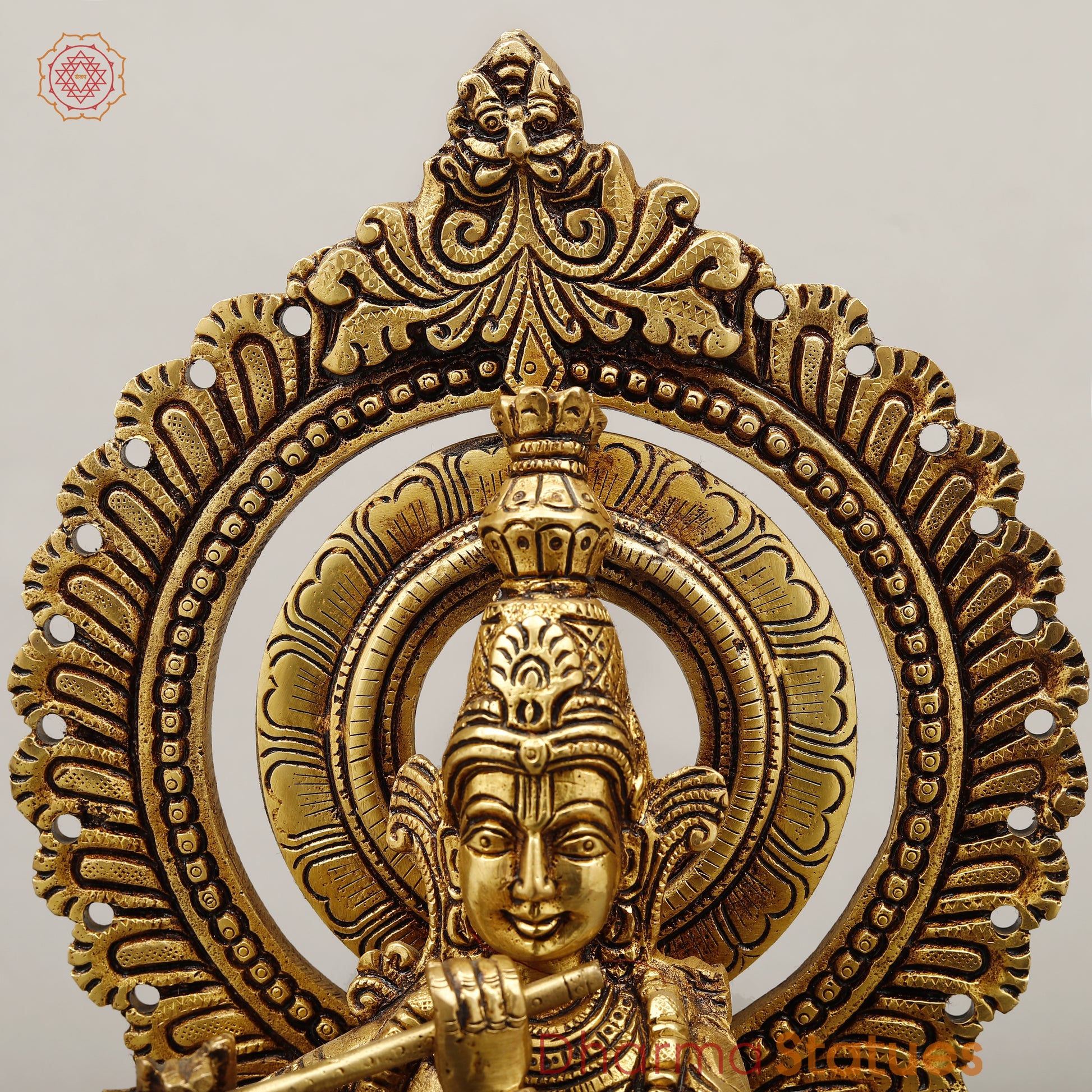 Brass Krishna Standing with Sacred Prabhavali, Fine Golden Finish, 16"
