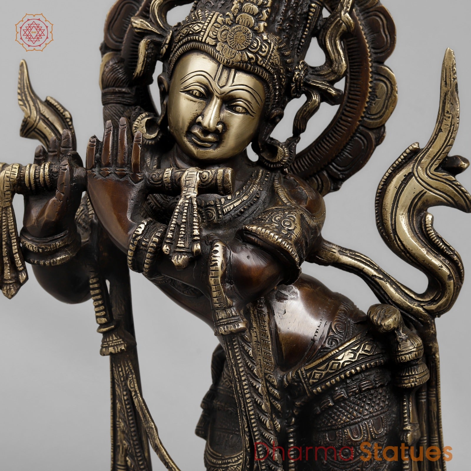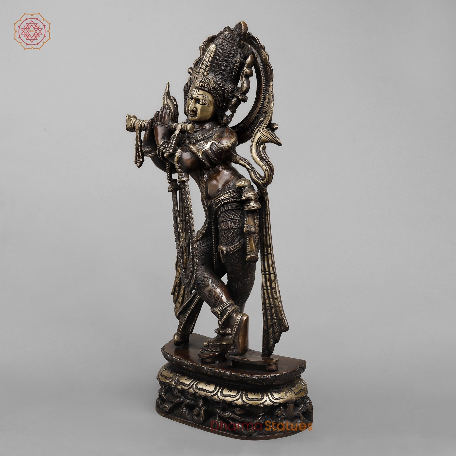 Brass Krishna Standing Fine, Copper Finish 22.5”