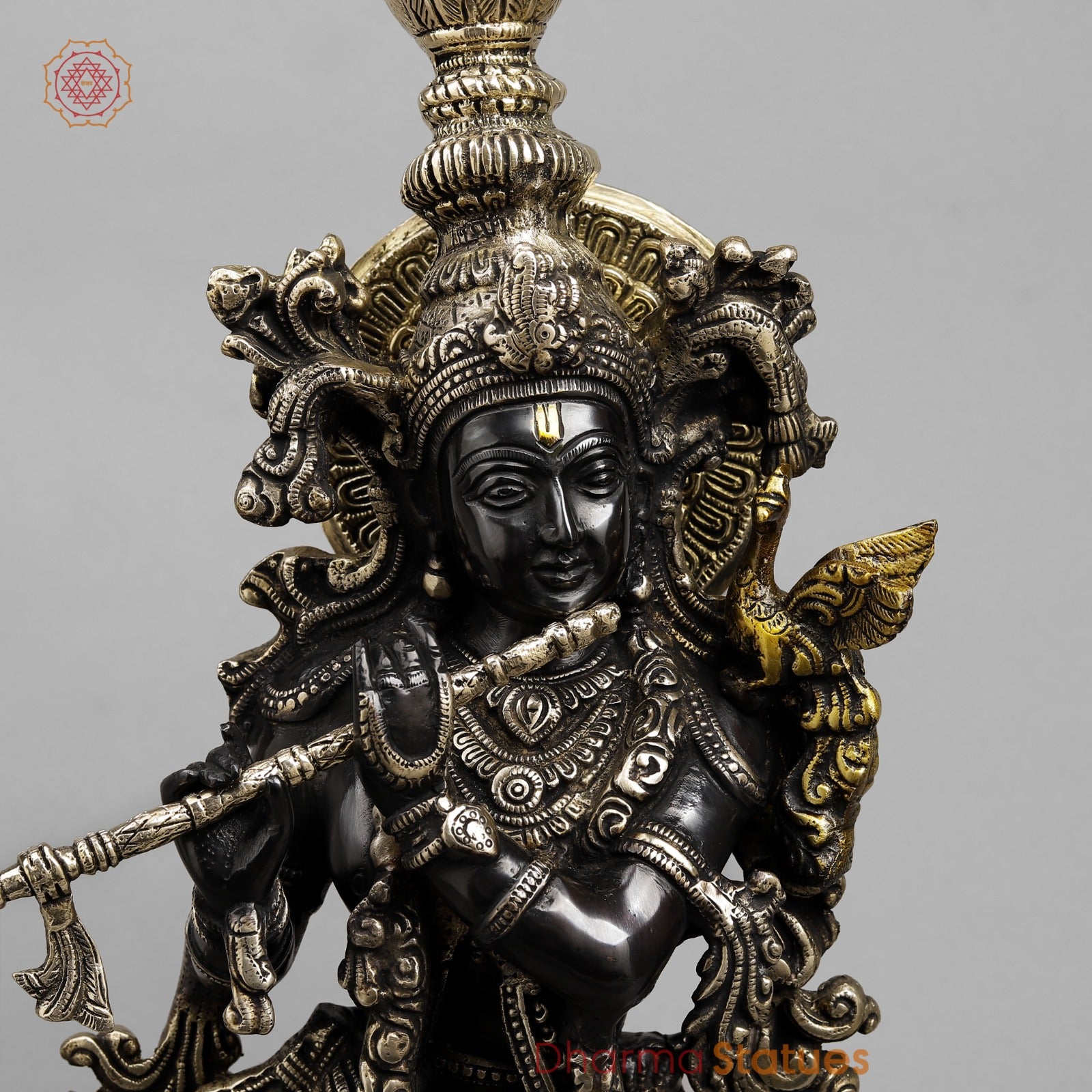 Immerse your space in serenity and devotion with this exquisitely handcrafted Lord Krishna brass statue by Dharma Statues. Standing gracefully at 22.5 inches, this masterpiece captures the divine essence of Krishna playing his flute, symbolizing love, peace, and eternal bliss.