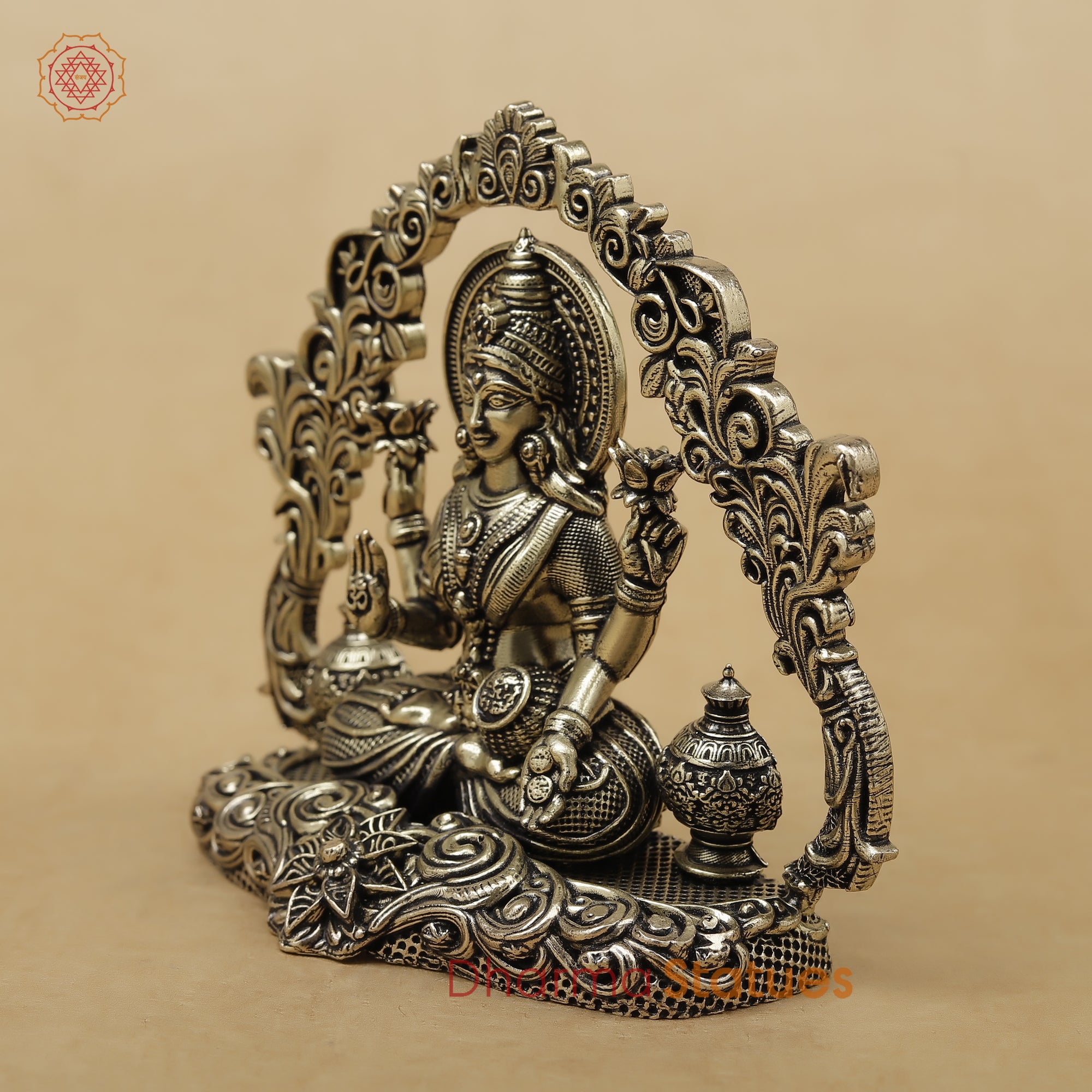 Illuminate your space with this exquisitely crafted Lakshmi idol, featuring fine detailing and an antique brass finish. Seated gracefully with lotus flowers and kalash symbols, it embodies prosperity, purity, and divine blessings. Perfect for home décor, gifting, and festive worship, this masterpiece radiates elegance and auspicious energy.