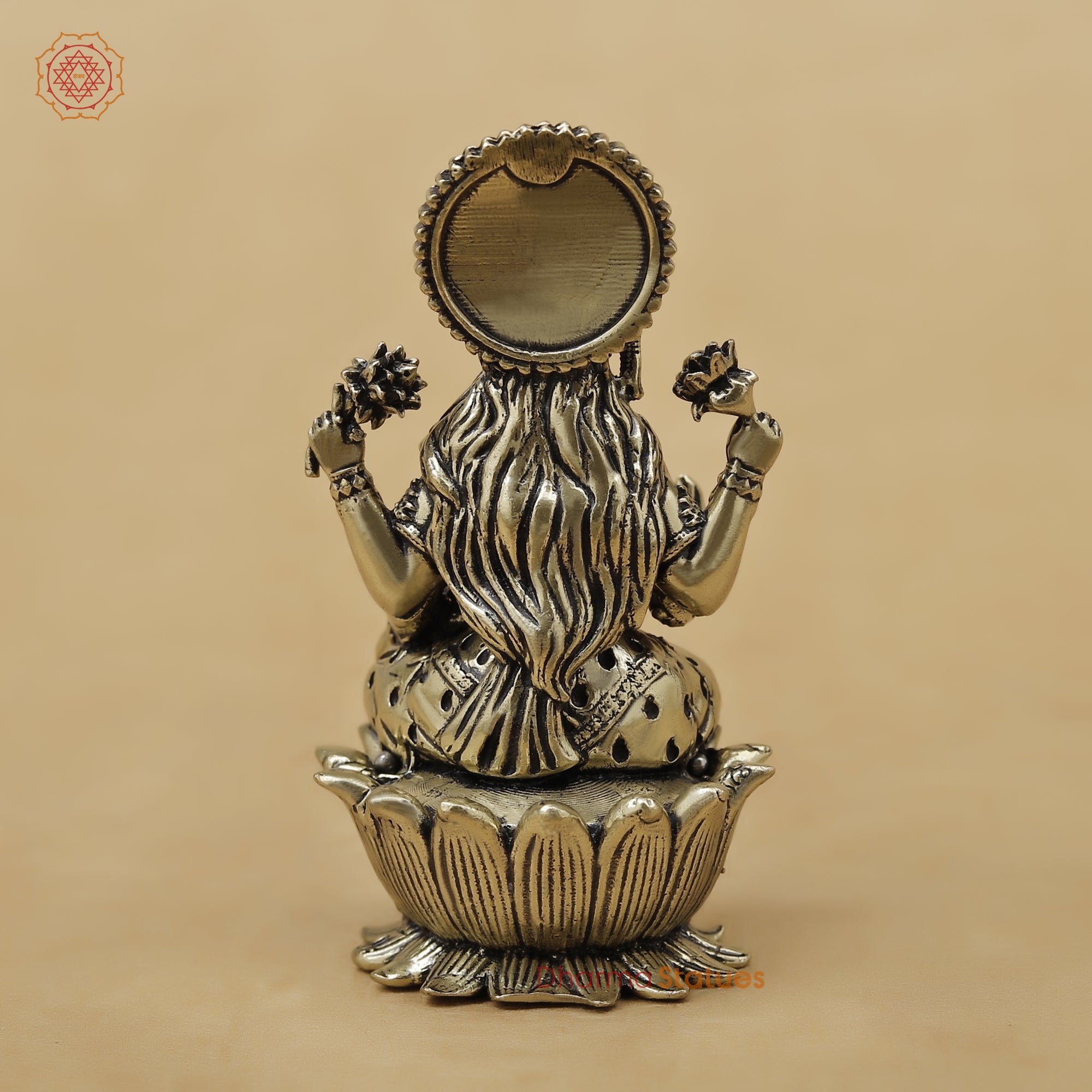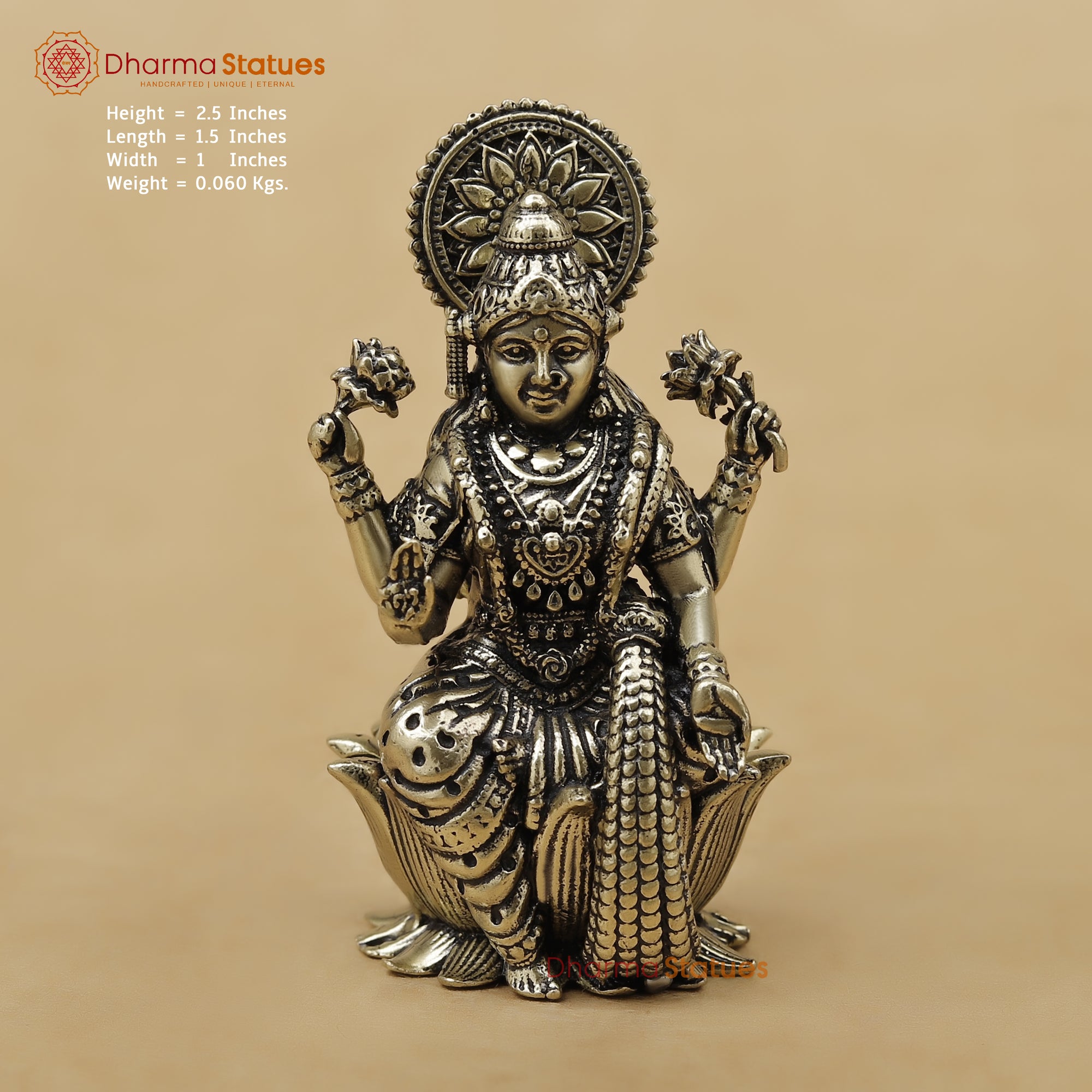 This 2.5" Brass Lakshmi idol features rich detailing, a classic antique finish, and a serene divine presence. Representing abundance and good fortune, it’s perfect for compact spaces like desks, mandirs, shelves, and car dashboards. A beautiful and auspicious gift for any occasion.