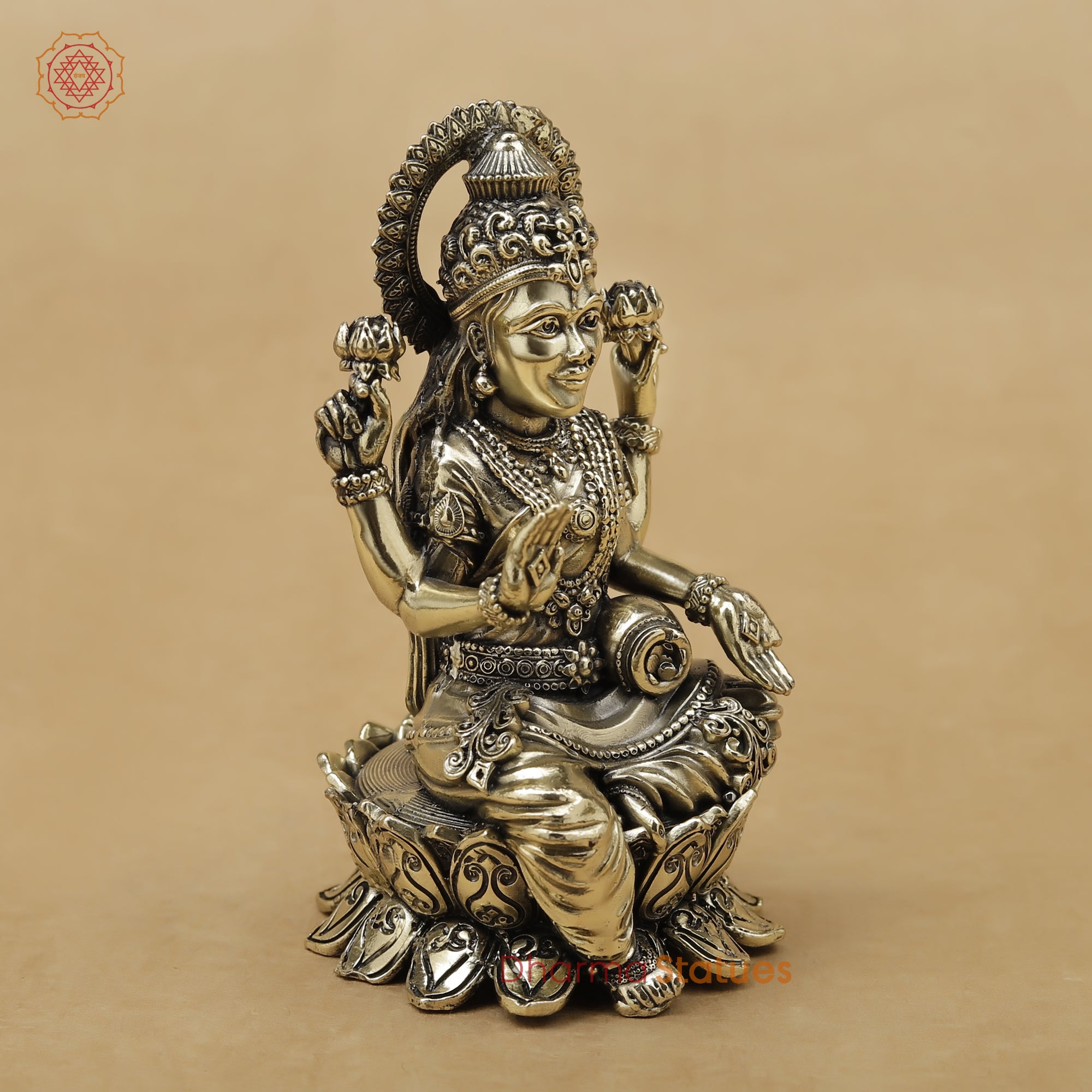 Invite divine abundance into your space with this exquisite brass Lakshmi idol. With lotus blooms in hand and a graceful seated posture, it symbolizes purity, fortune, and spiritual harmony - perfect for enhancing any sacred corner.