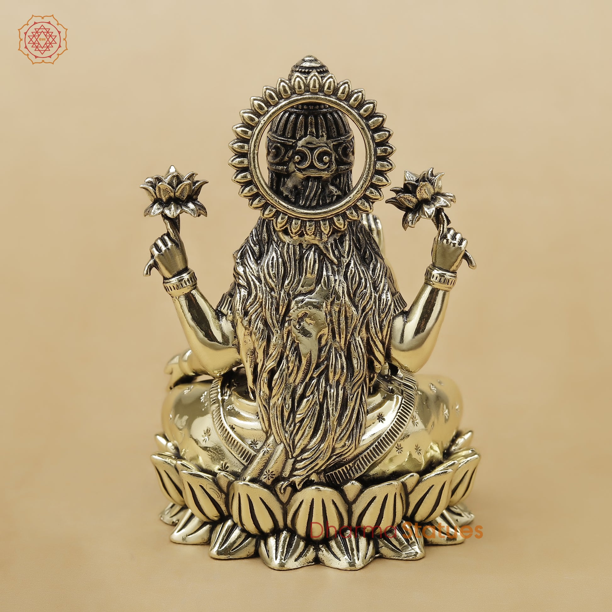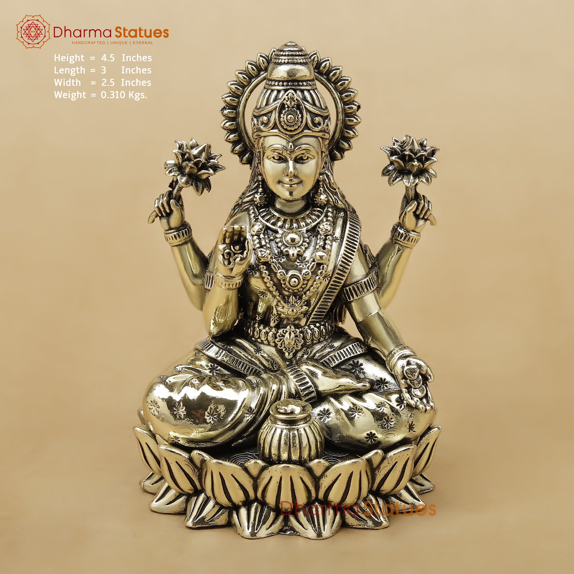 This 4.5-inch brass Lakshmi idol, seated gracefully on a lotus, symbolizes wealth, purity, and abundance. Handcrafted with intricate detailing, it is perfect for home temples, office desks, or festive décor.