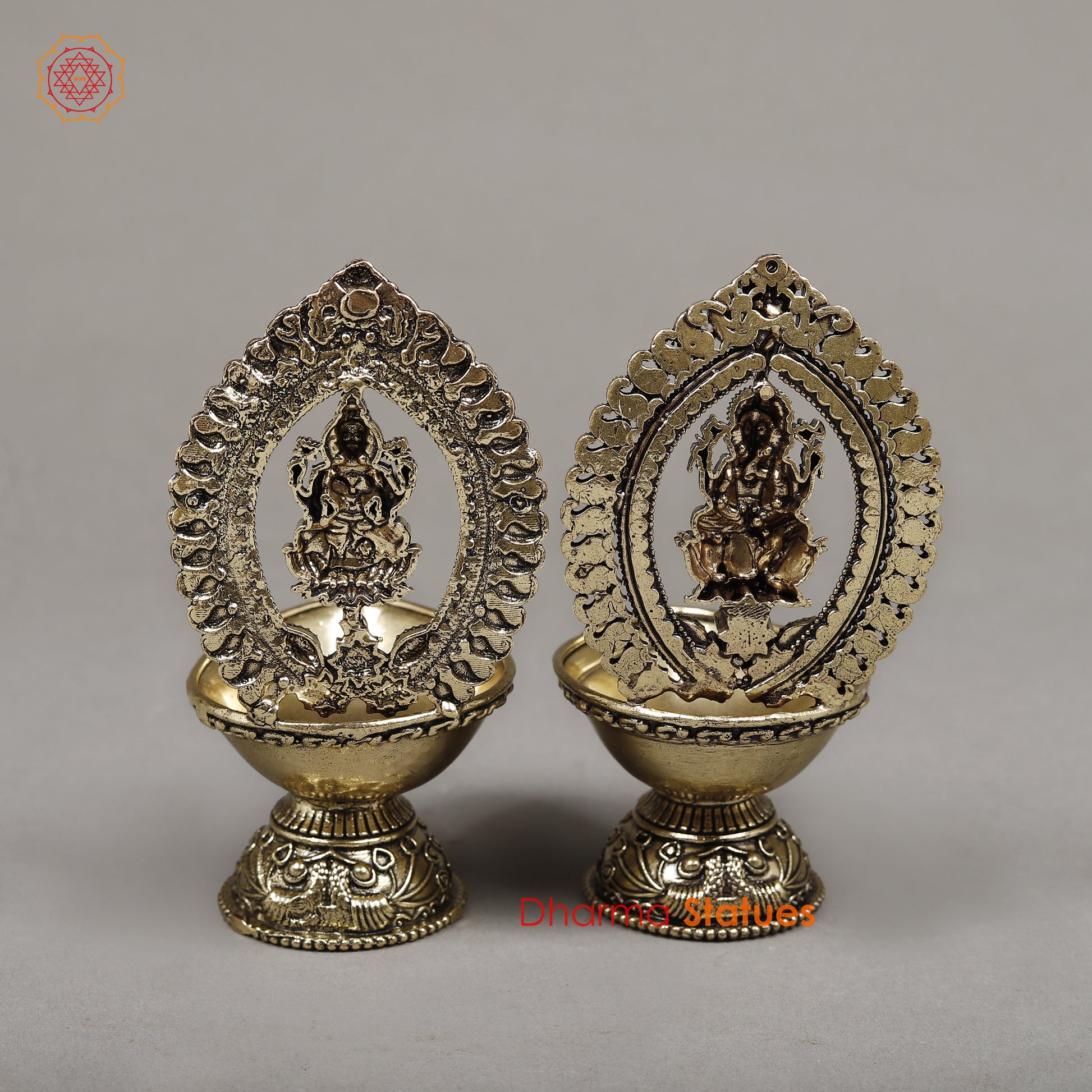Brass Lakshmi & Ganesh Diya (Lamp), 4.5"