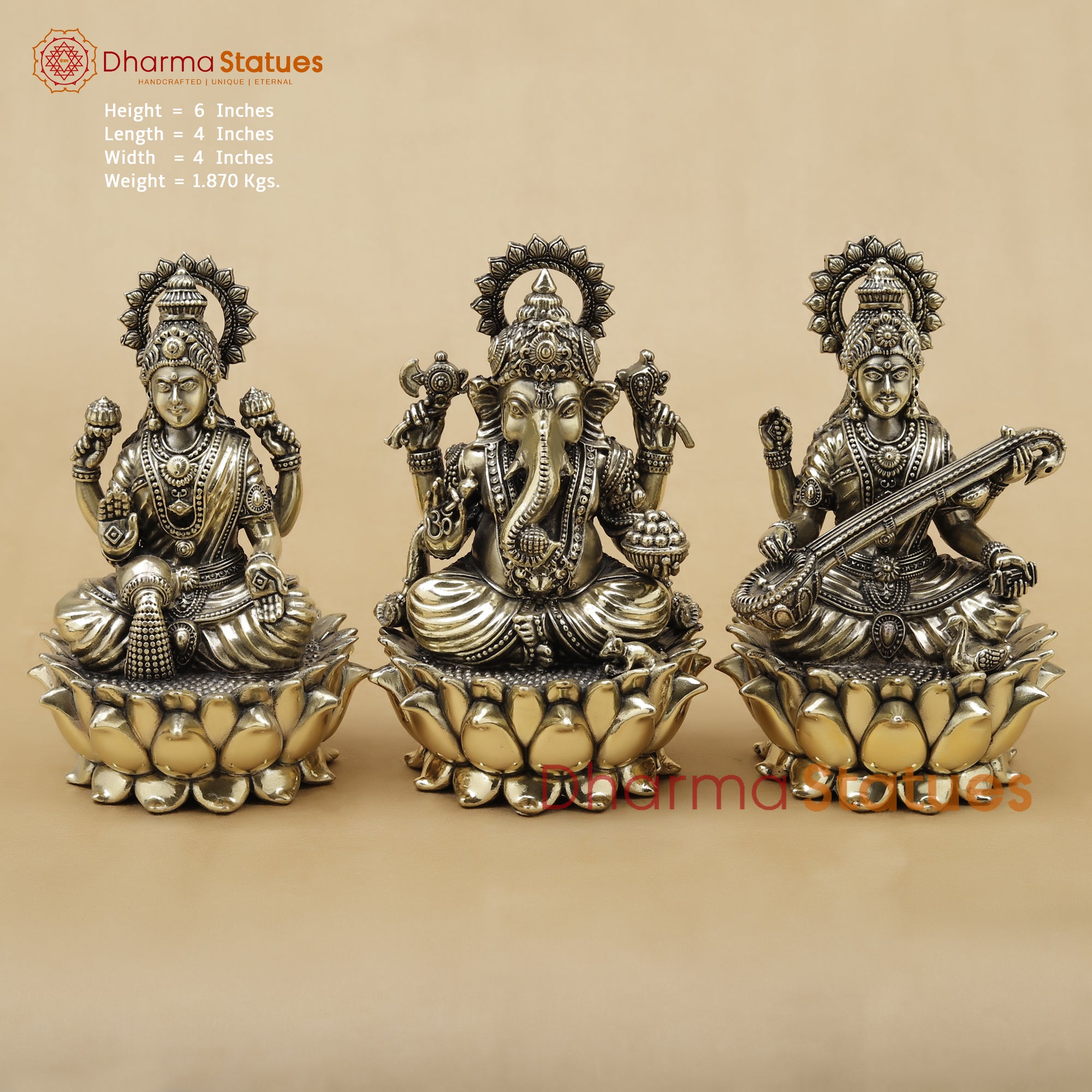 Brass Lakshmi Ganesh Saraswati Fine, 6"