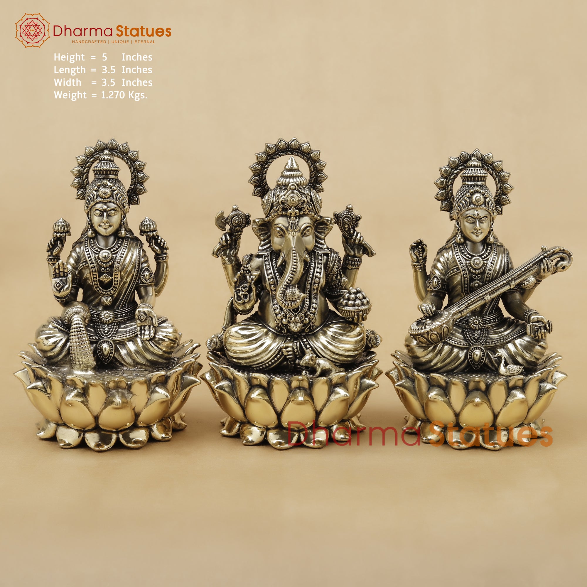 Brass Lakshmi Ganesh Saraswati Fine, 5"