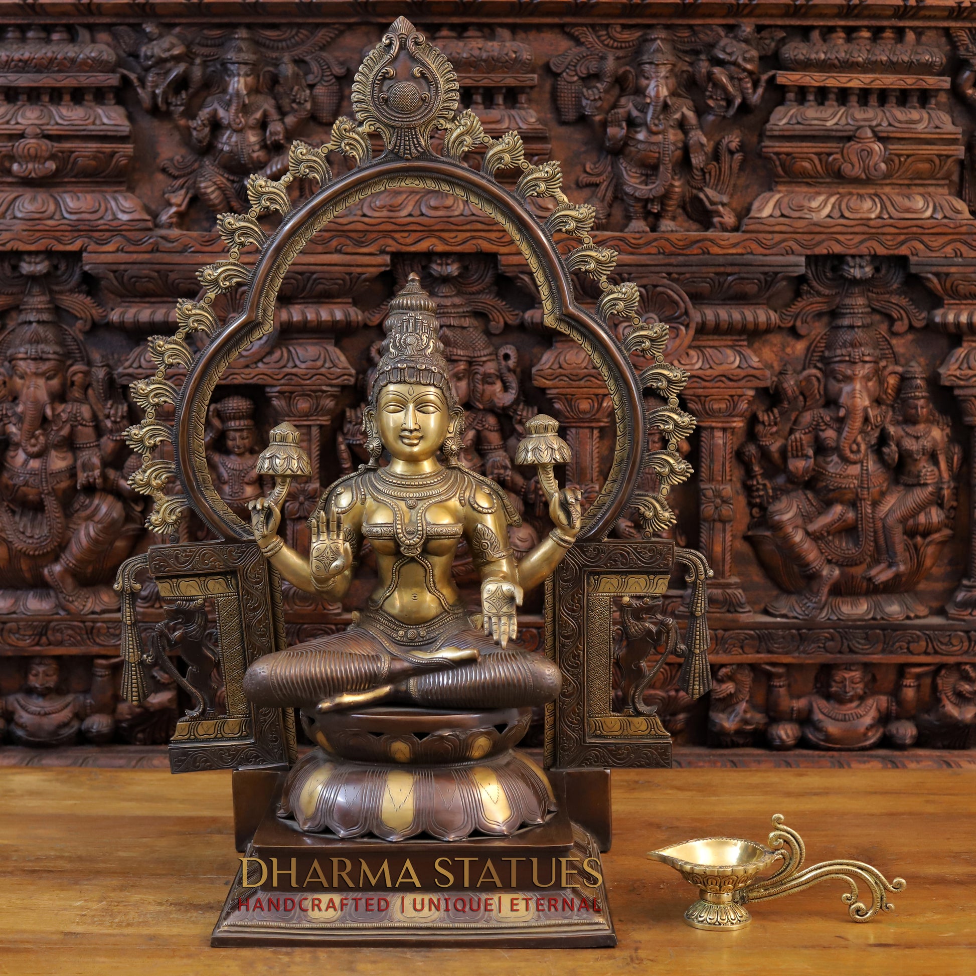 Brass Lakshmi Idol, Seated on a Lotus, Copper and Golden Finish 32.5"