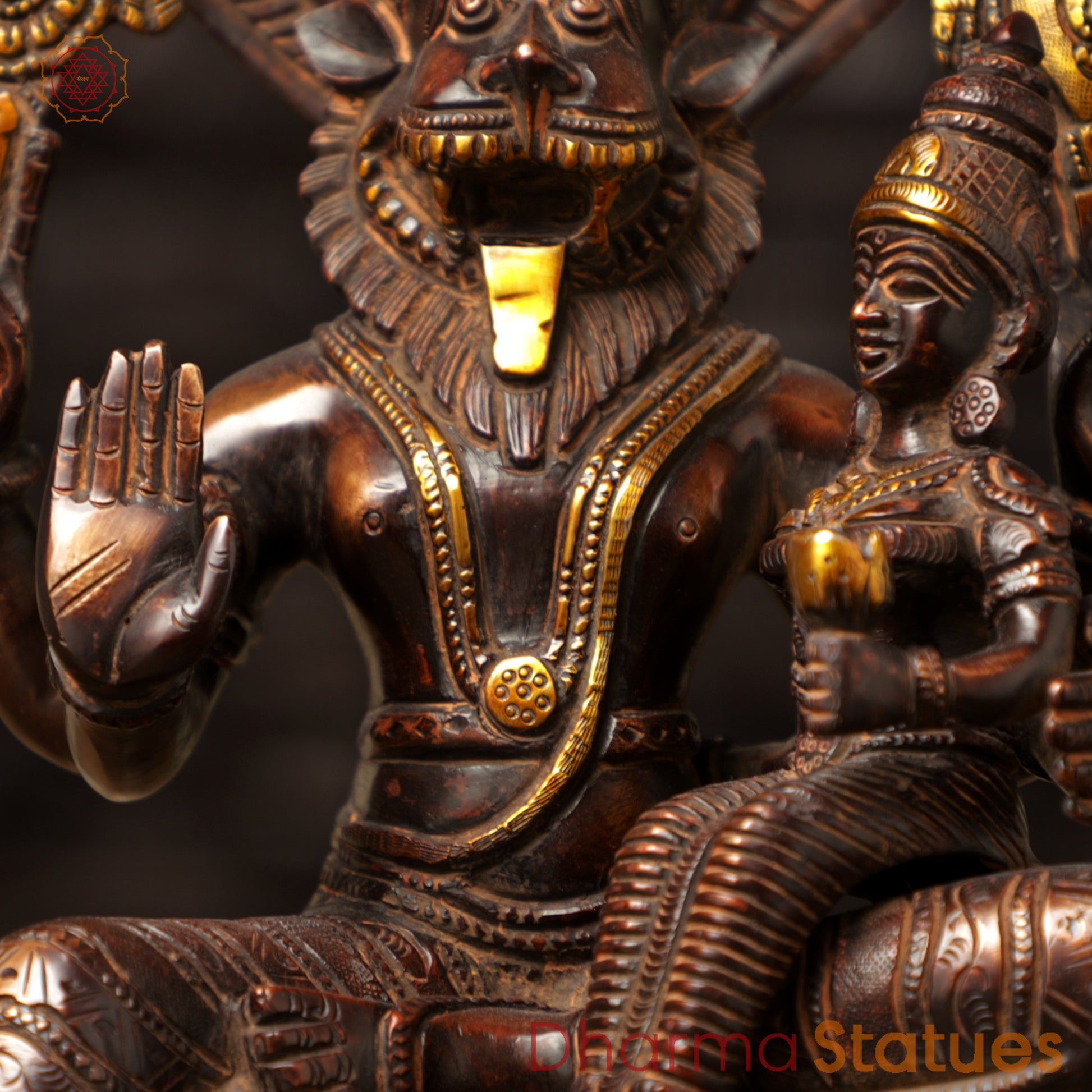 Brass Lakshmi Narsimha, Copper & Golden Finish, 13.5"