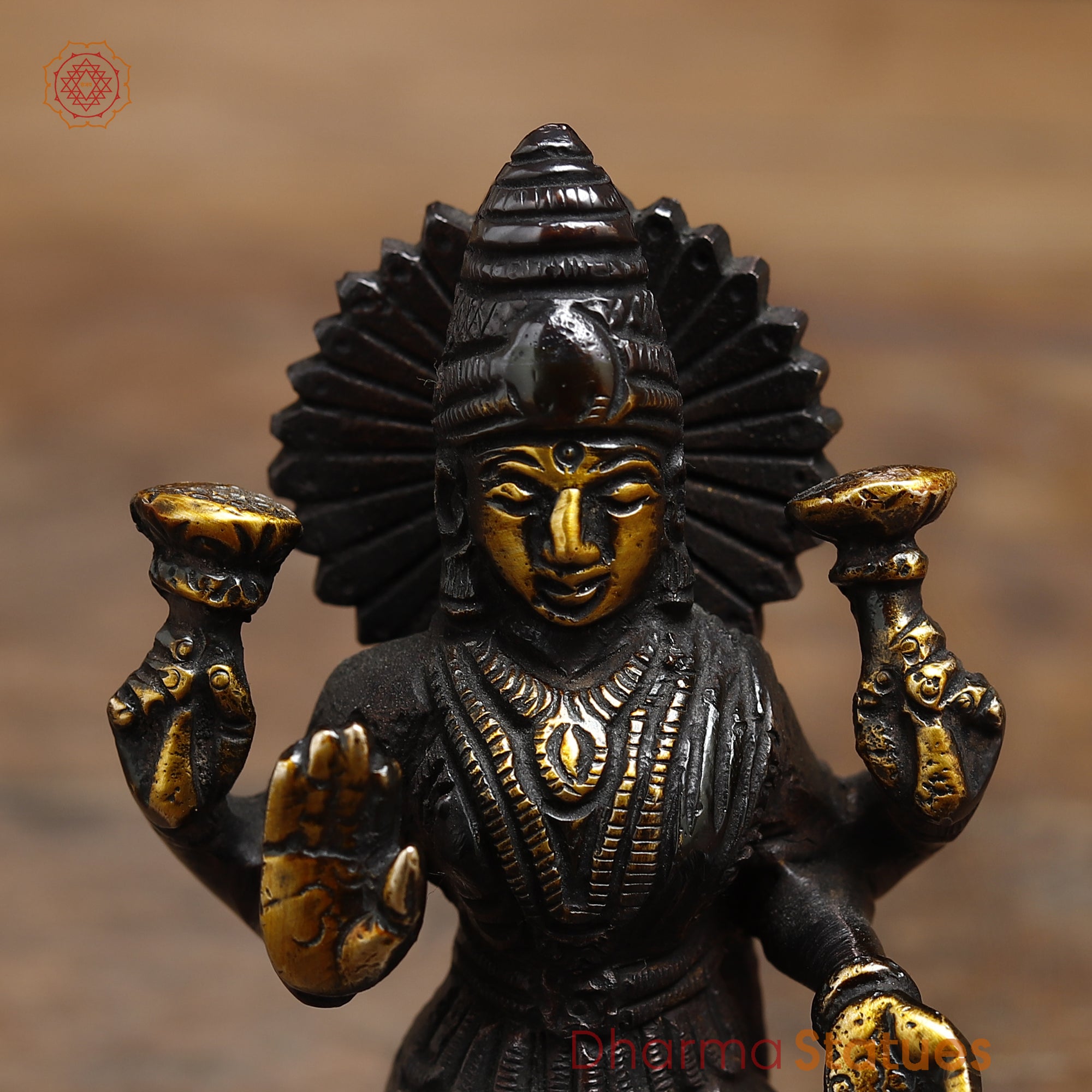 Brass Lakshmi seated in Blessing Posture, Black Patina & Golden Finish, 4.5"