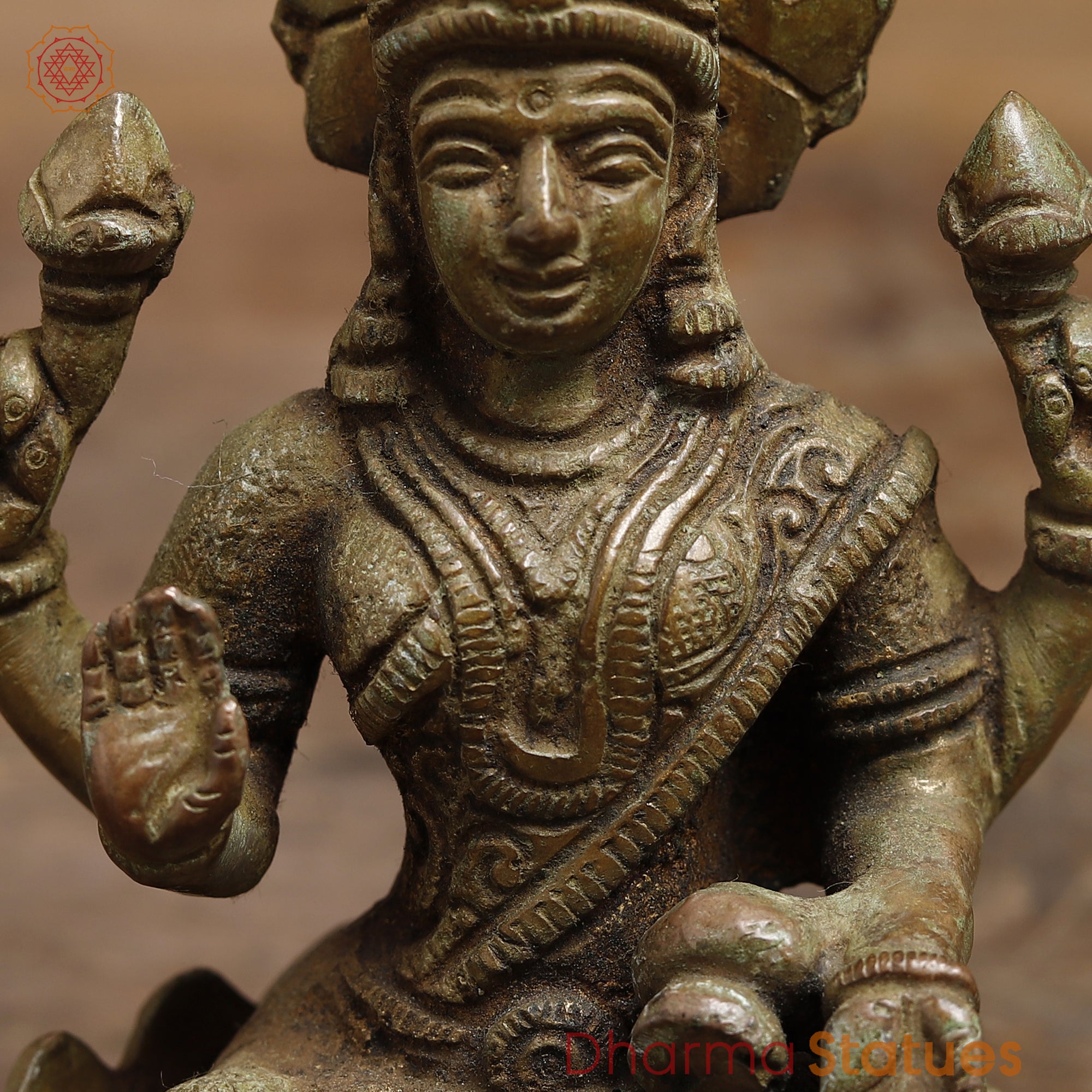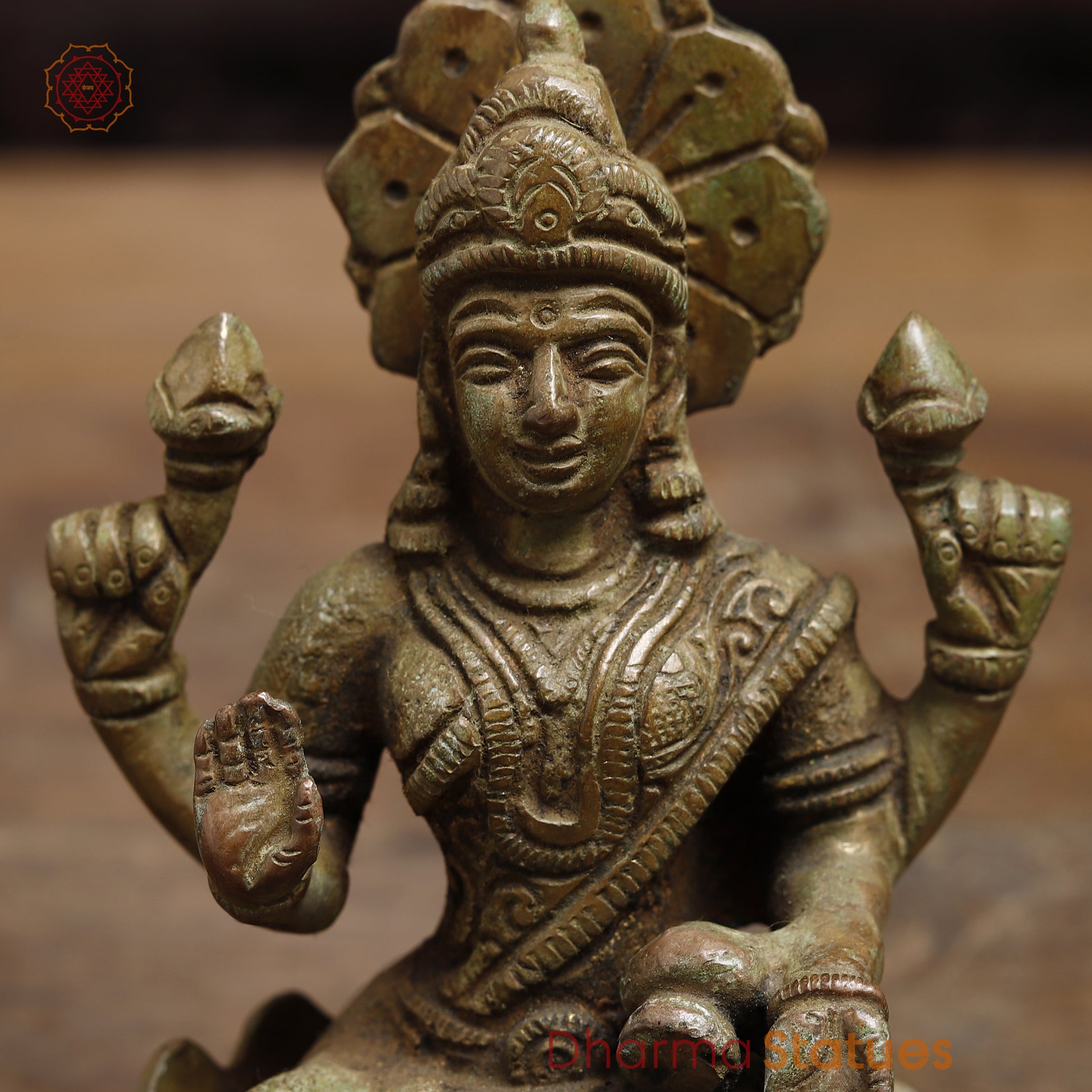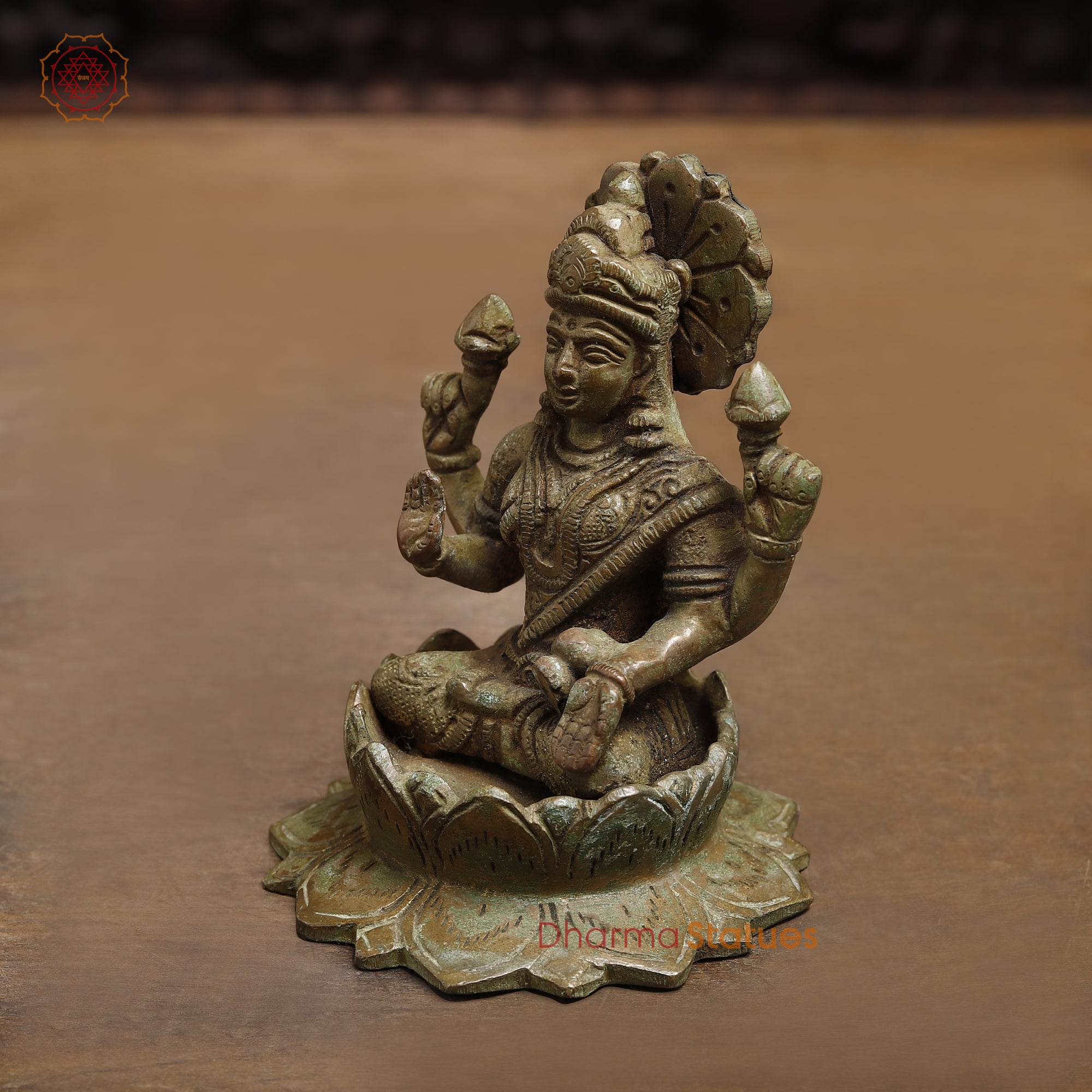 Brass Lakshmi seated in Blessing Posture, Green Patina Finish, 5"