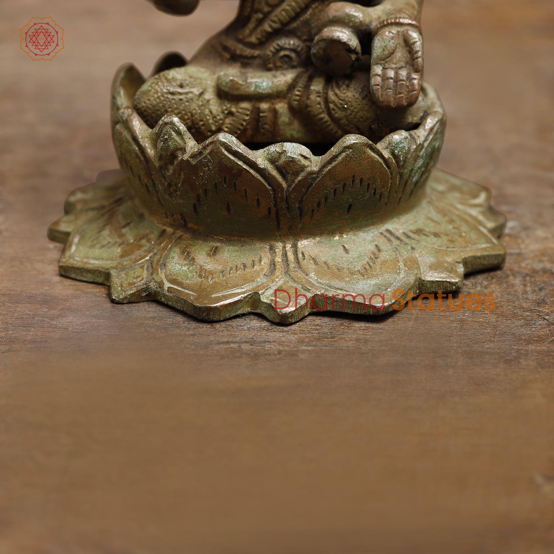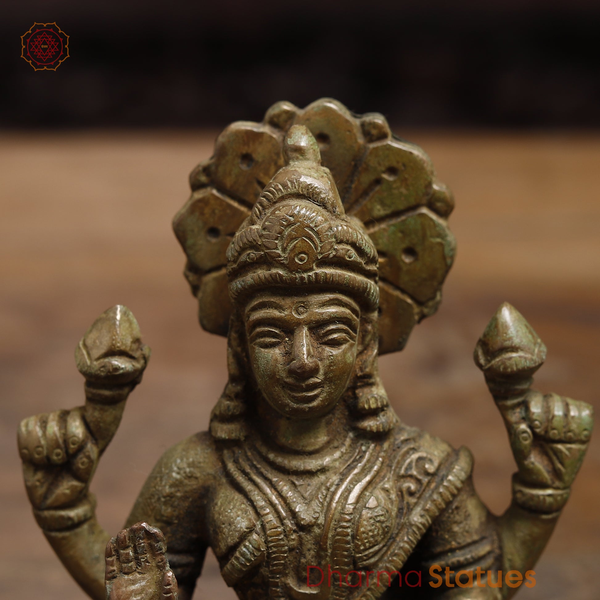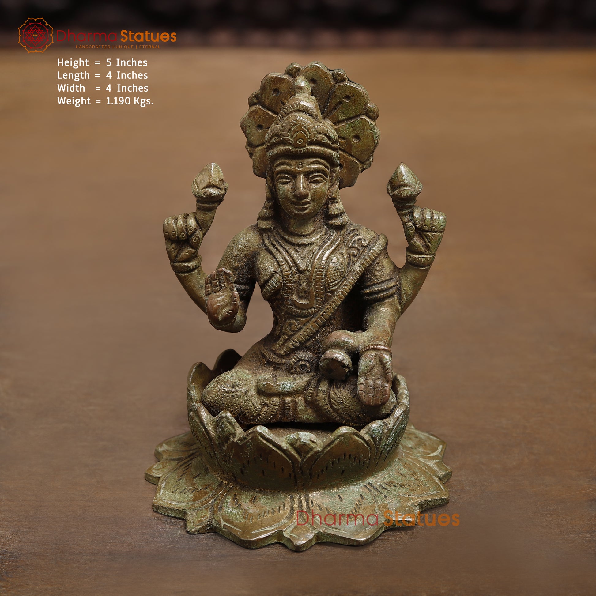 Brass Lakshmi seated in Blessing Posture, Green Patina Finish, 5"