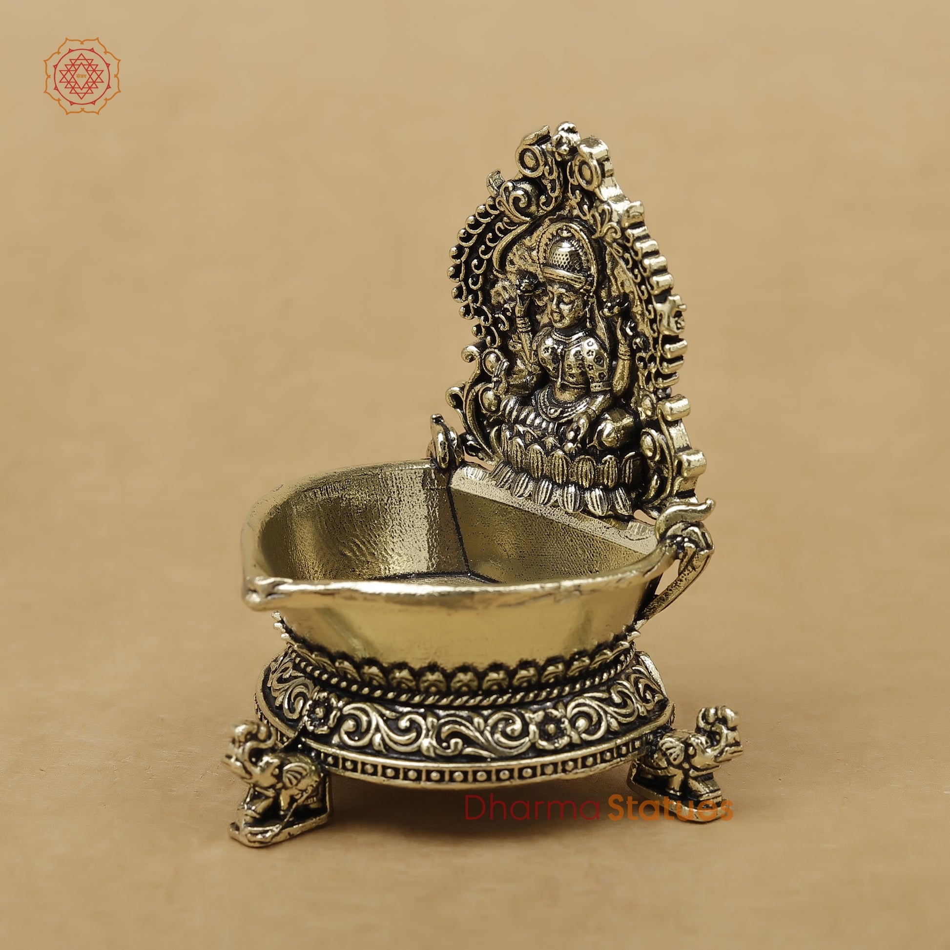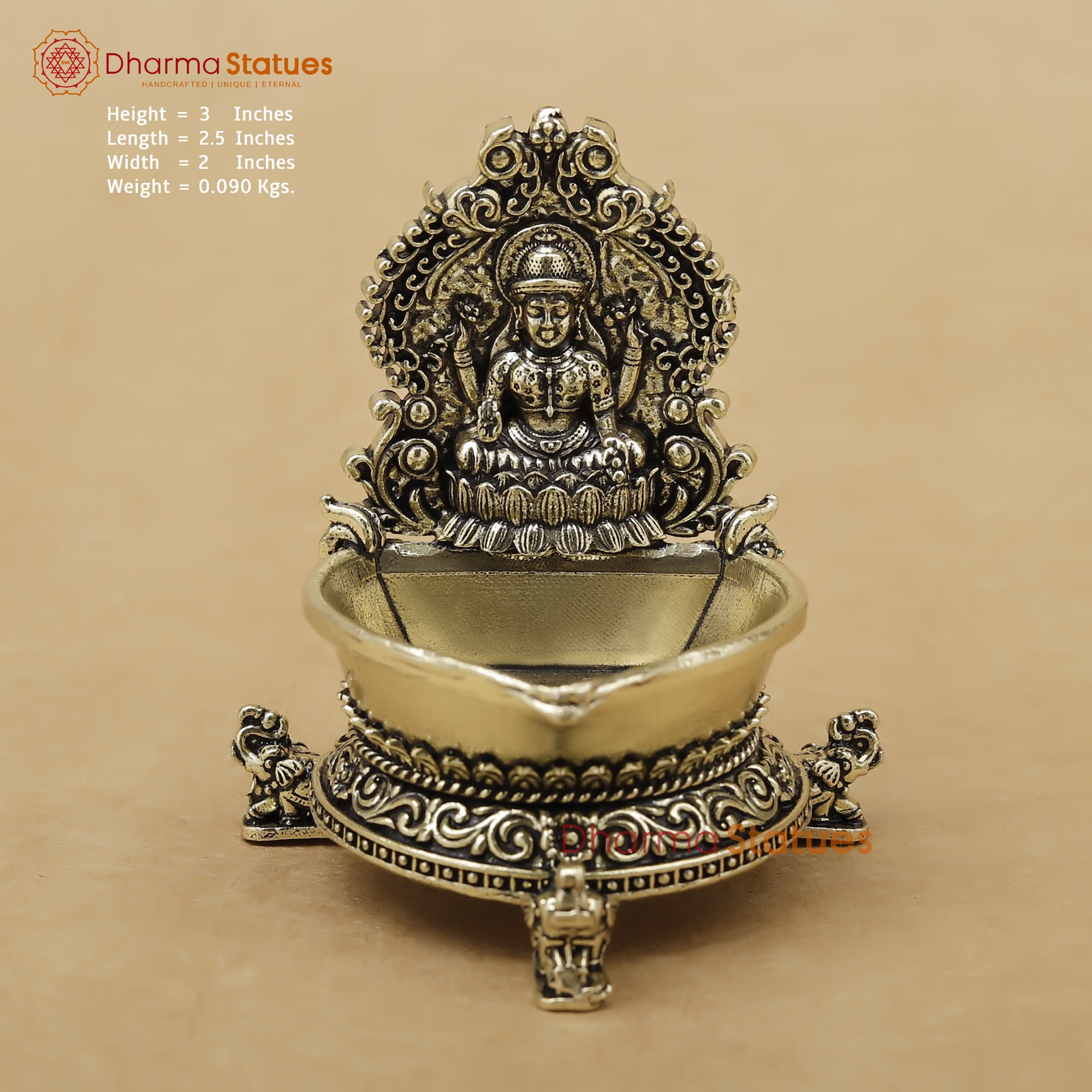 Bring divine grace and elegance into your home with this exquisitely crafted Lakshmi Back Diya, designed with intricate detailing and an antique brass finish. Perfect for daily puja, festive rituals, and home décor, this diya showcases Goddess Lakshmi seated beautifully on a lotus, symbolizing blessings, prosperity, and positivity.
