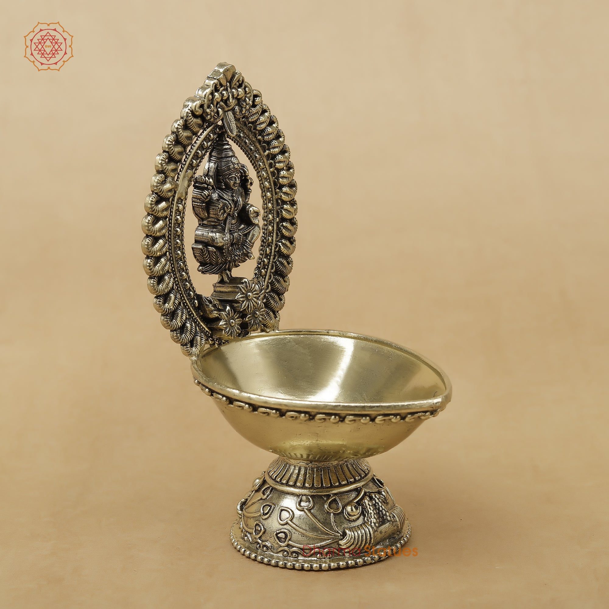 Bring divine blessings and radiant positivity into your home with this beautifully handcrafted Lakshmi Brass Diya. Designed with intricate detailing, this brass-finished diya features Goddess Lakshmi seated gracefully on a lotus, symbolizing wealth, purity, and prosperity.