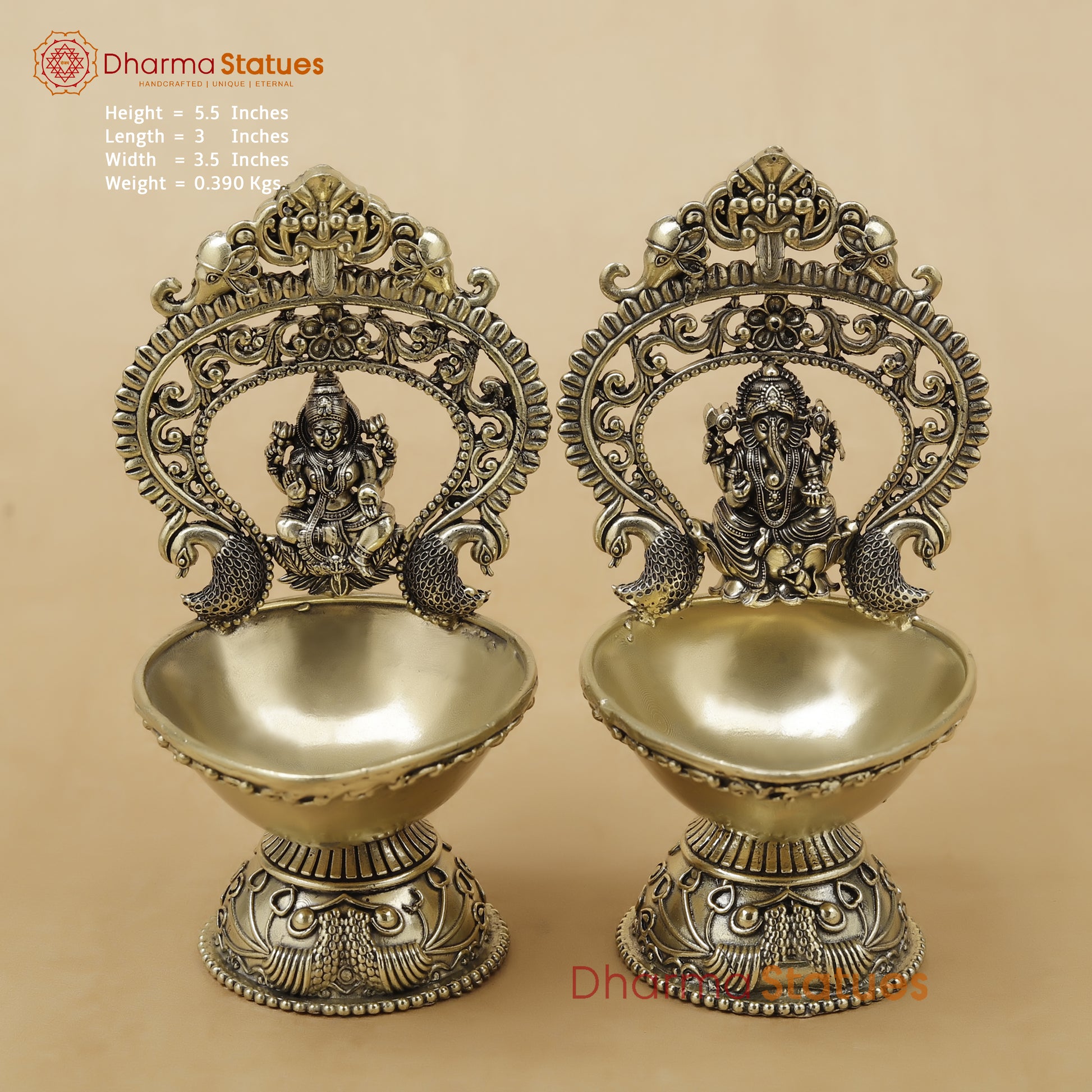 Brass Laxmi Ganesh Diya Fine, 5.5"