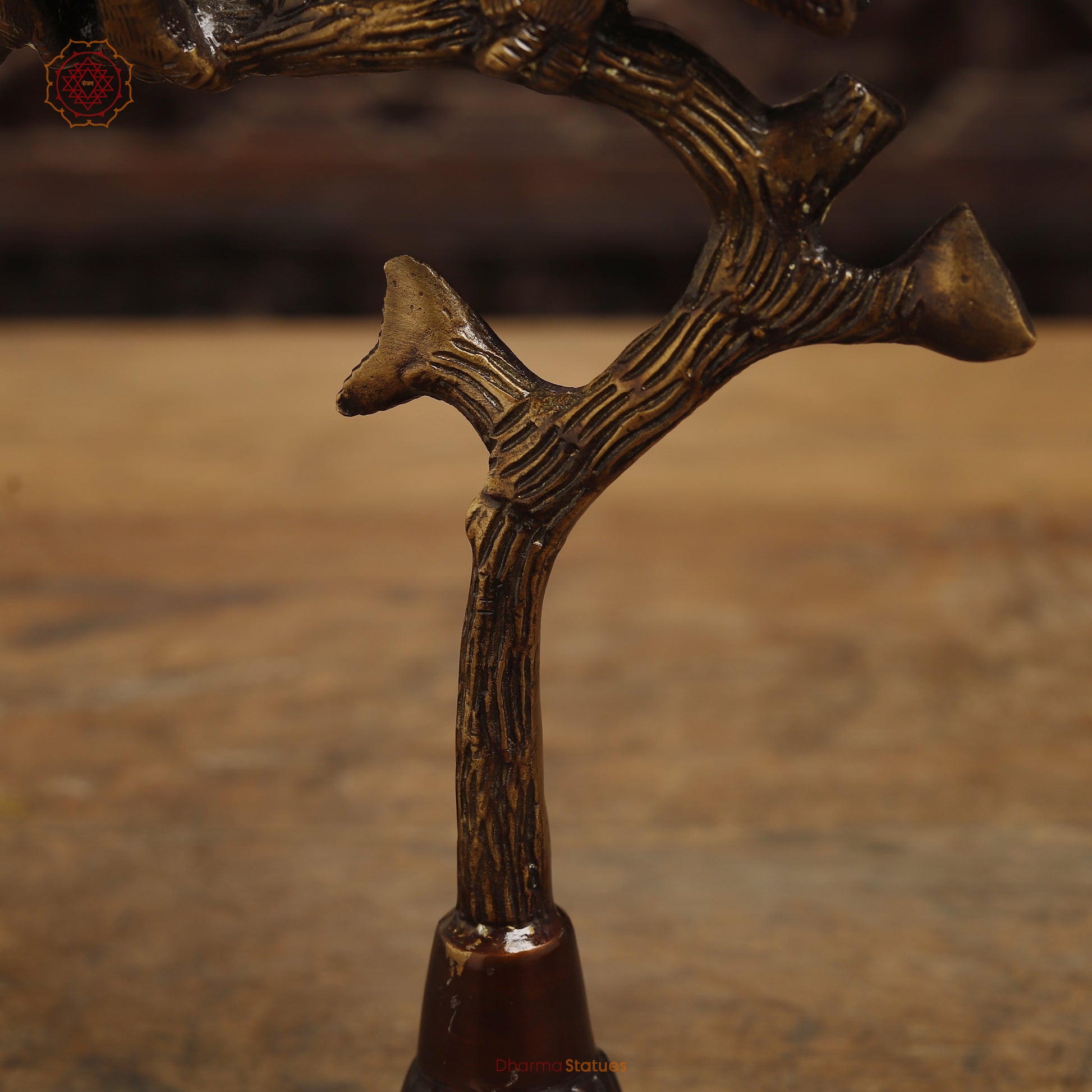 Brass Love Bird on Tree Branches, Copper & Golden Finish, 9.5"
