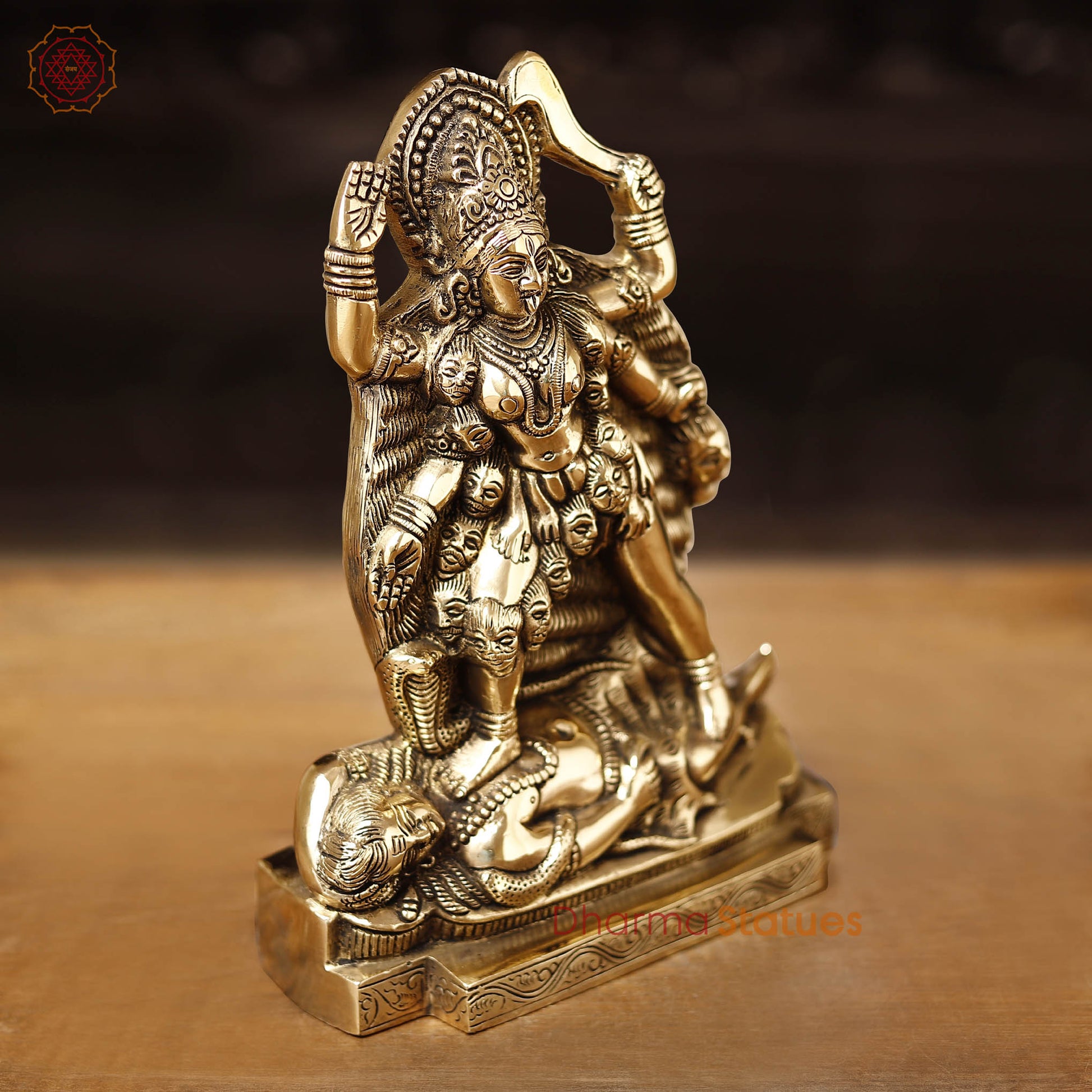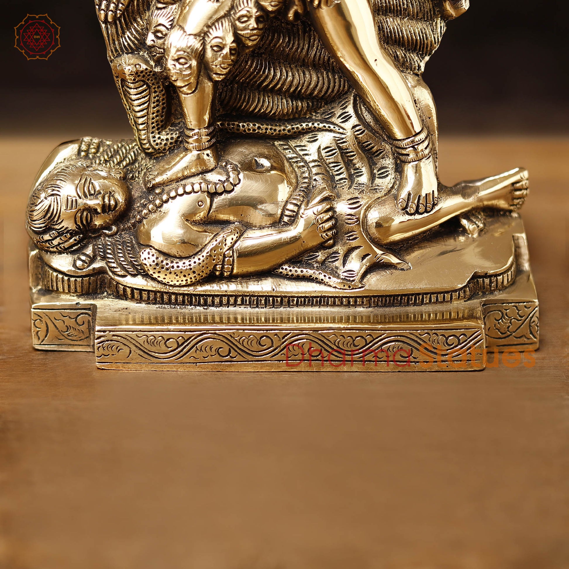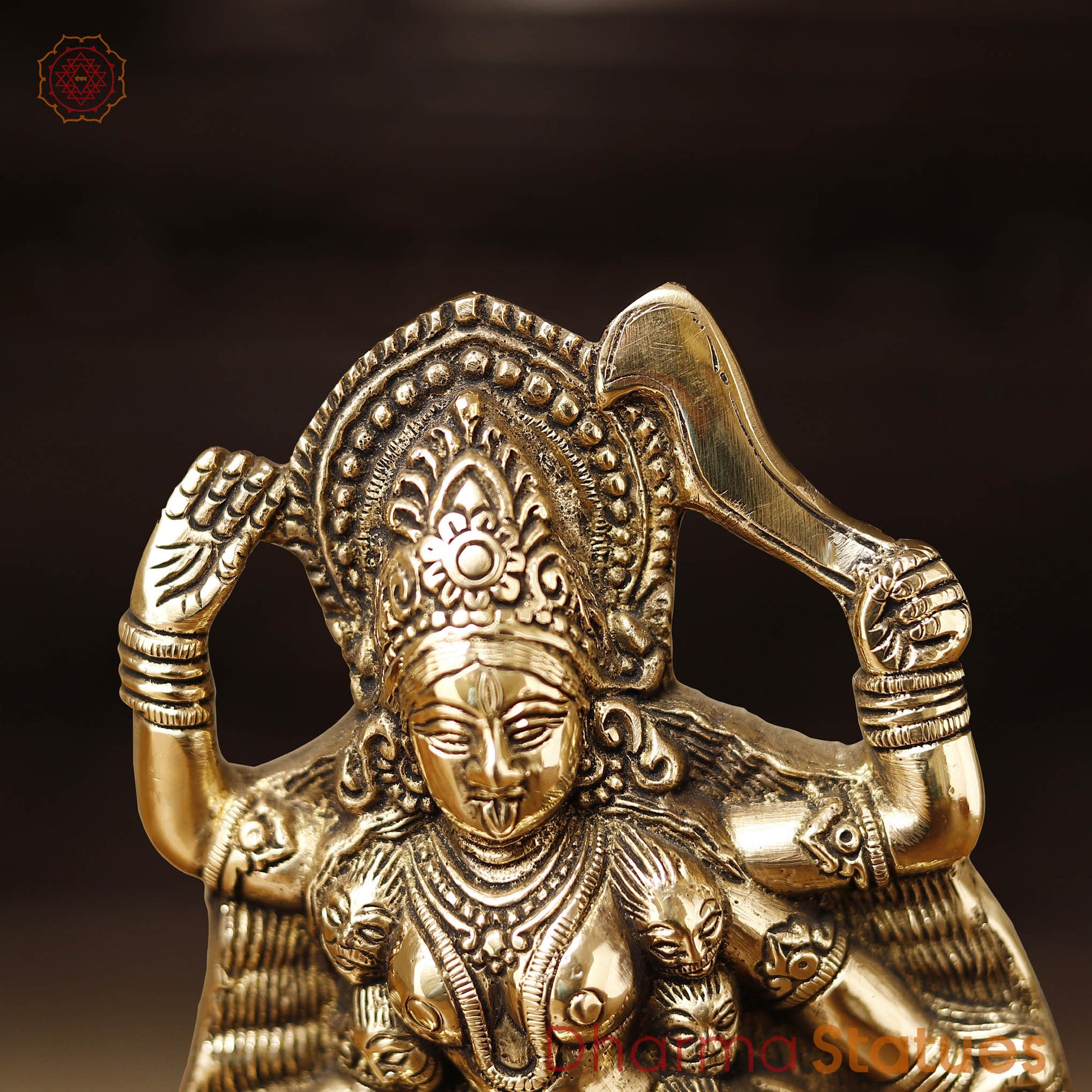 Brass Kali Statue- Handcrafted Goddess Kali, Golden Fine Work 9.5"