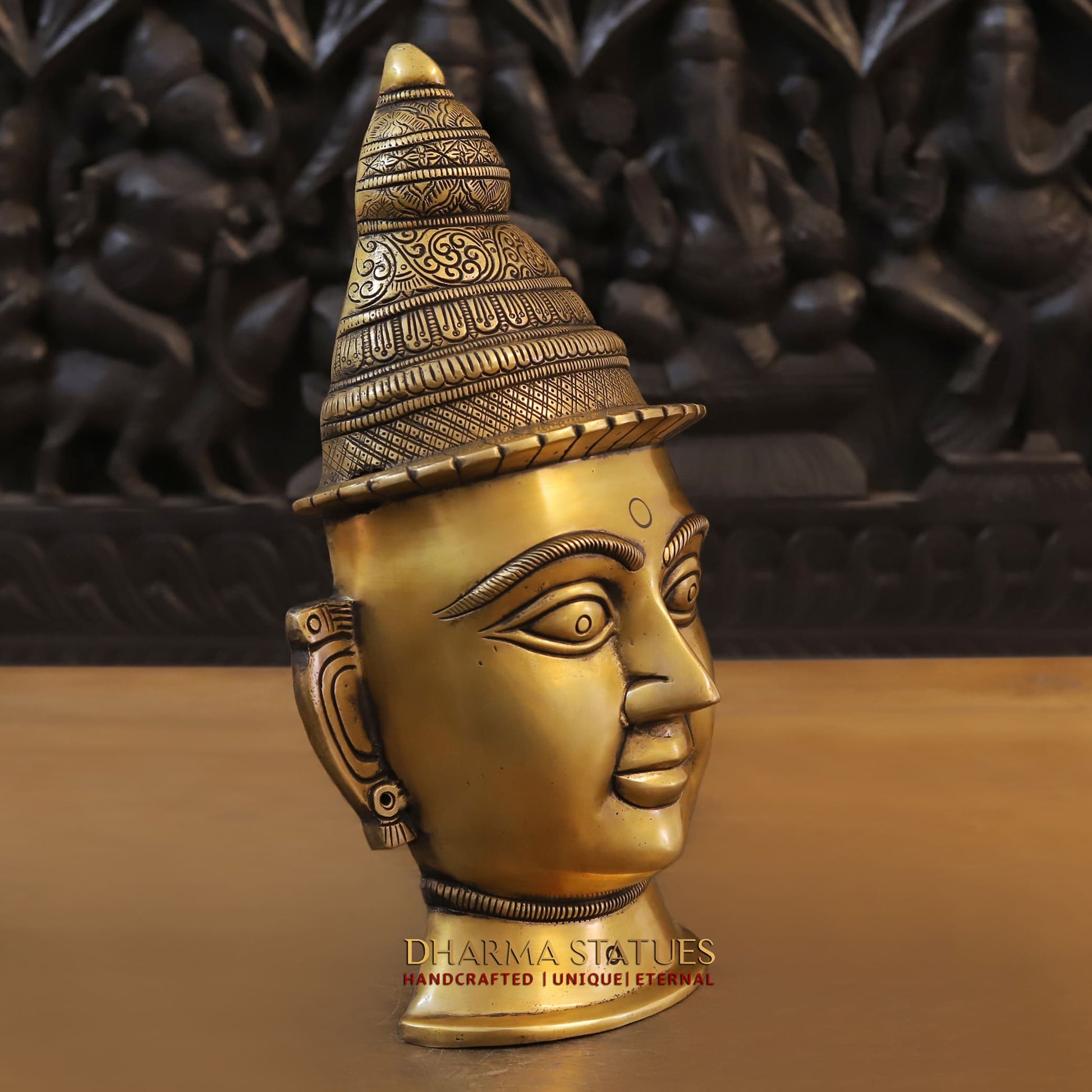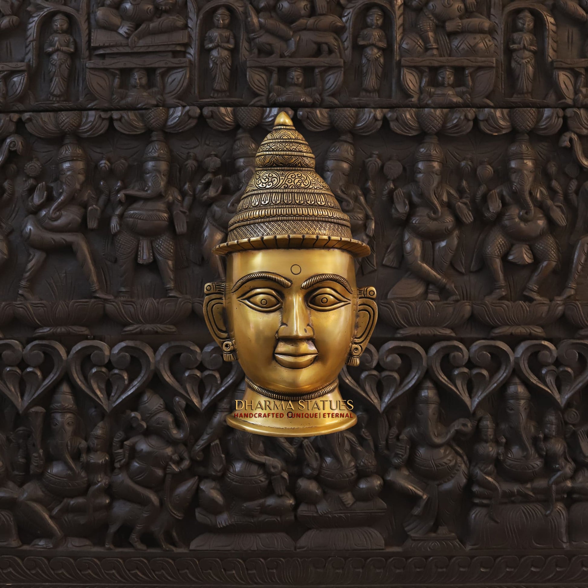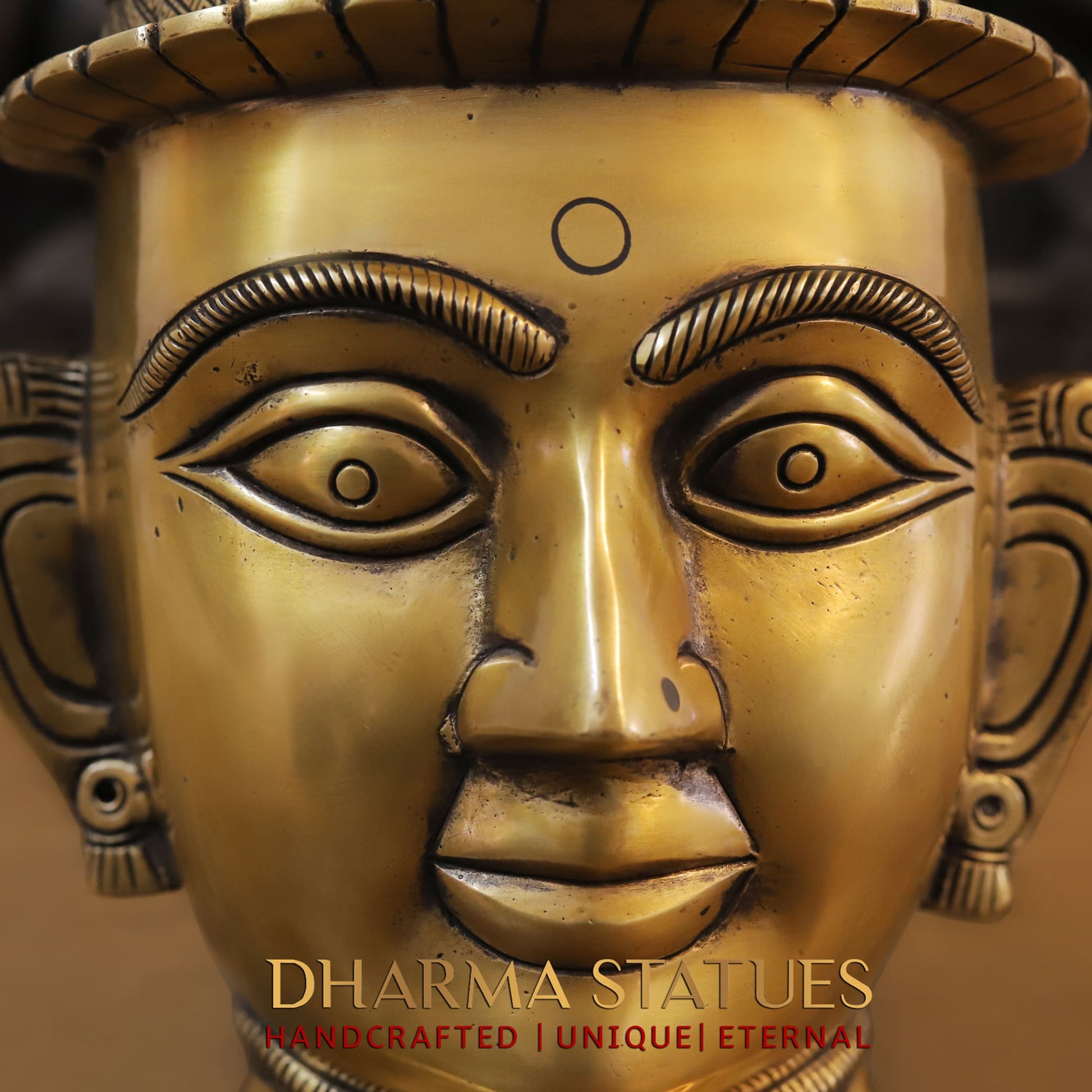 Brass Parvati Head Idol, Golden Fine Work 14"