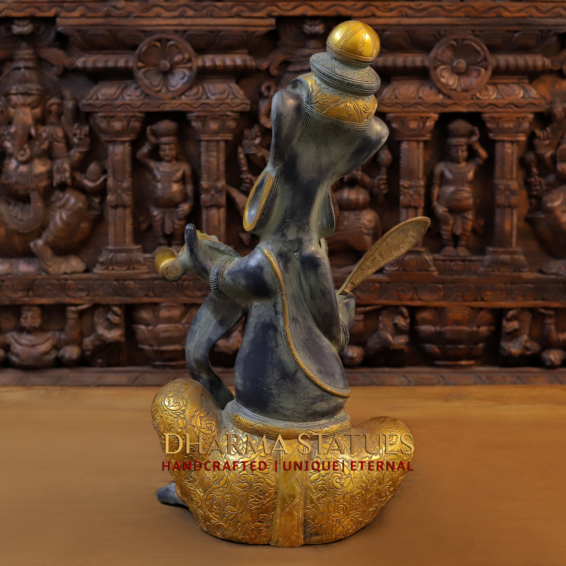 Brass Ganesh Sitting Writing Ramayan In Modern Avtar, Stone Finish, 22"