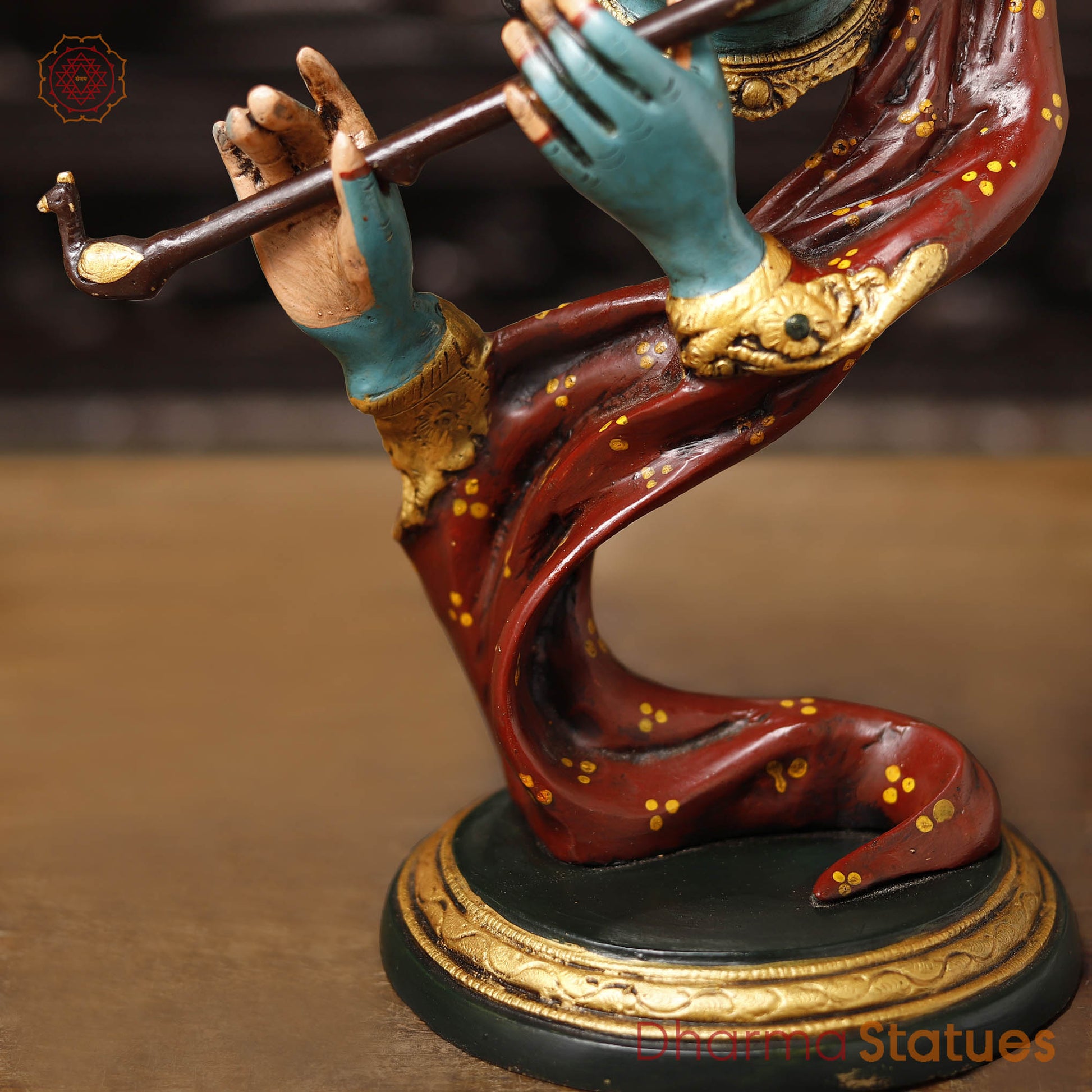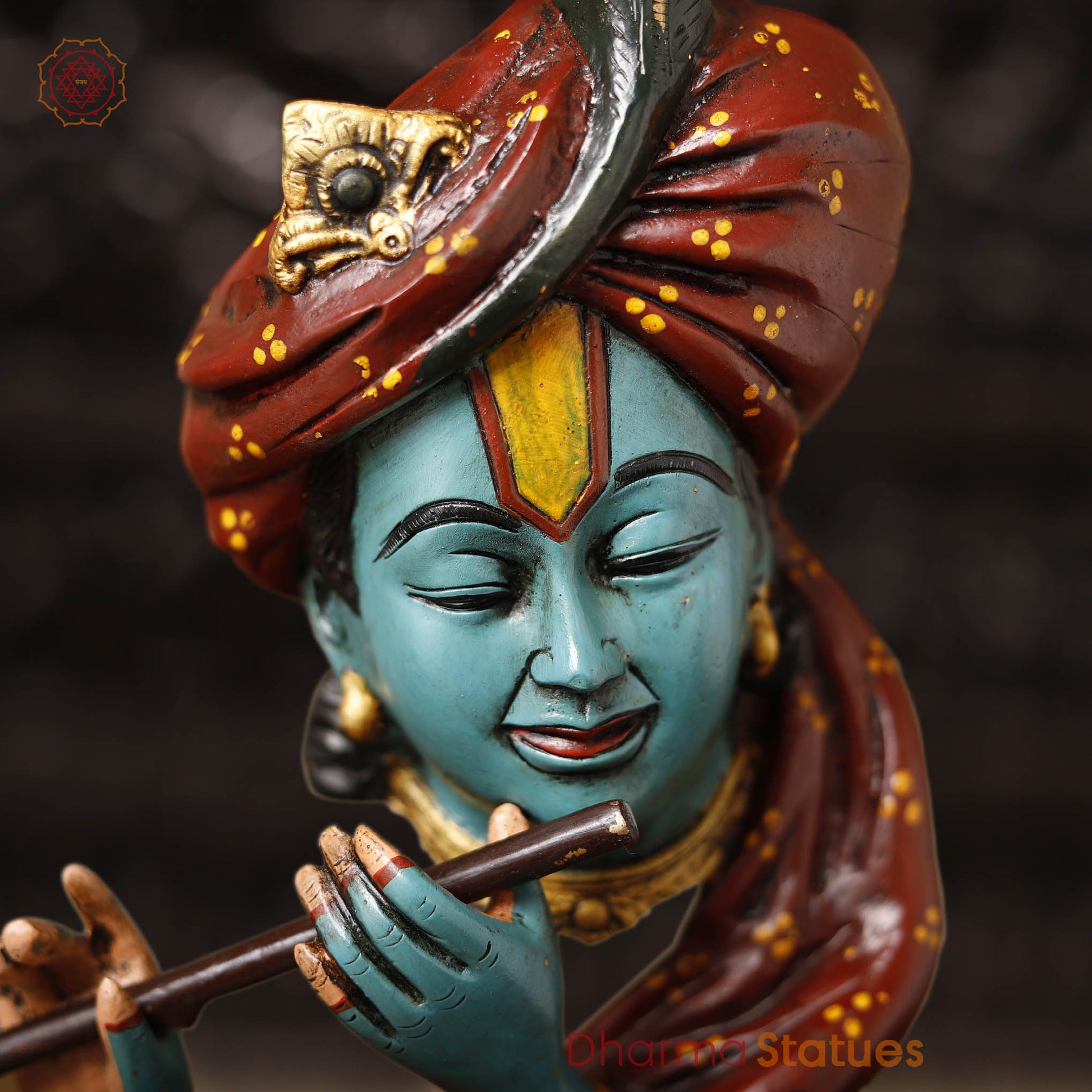 Brass Krishna Statue, Multi-Color Finish, 20.5"