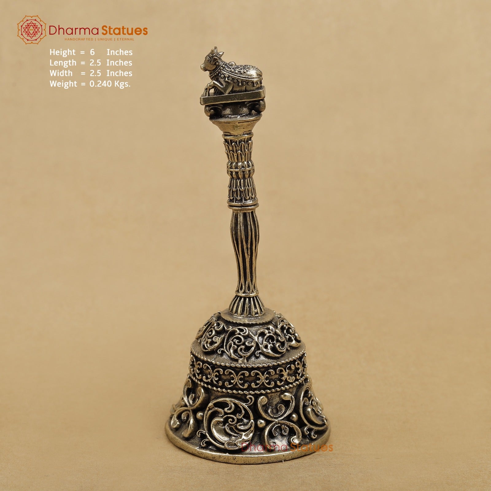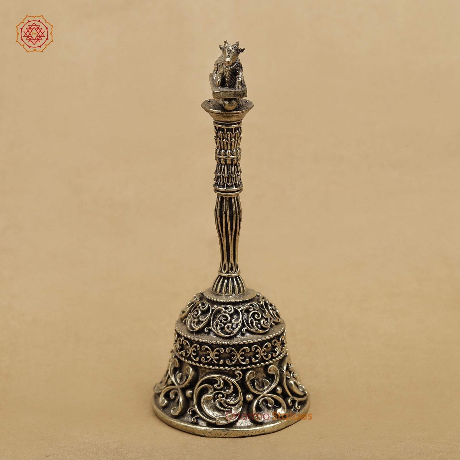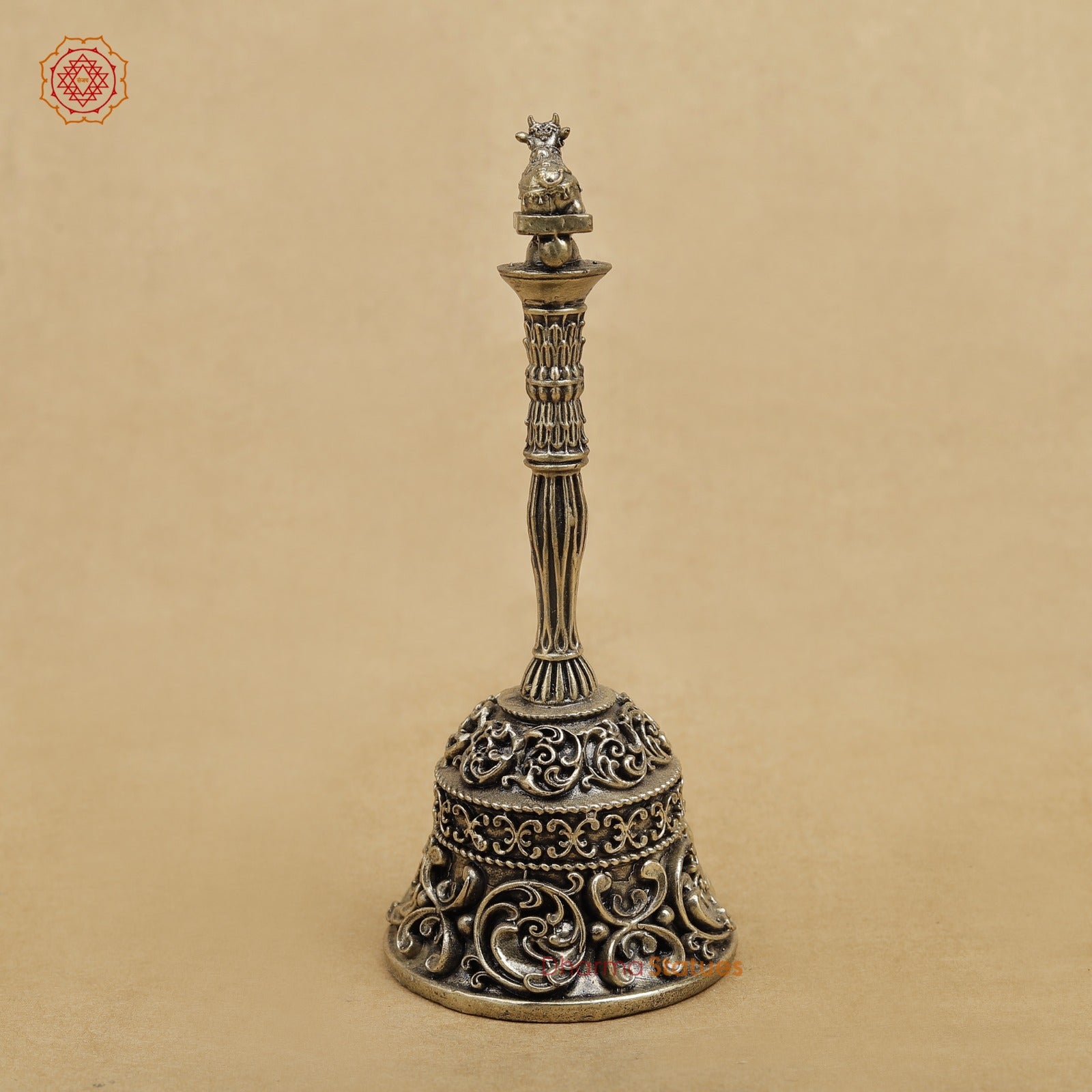 A beautifully crafted brass bell with a Nandi figure on top, symbolizing devotion and divine blessings of Lord Shiva. Ideal for temple rituals, home mandirs, and spiritual ceremonies.