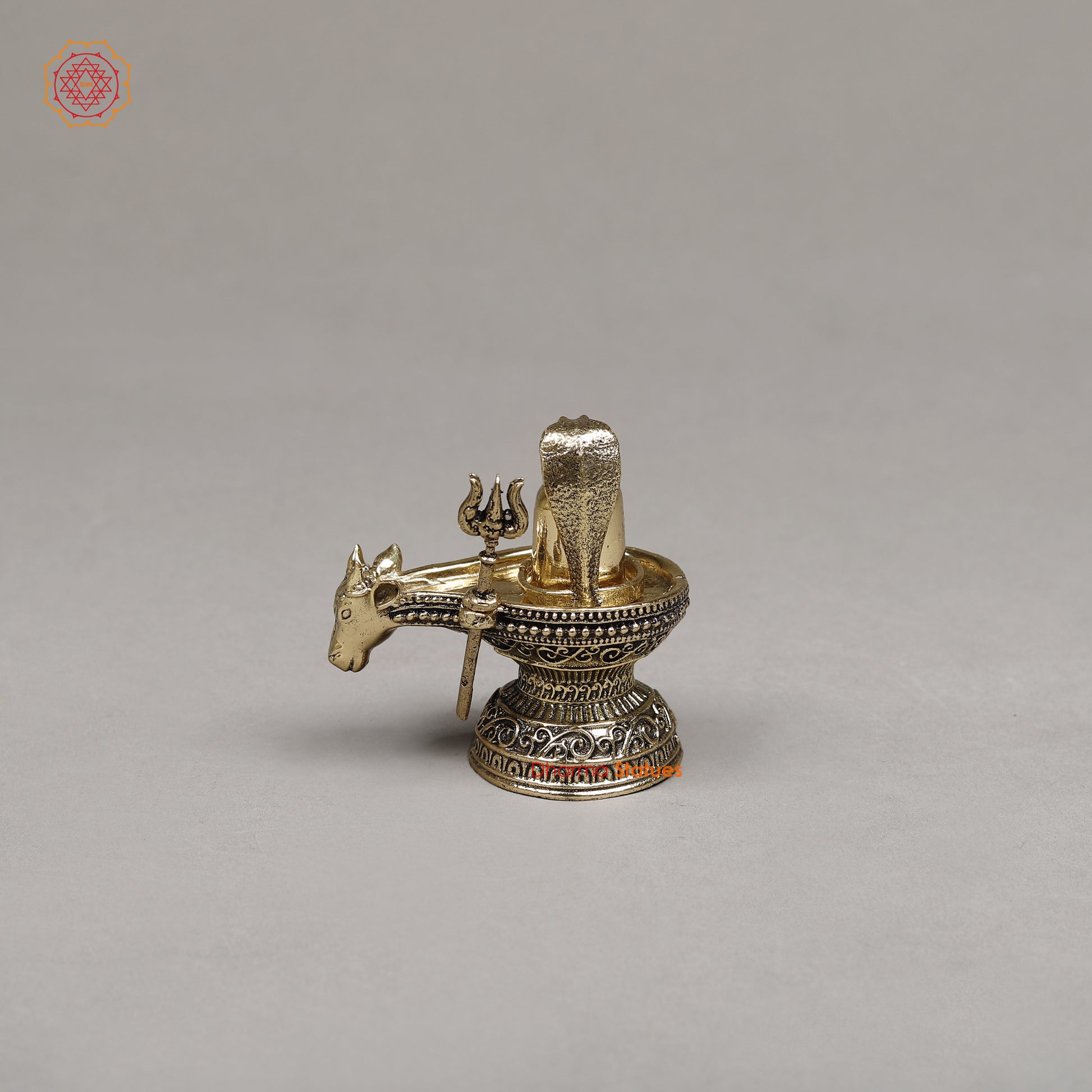 Brass Nandi Mukh Shivling with Naag and Trishul, 2.5"
