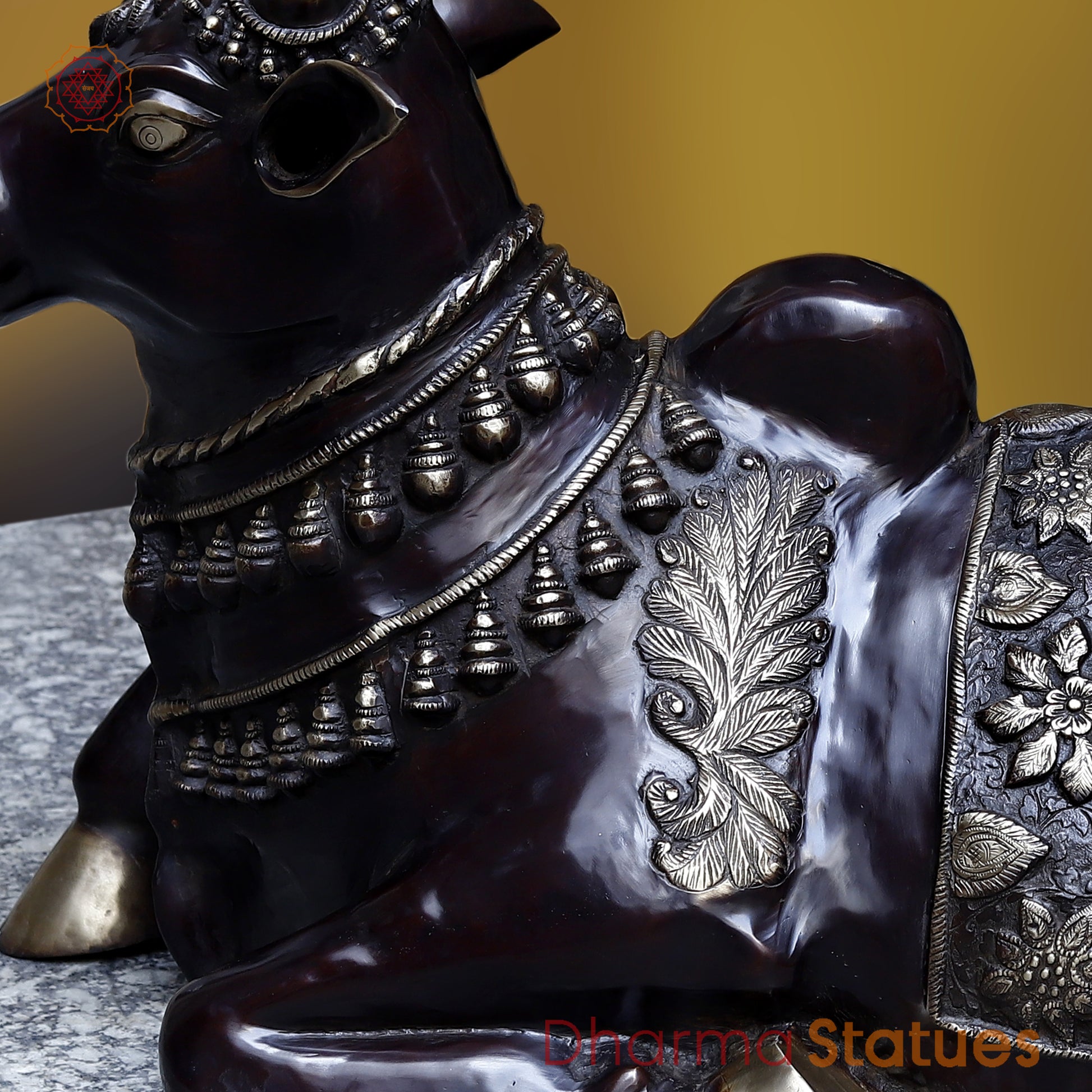 This Brass Nandi features a Black Patina and Golden Finish giving it a unique and elegant appearance. Made from high-quality brass, it is durable and adds a touch of sophistication to any space. Its seated position symbolizes strength and stability, making it a perfect decorative piece for the home or office.