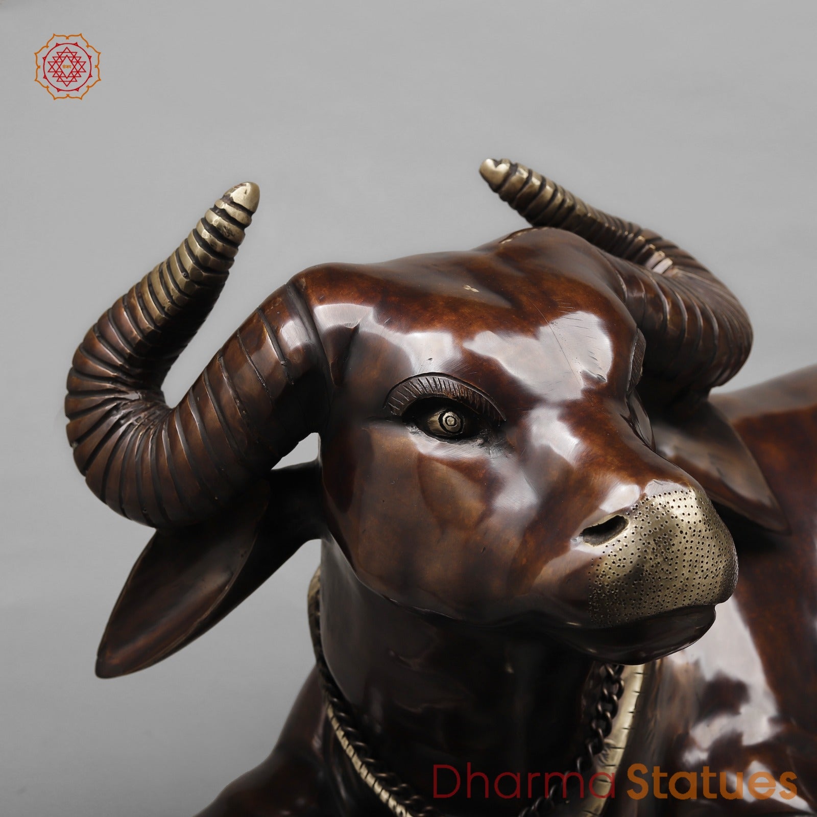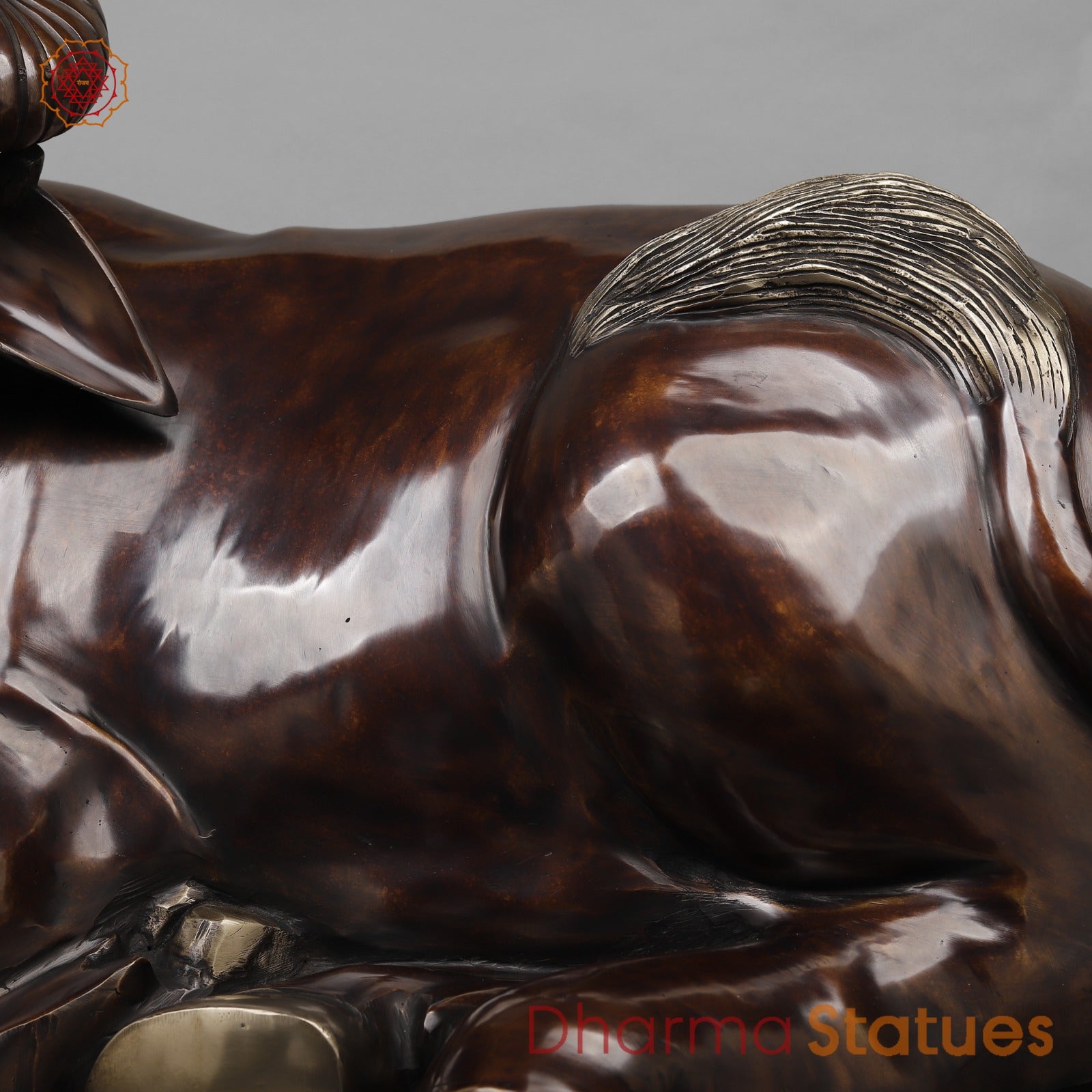 Brass Nandi Seated Statue crafted in a rich Copper finish, showcasing fine detailing and a smooth, glossy polish. The serene expression and traditional ornaments beautifully represent devotion, strength, and loyalty. Nandi, the sacred vehicle of Lord Shiva, symbolizes faith, patience, and righteousness. This heavy and premium-quality piece is ideal for home temples, pooja rooms, or as a spiritual décor statement.