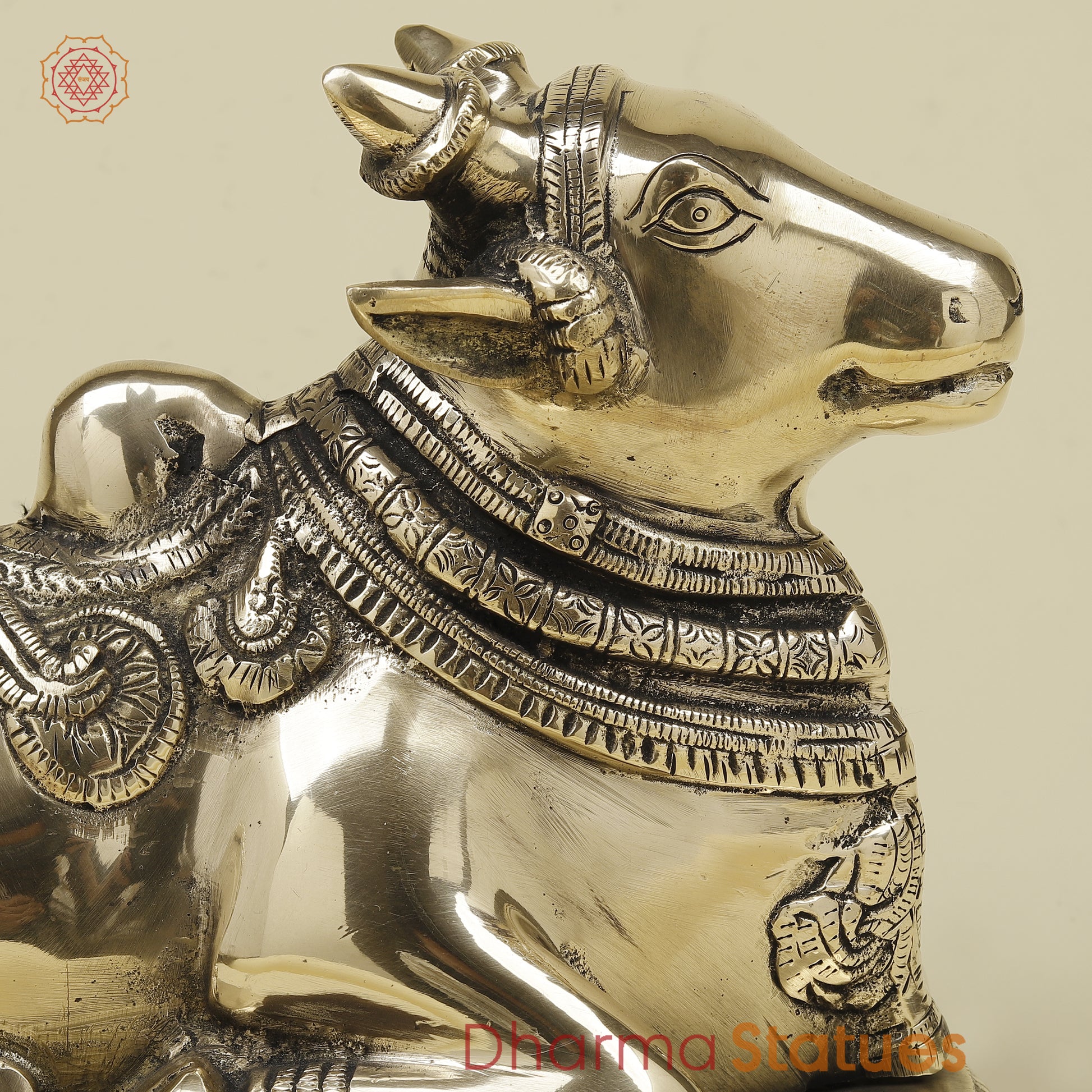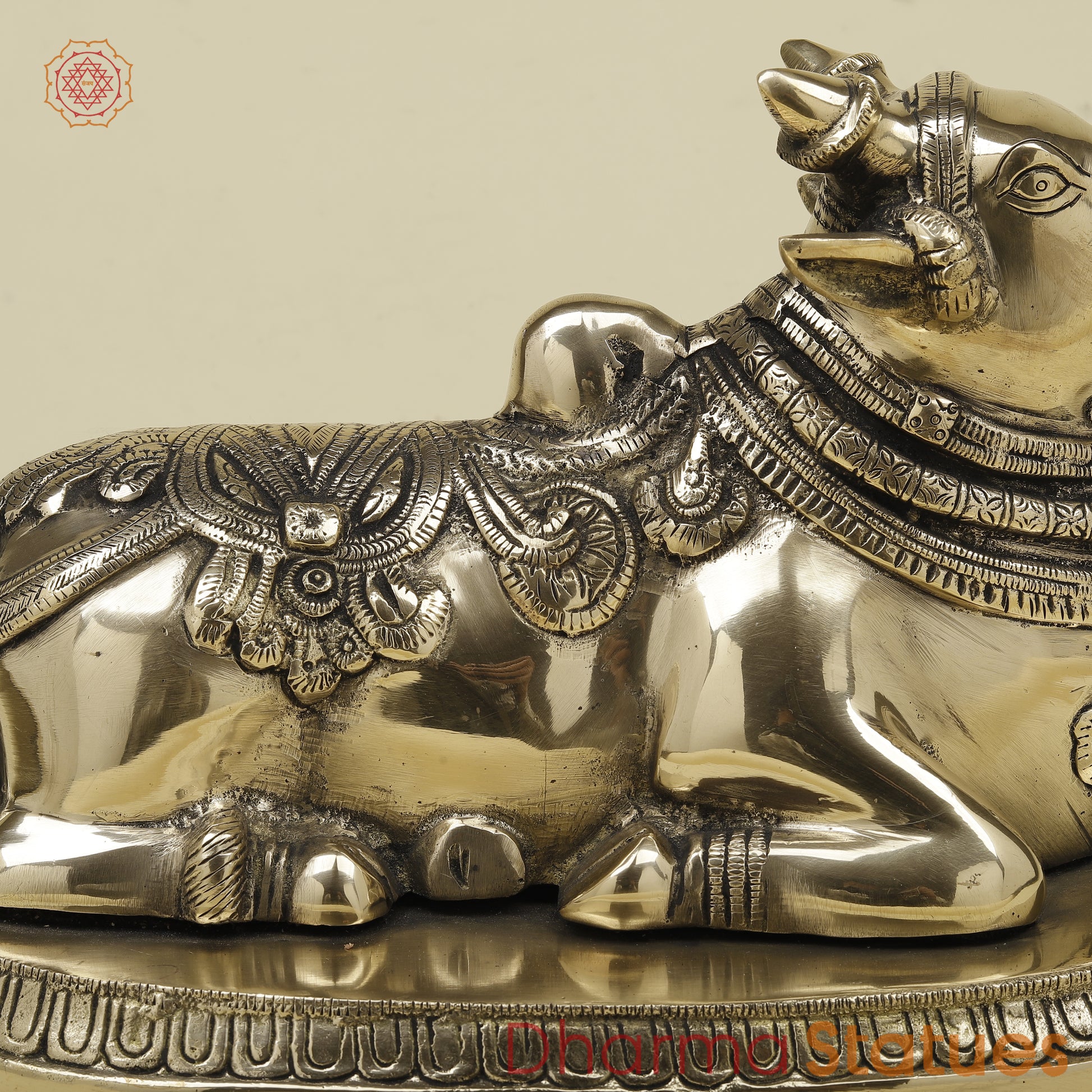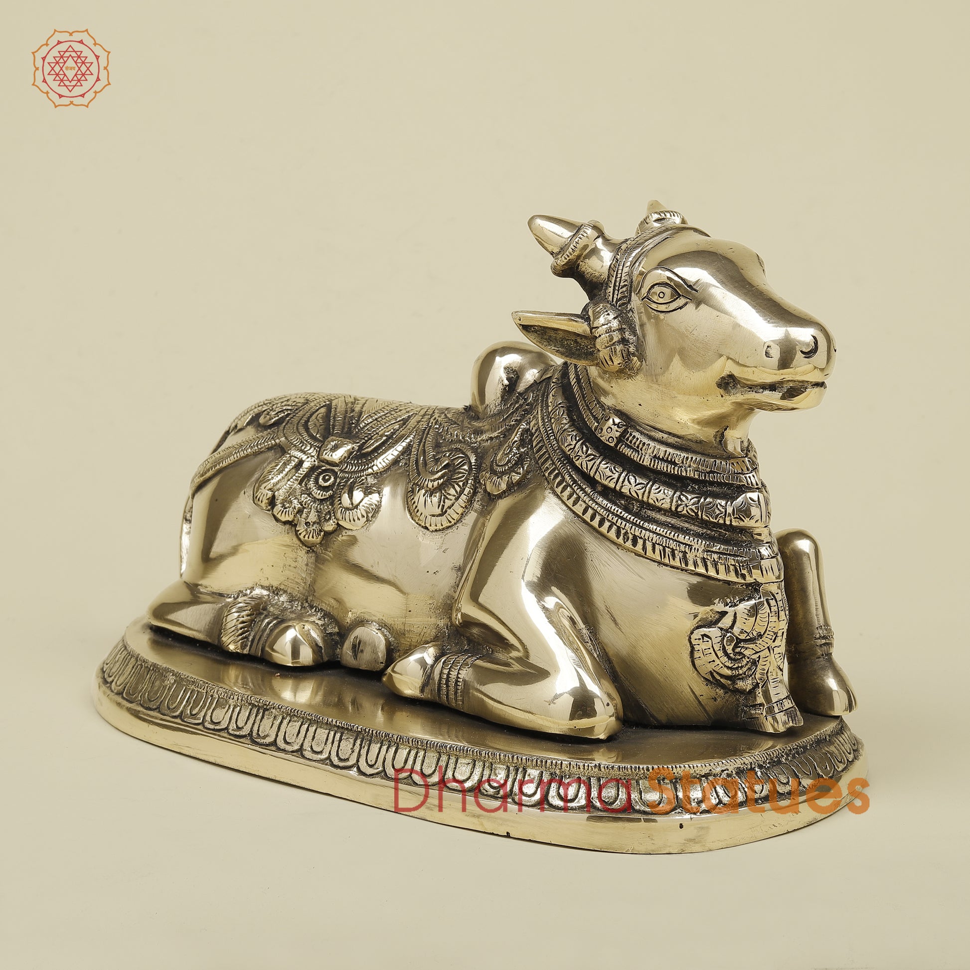 Brass Nandi Seated on Base, Fine Smooth Finish, 7.5"