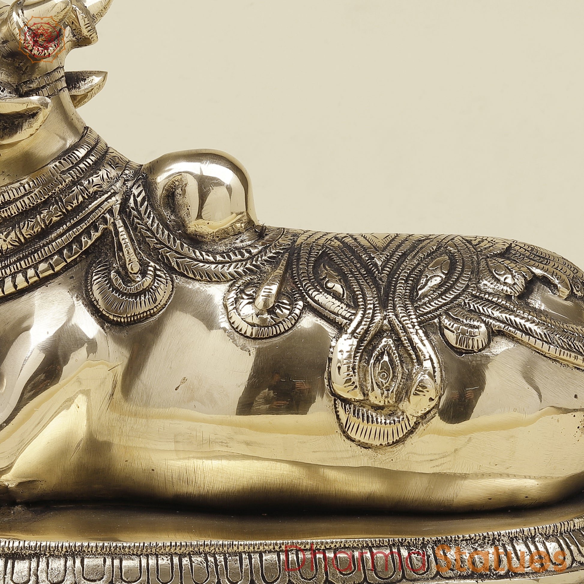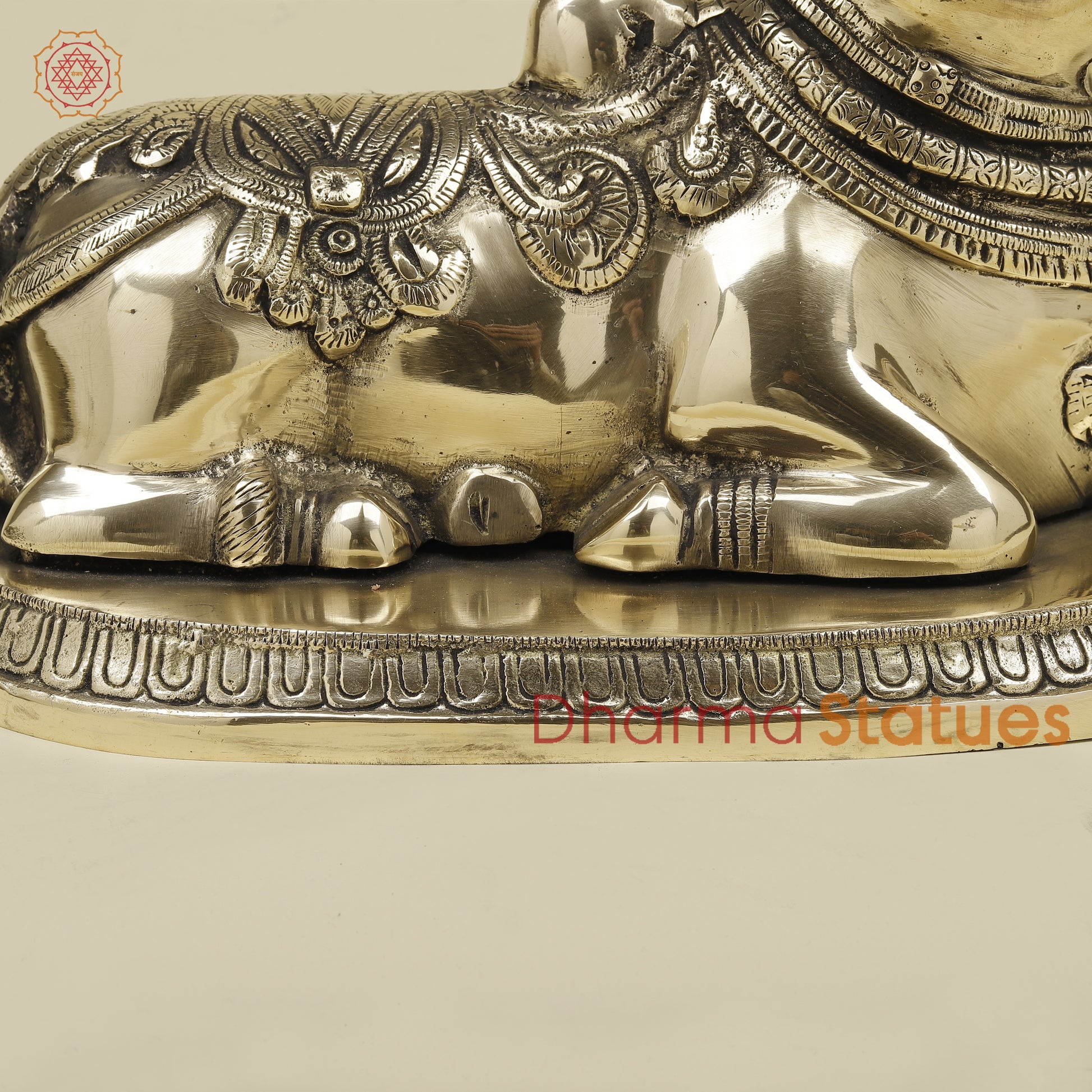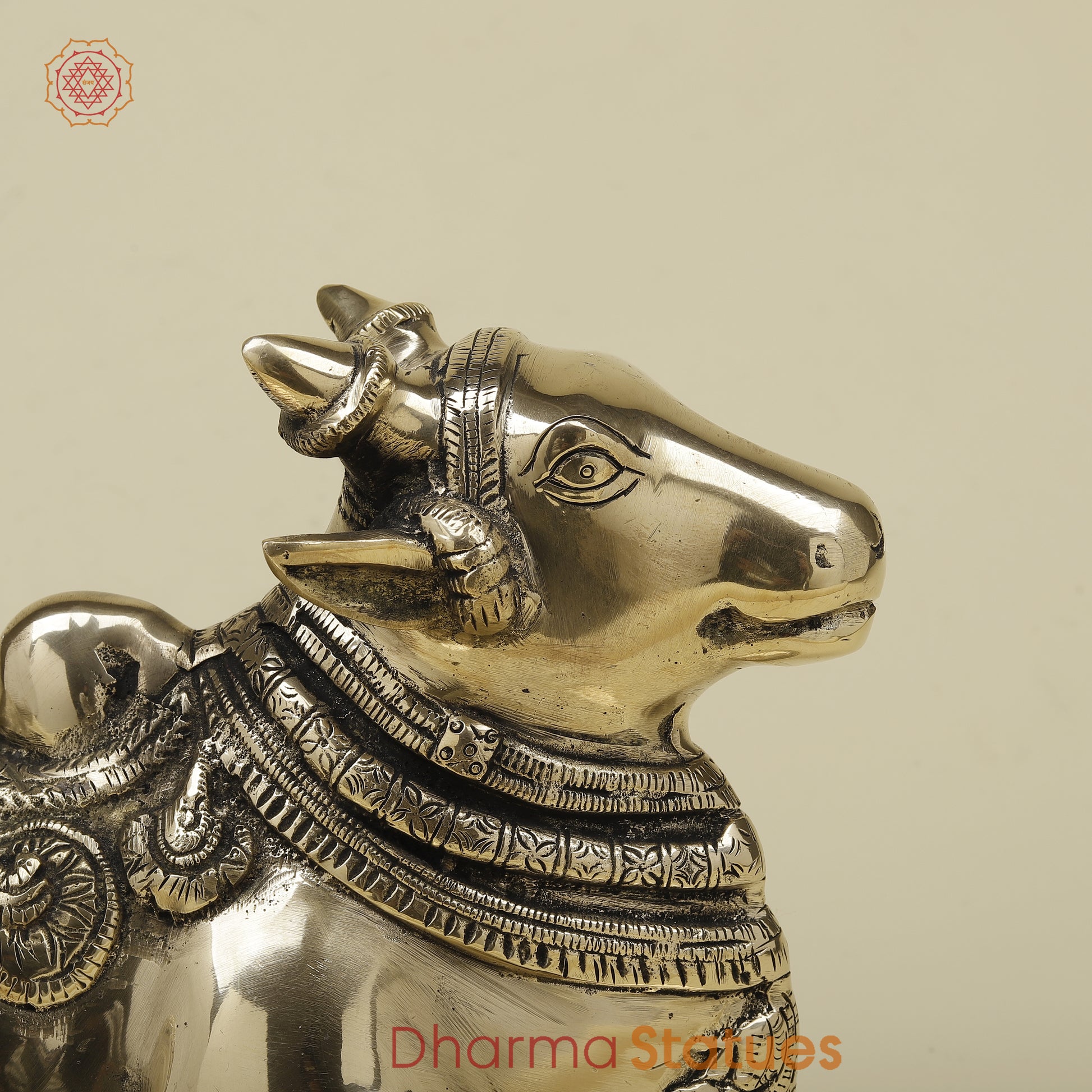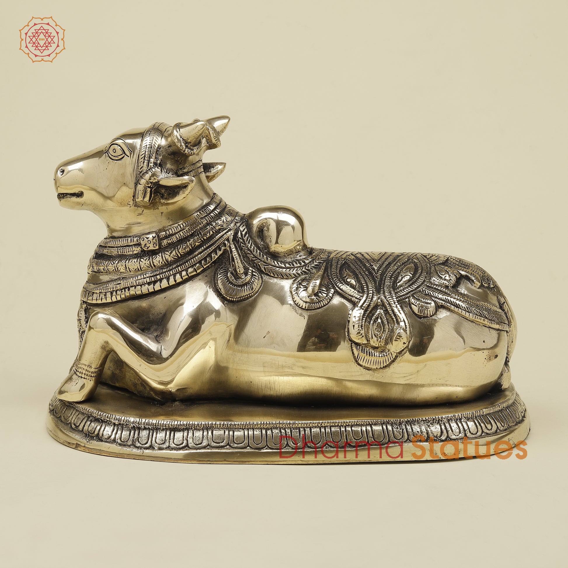 Brass Nandi Seated on Base, Fine Smooth Finish, 7.5"