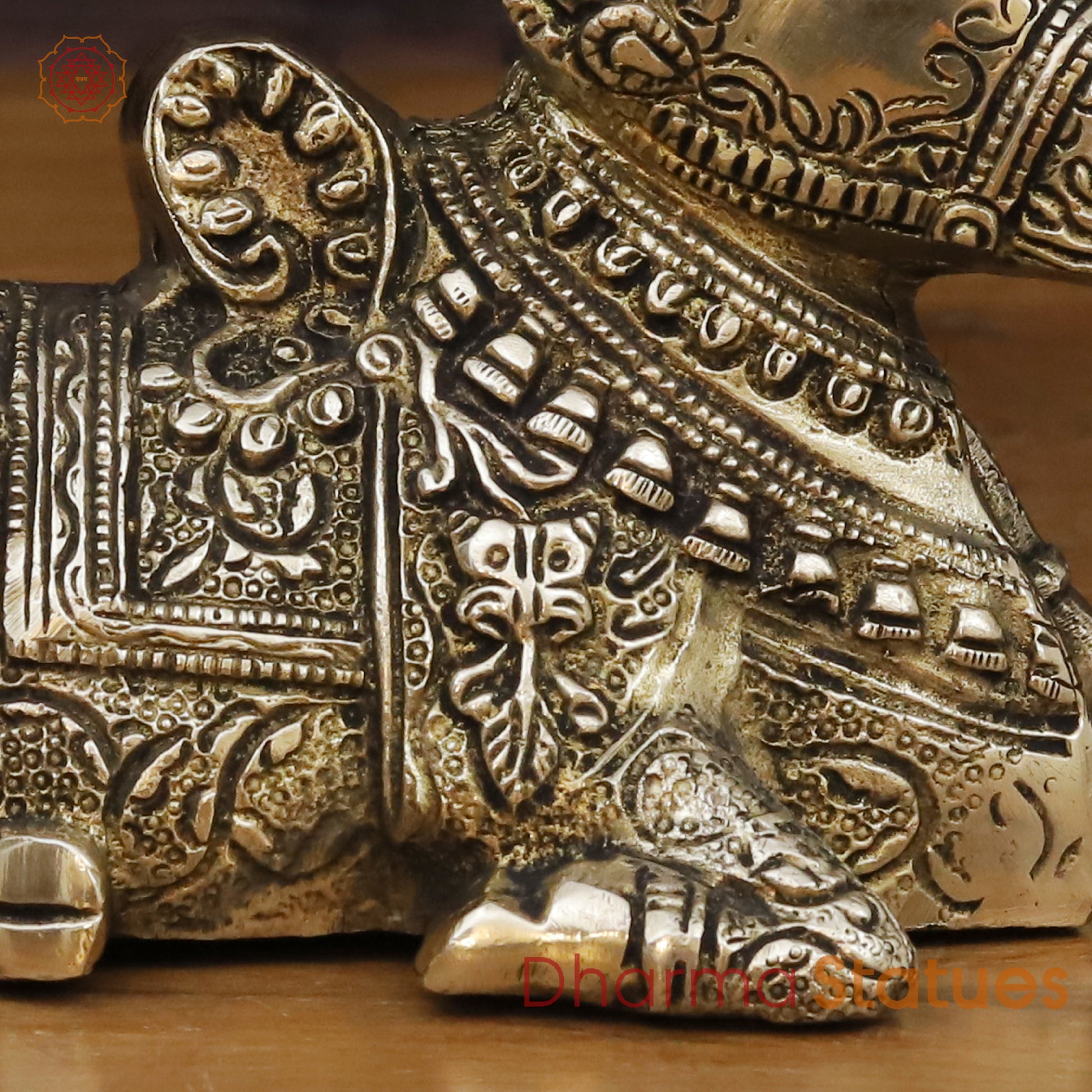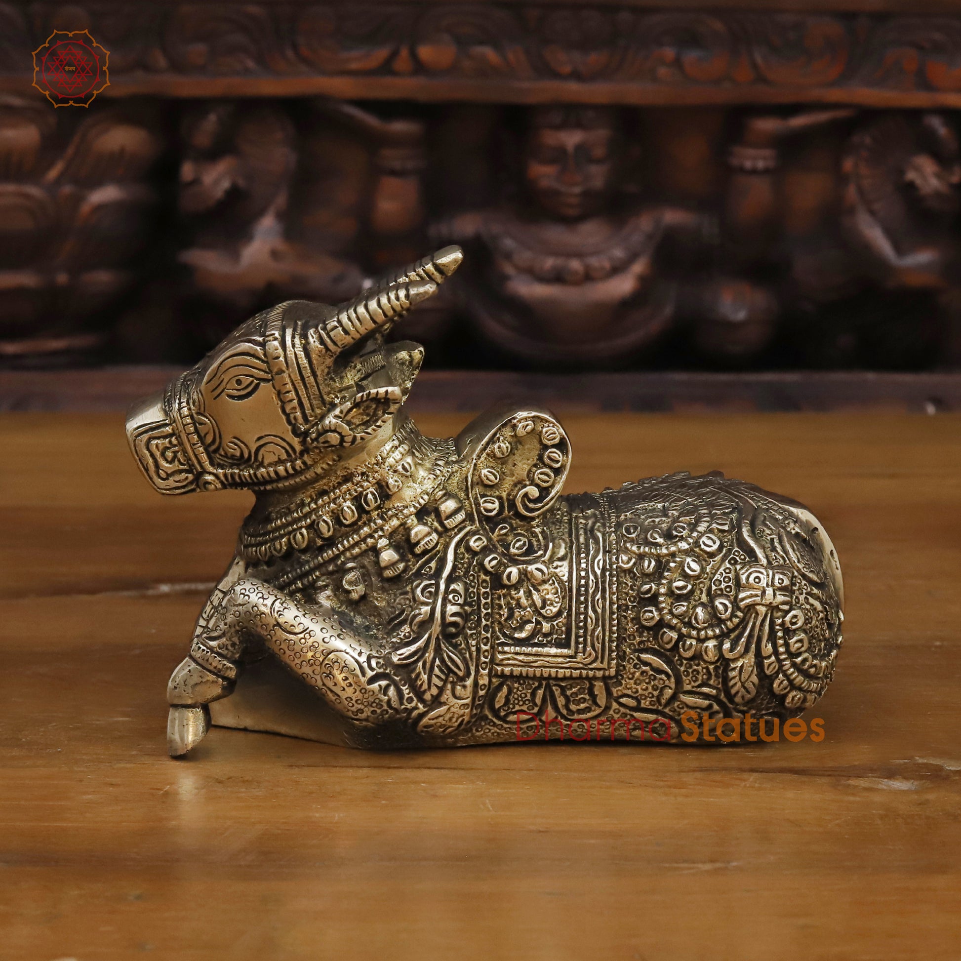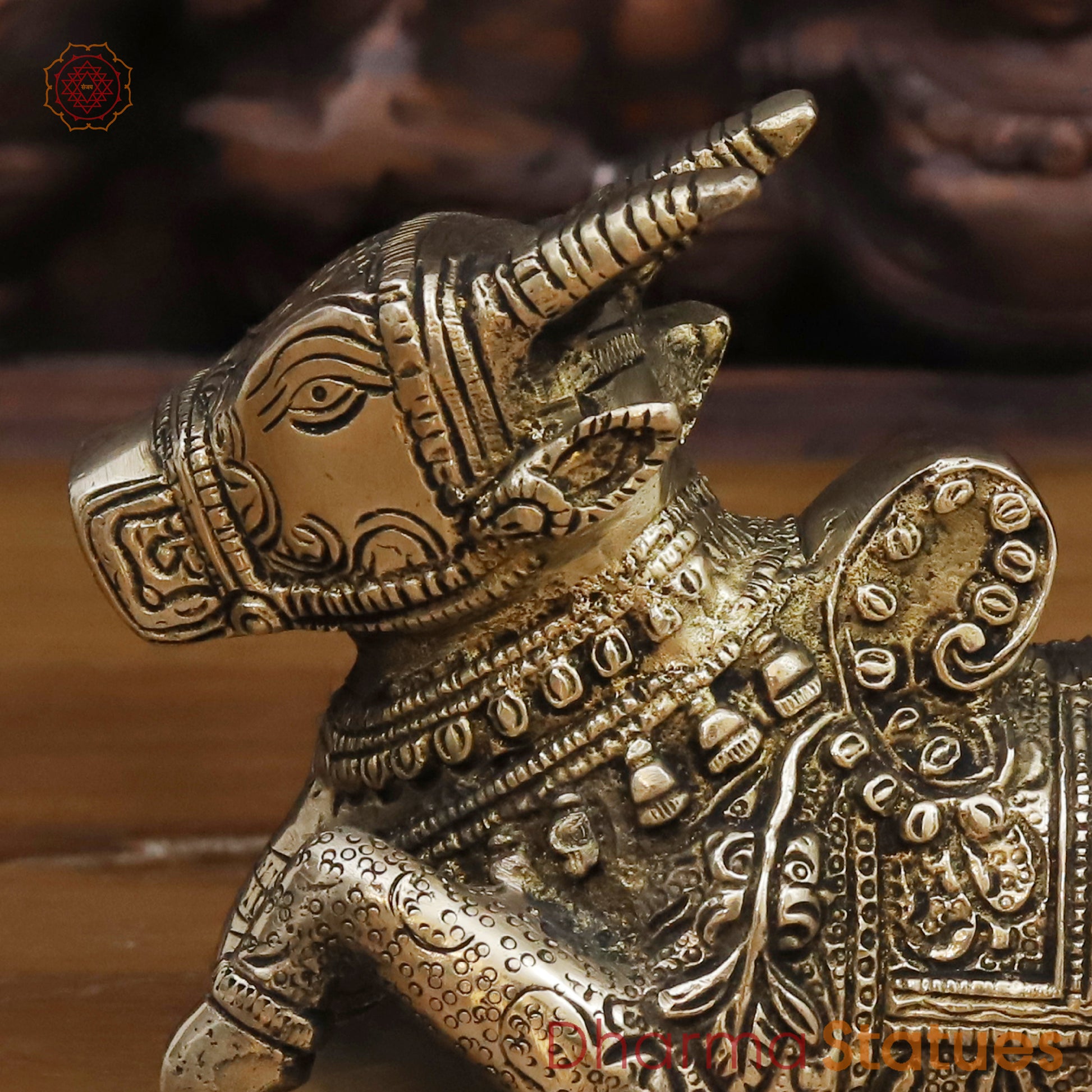 Brass Nandi Statue, Handcrafted with Exquisite Craftsmanship, Golden Finish 4.5"