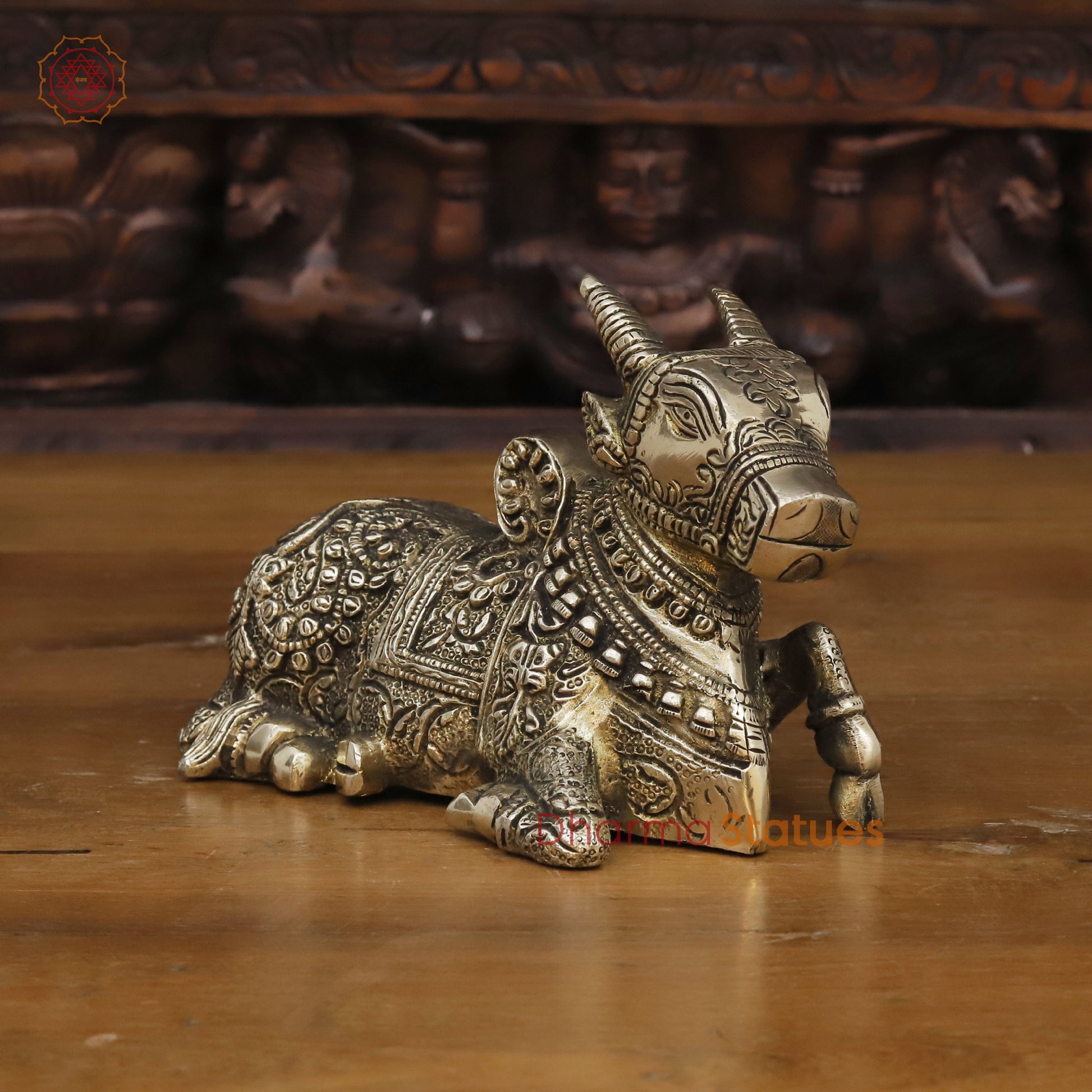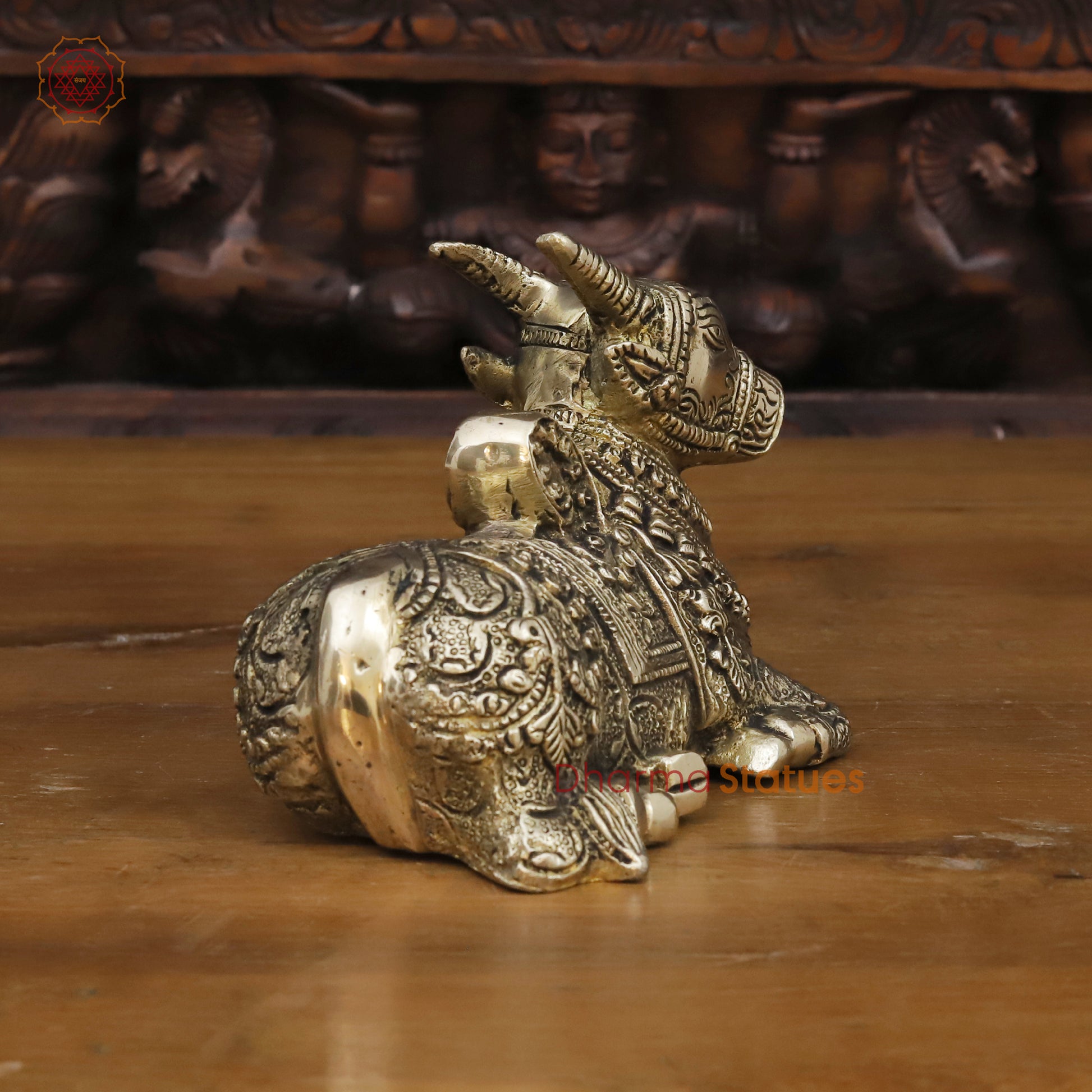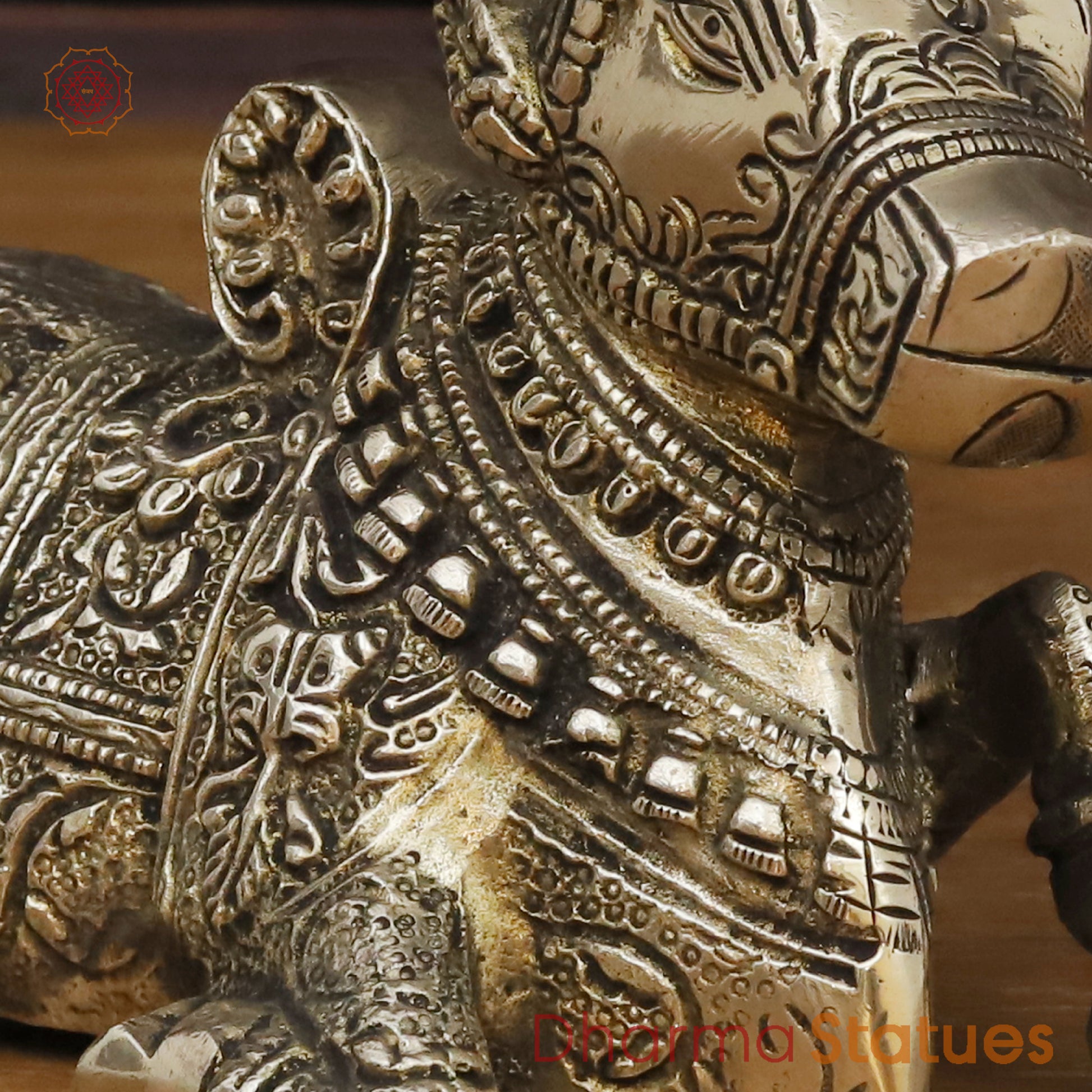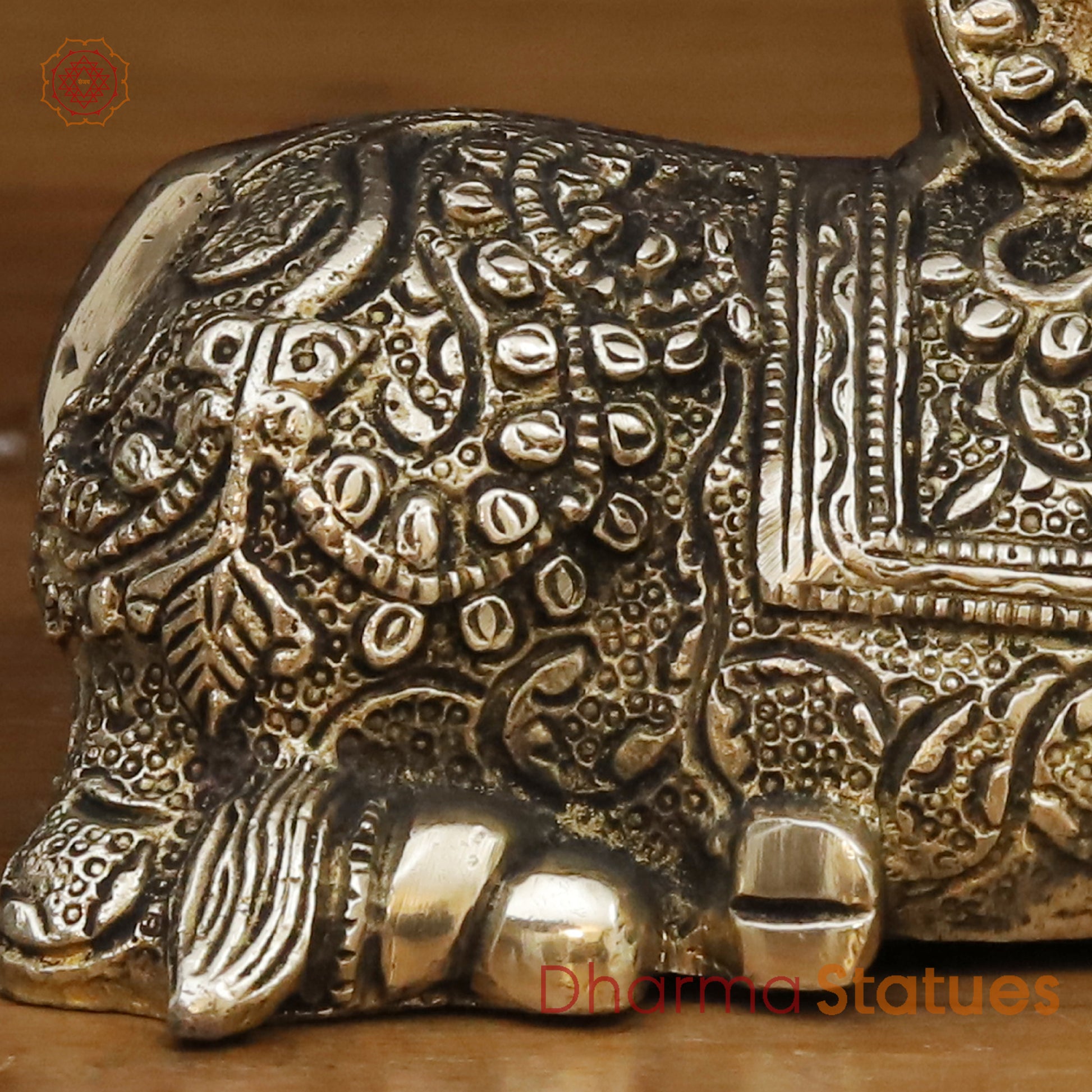 Brass Nandi Statue, Handcrafted with Exquisite Craftsmanship, Golden Finish 4.5"