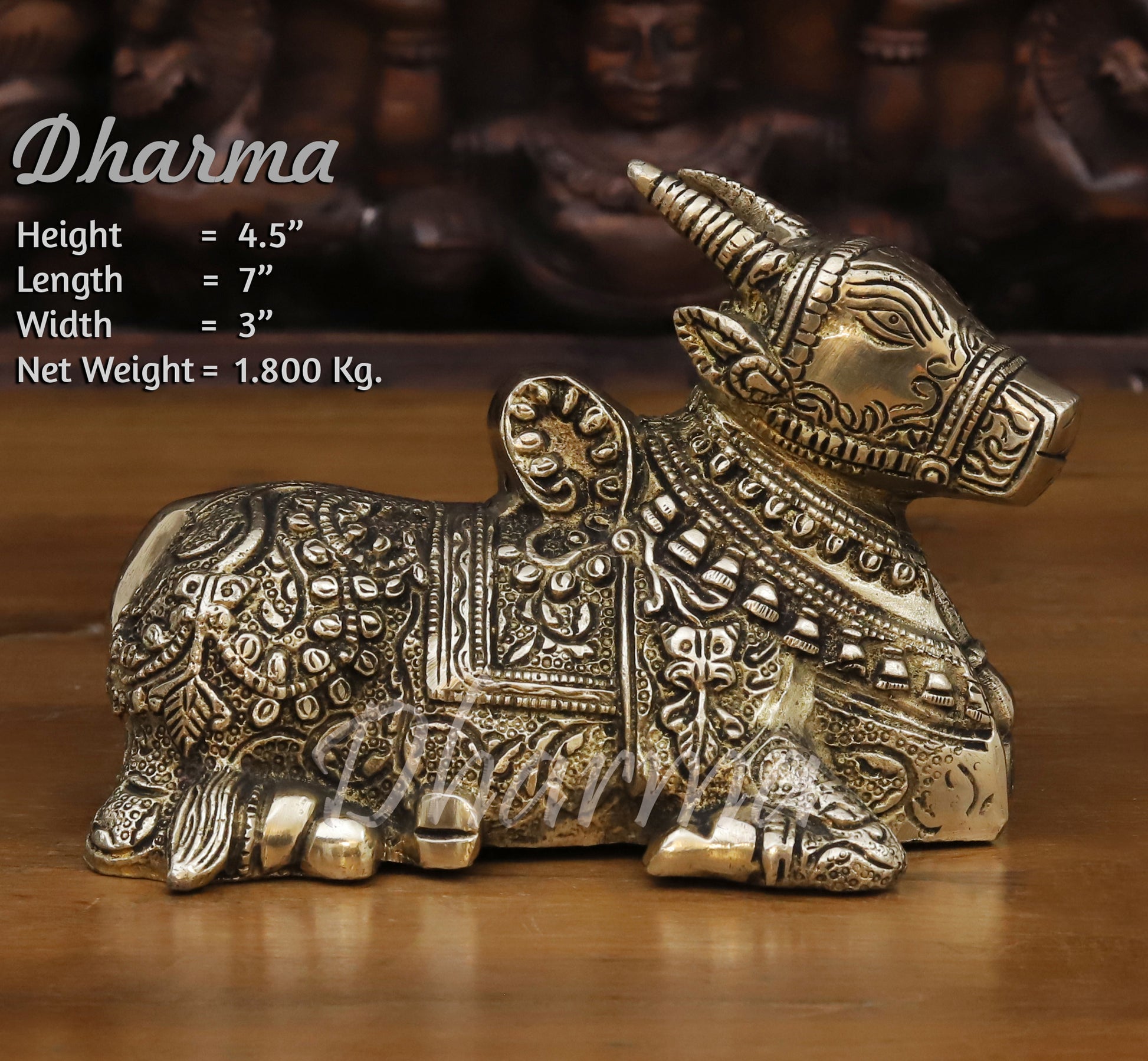 Elevate your decor with this exquisite Brass Nandi Statue, showcasing meticulous handcrafted fine work and a stunning golden finish. Bring the divine presence and elegance of Nandi into your home with this timeless piece.