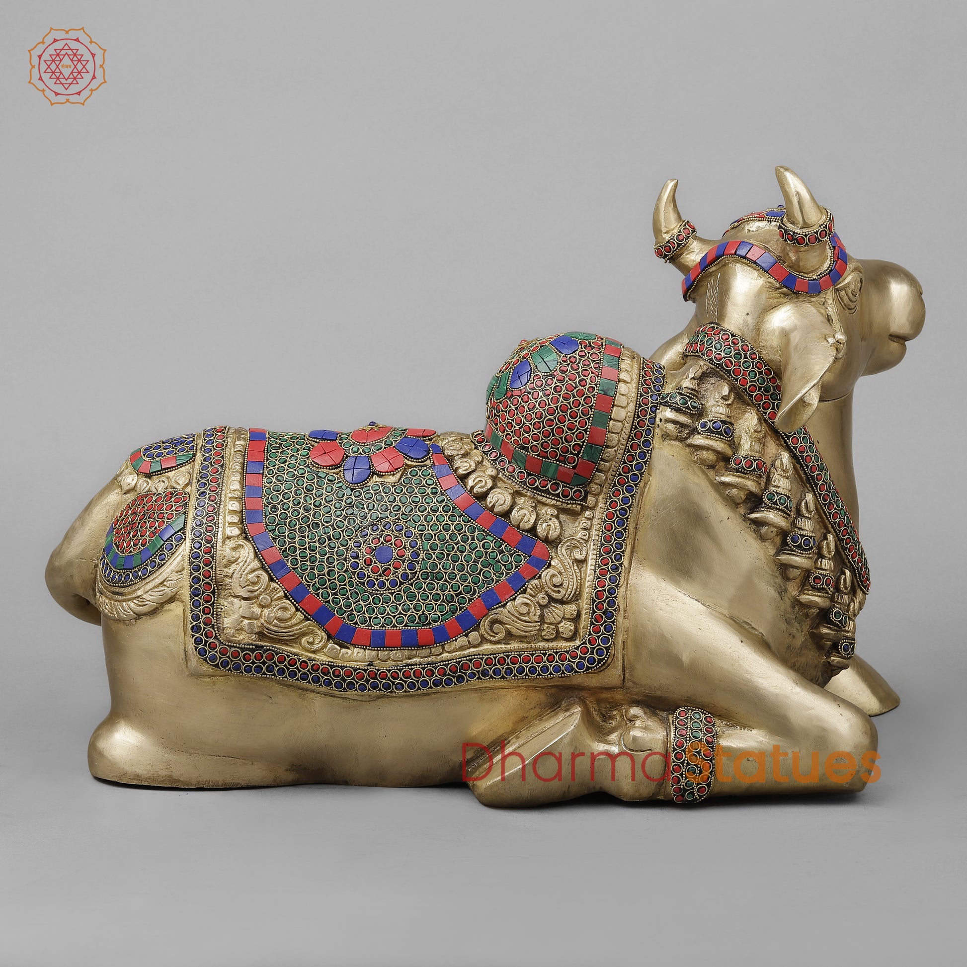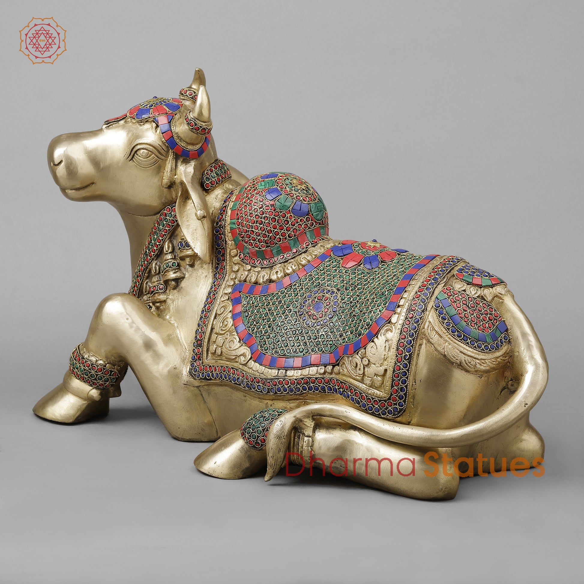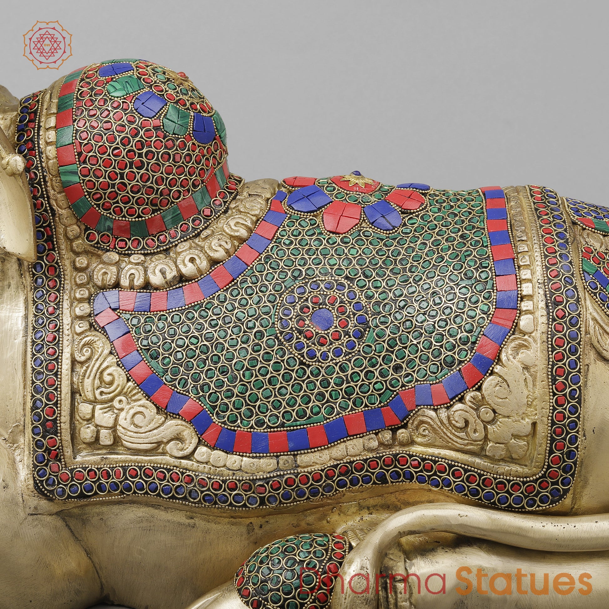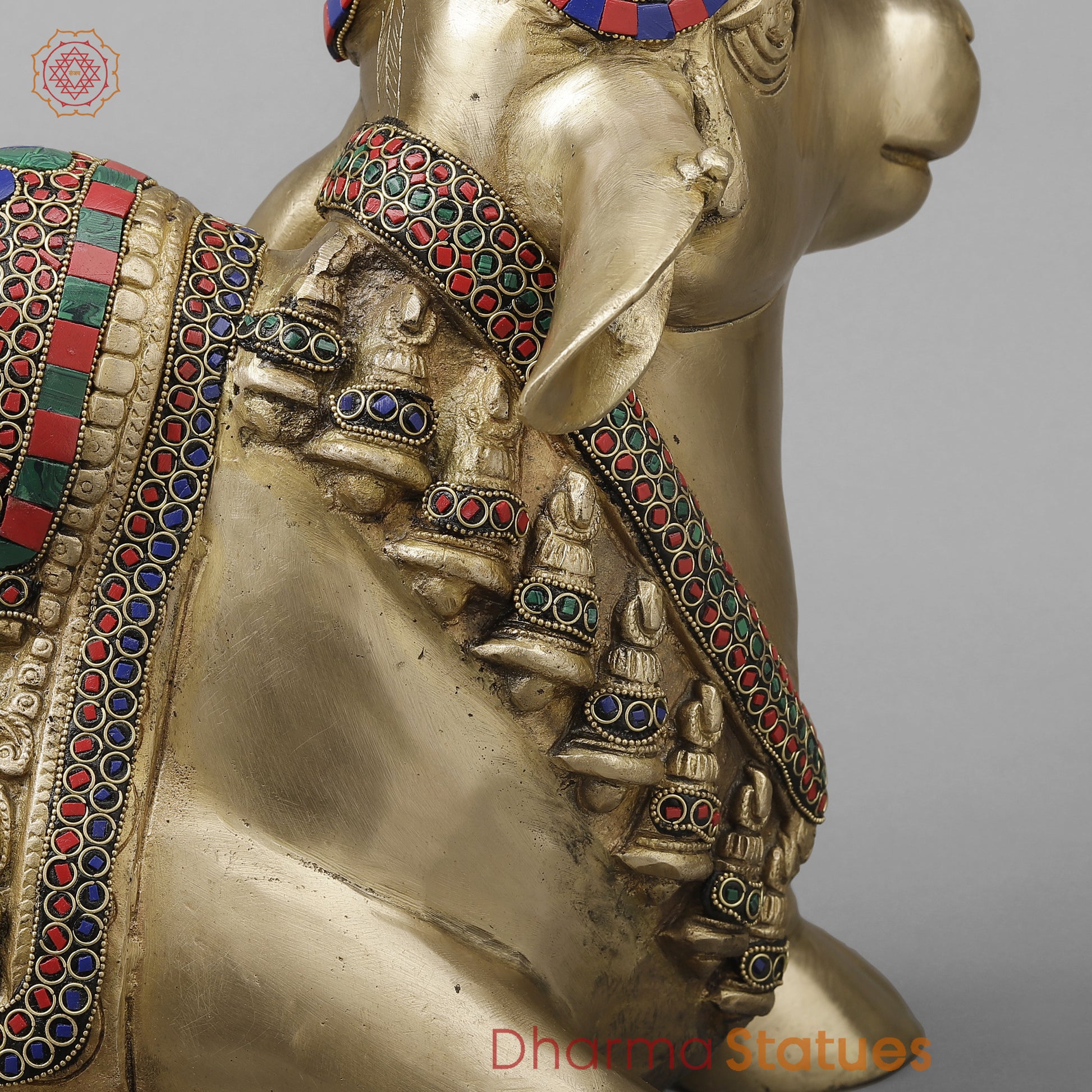 Brass Nandi Seated With Stonework, Golden Finish, 21”
