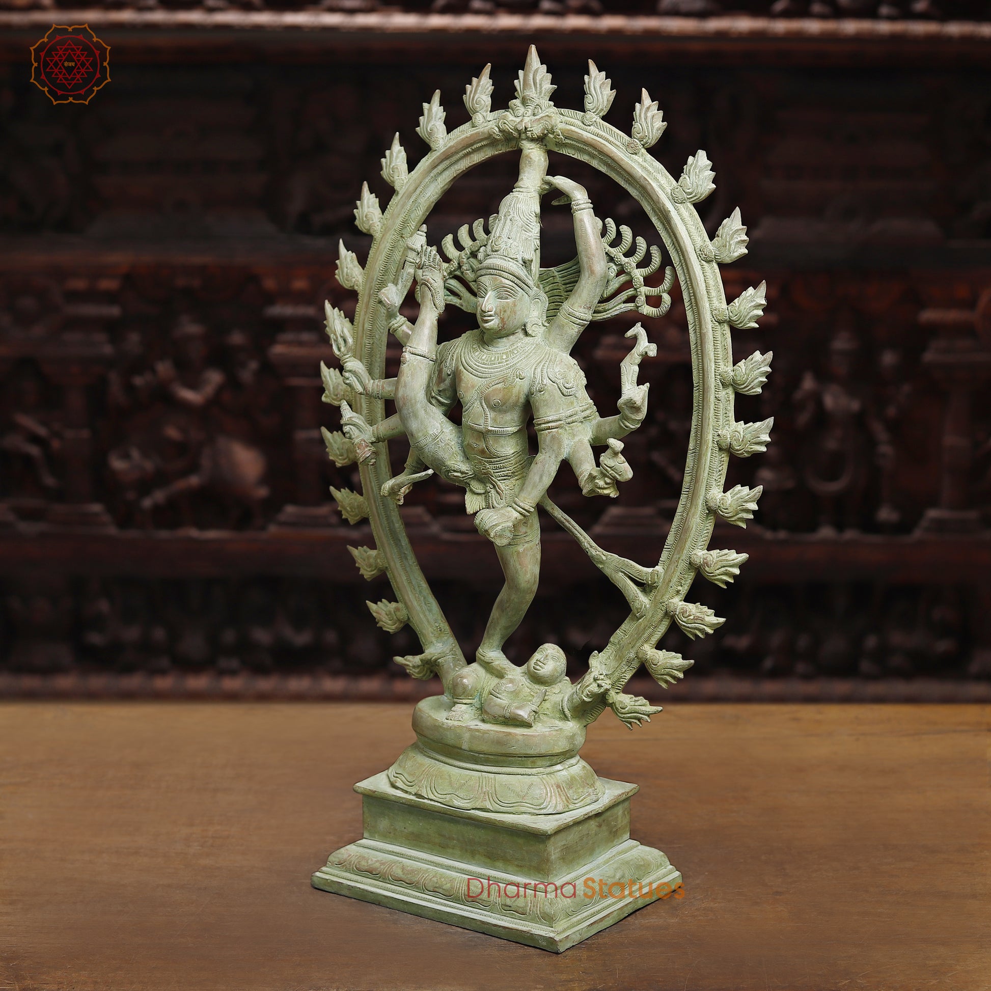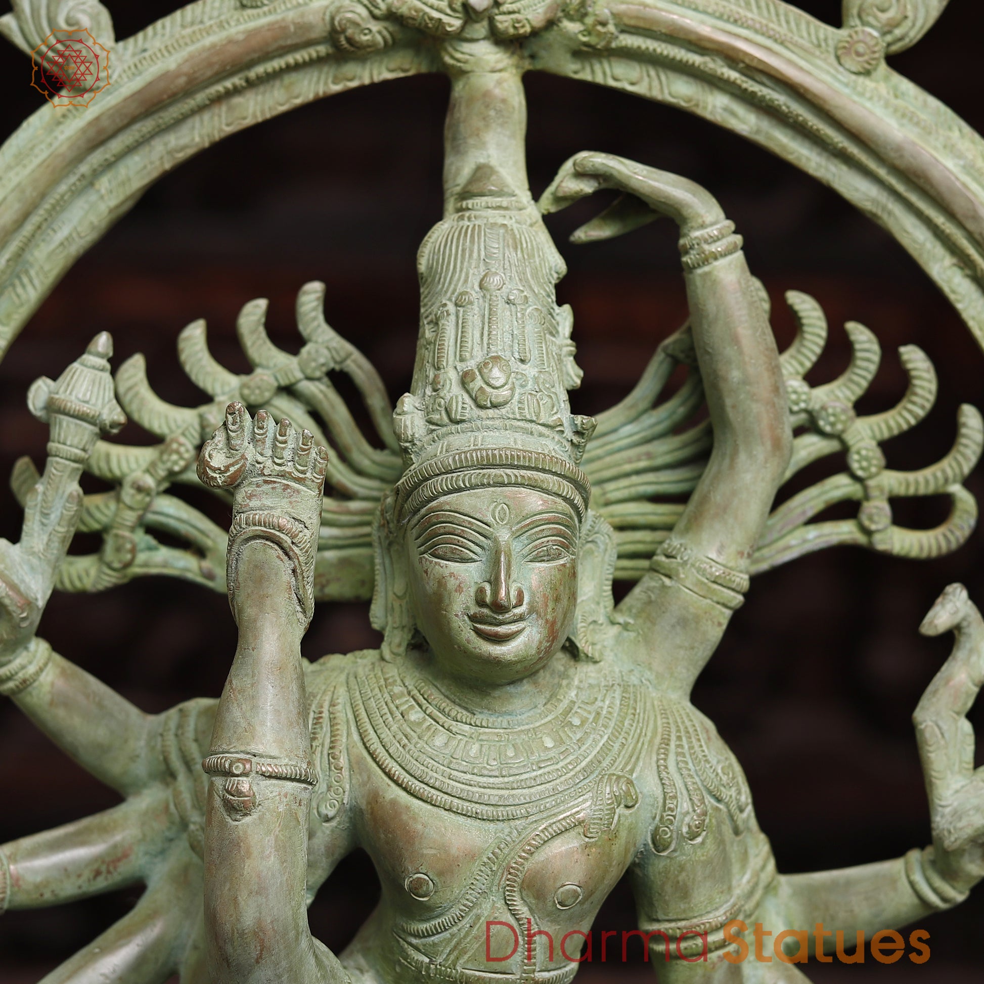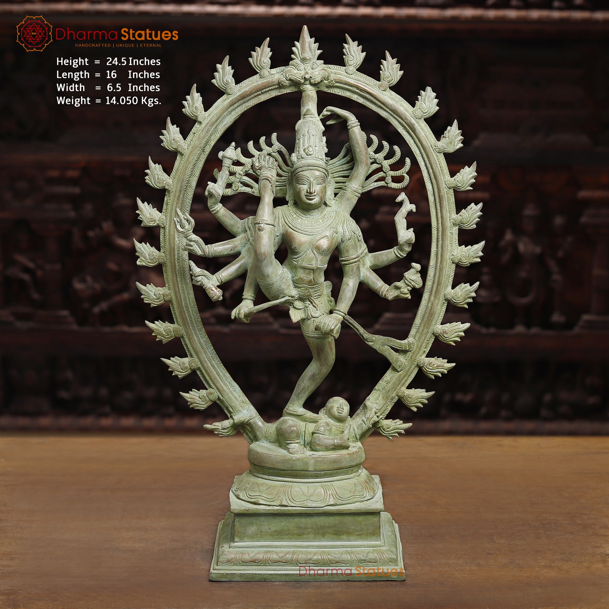 Brass Nataraj, Dancing Shiva, Antique Green Finish, 24.5"