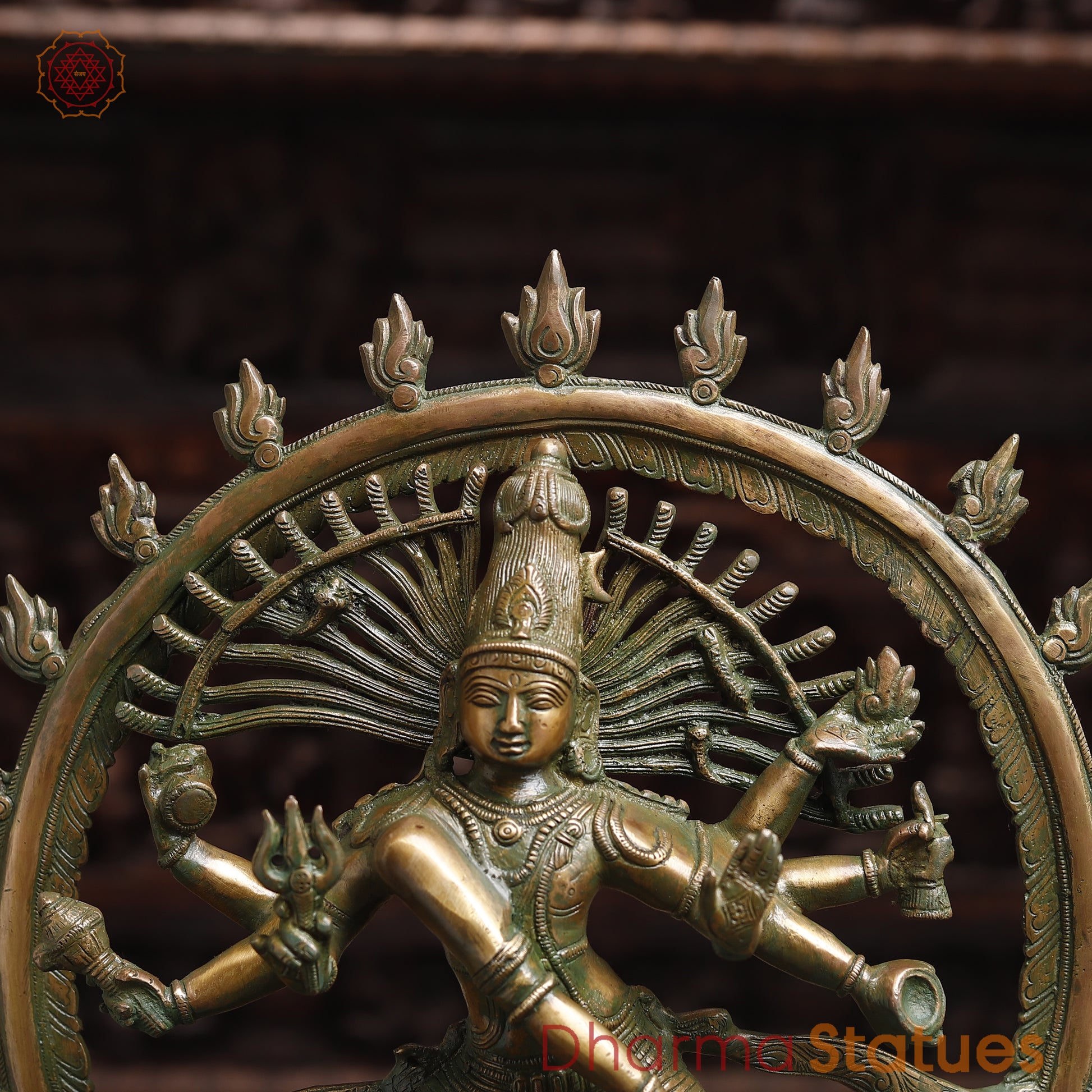 Brass Nataraj, Dancing Shiva, Golden & Green Finish, 20"