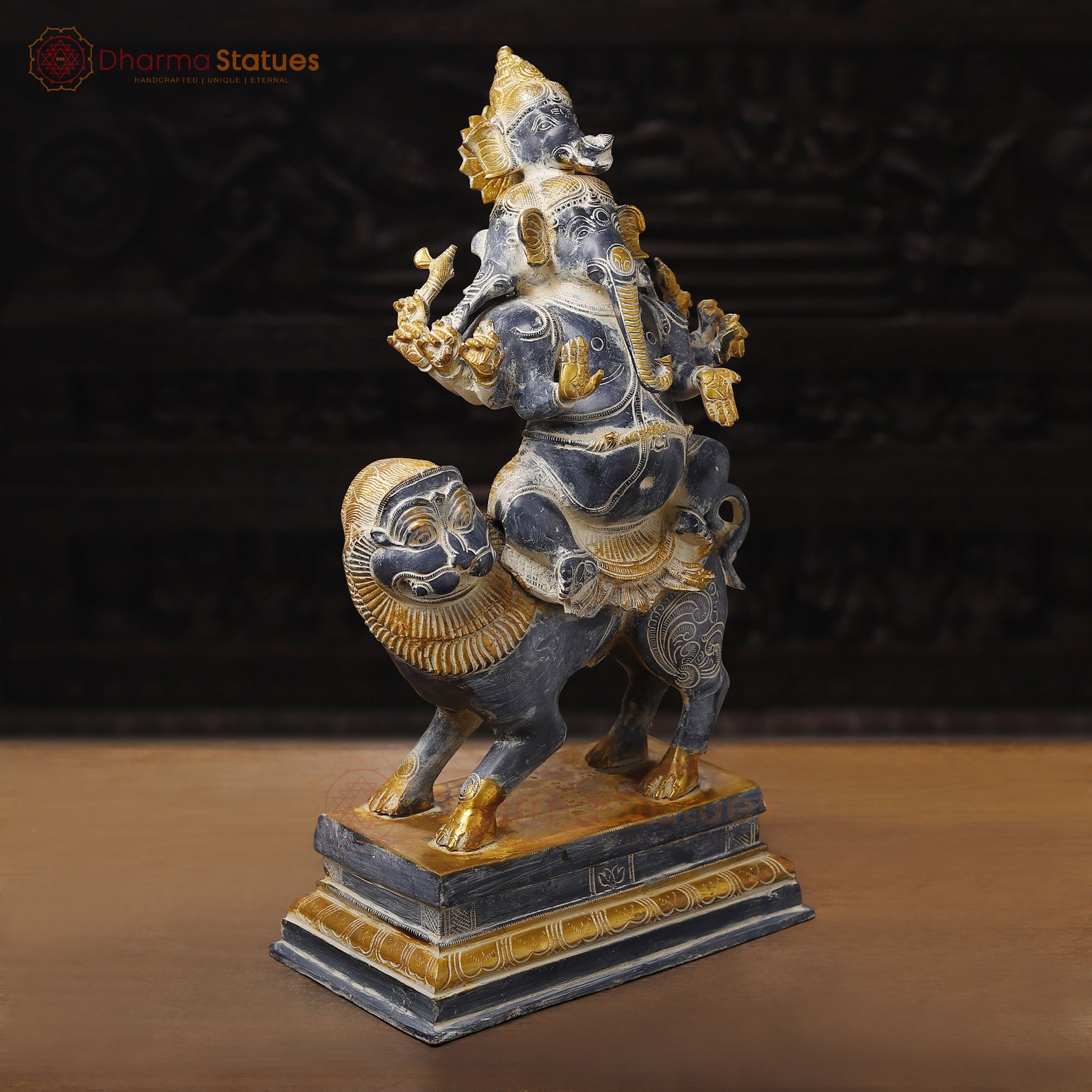 Brass Ganesh Panchmukhi Sitting On lion, Antique Finish, 24"