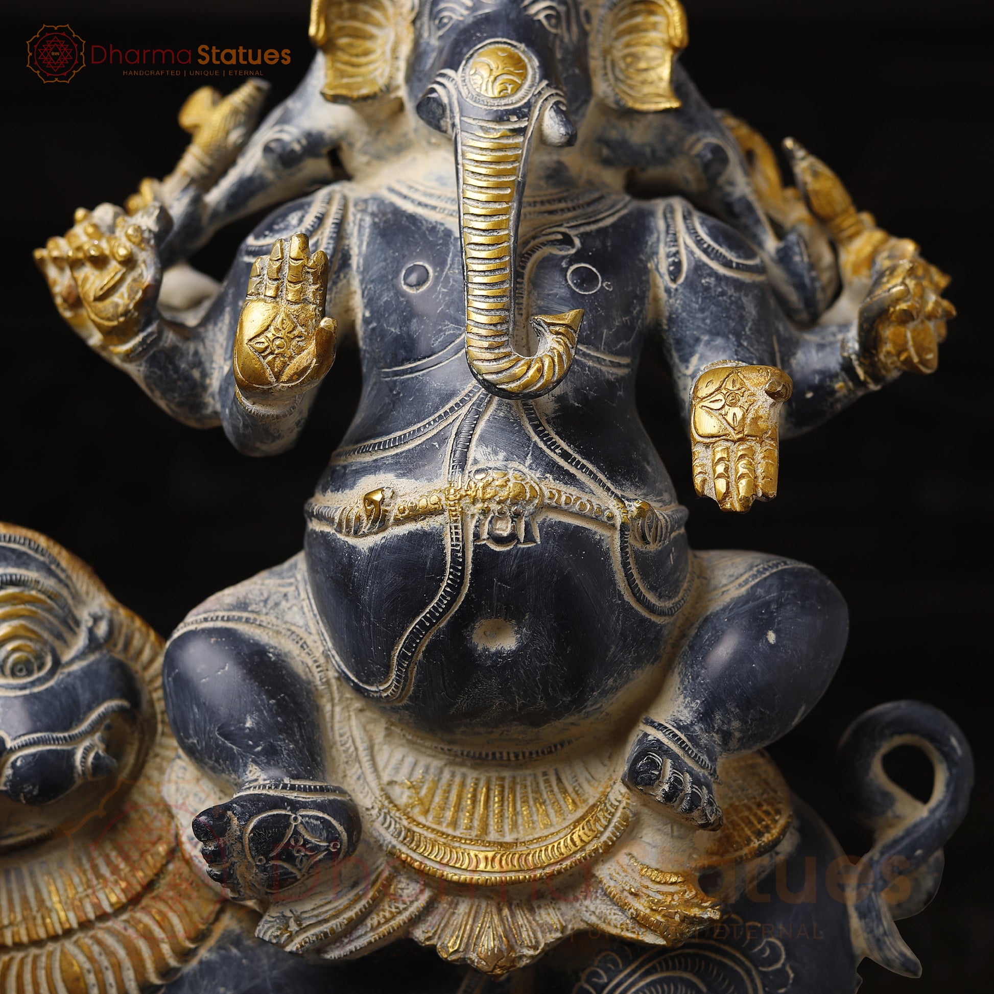 This striking Brass Panchmukhi Ganesh statue features the five-faced deity seated majestically on a lion, finished with a dramatic black patina. Each face of Ganesh represents a different aspect of his divine nature, symbolizing protection, wisdom, prosperity, and the removal of obstacles. The detailed craftsmanship captures the powerful yet serene presence of Ganesh, while the lion adds a dynamic element of strength and courage. Perfect for home deco, temples, or as a unique gift, this Brass Panchmukhi Ganesh statue with its black patina finish brings an aura of spiritual depth and artistic elegance to any space. Best for Wedding Gift | Diwali Gift | Gift purpose | Temple | worshipping | Perfect for Home decoration | Office decoration.