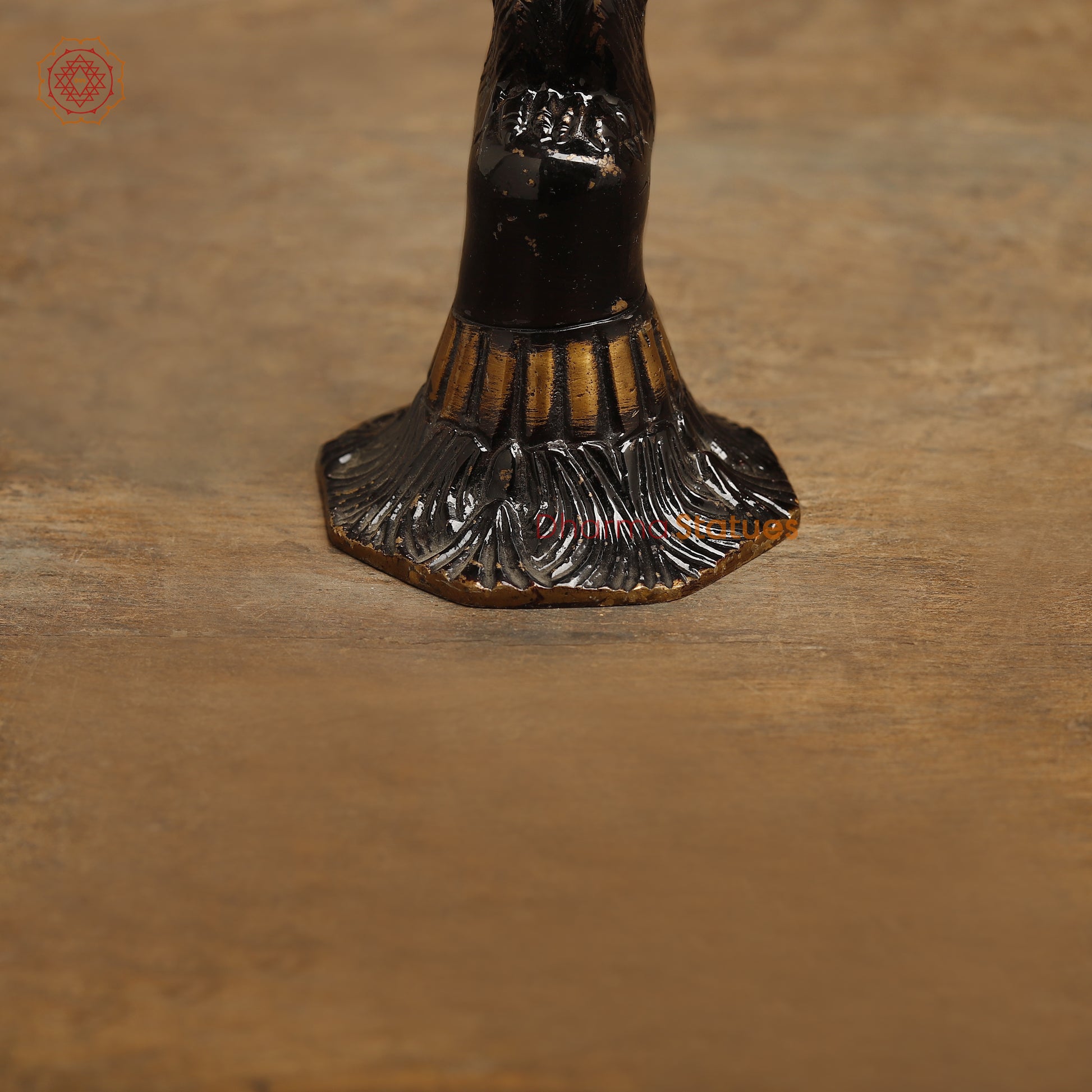 This brass showpiece depicts an open winged eagle with a stunning copper and golden finish. Standing at 5 inches tall, it adds a touch of elegance and sophistication to any space. Made from high-quality brass, this showpiece is a perfect addition to any home decor or office setting.