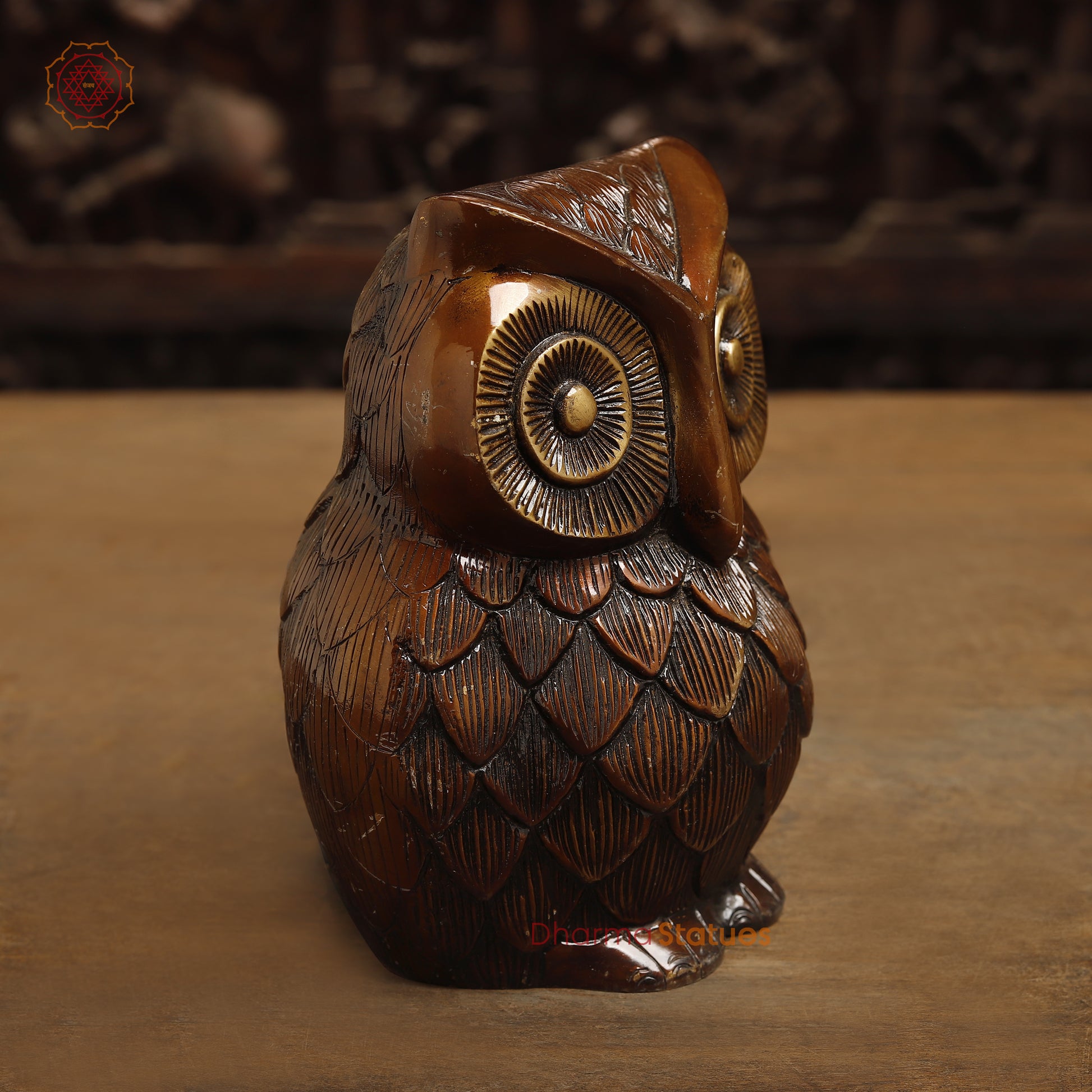 Brass Owl Statue, Copper with Golden Finish, 7.5"