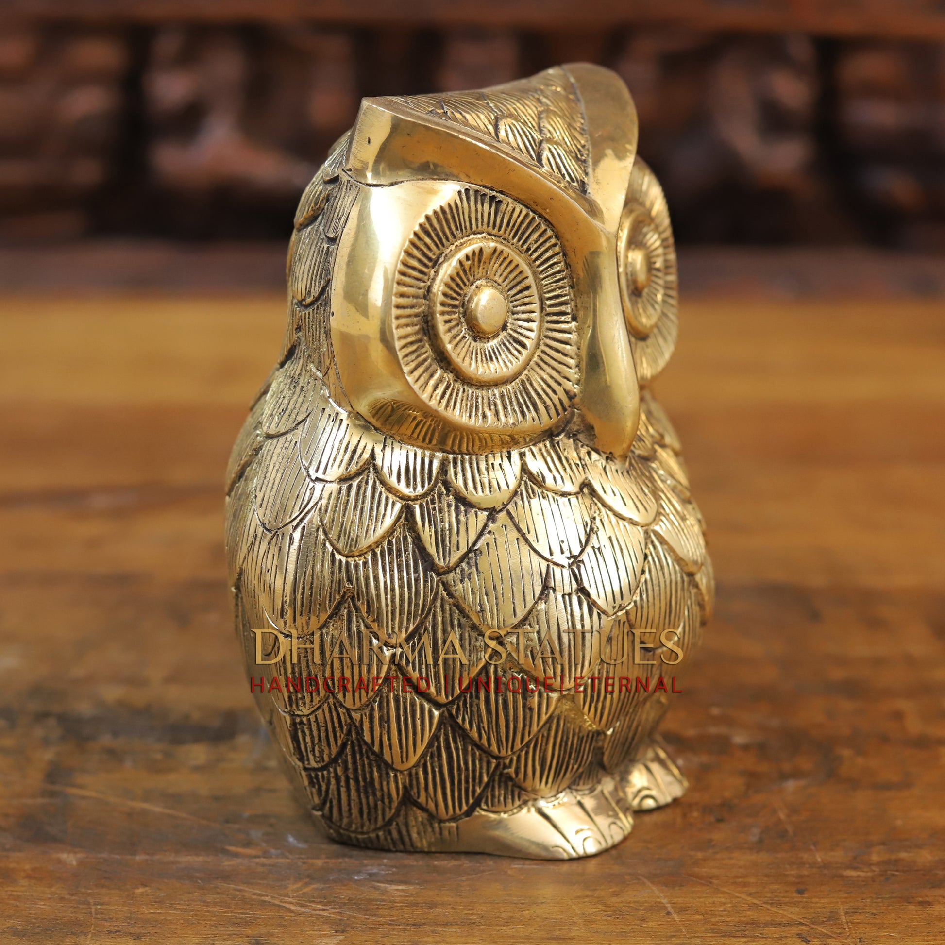 Brass Owl Statue, Fine Golden Finish, 7.5"