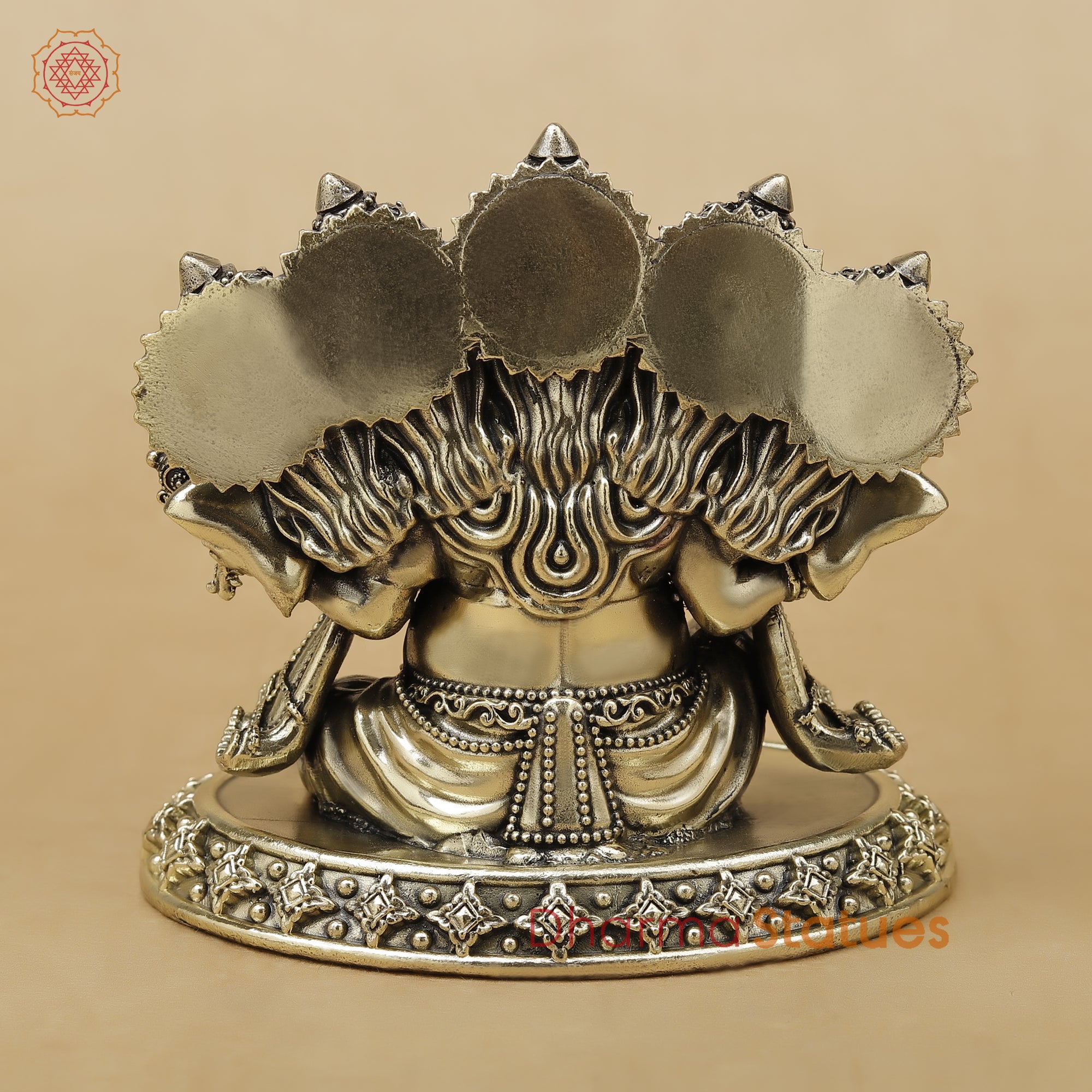 Designed in an elegant antique brass finish, the statue displays exceptional detailing, from the intricate crowns and expressive faces to the beautifully ornamented weapons and accessories. The round decorative base further enhances its grandeur, making it ideal for sacred spaces and premium décor setups.