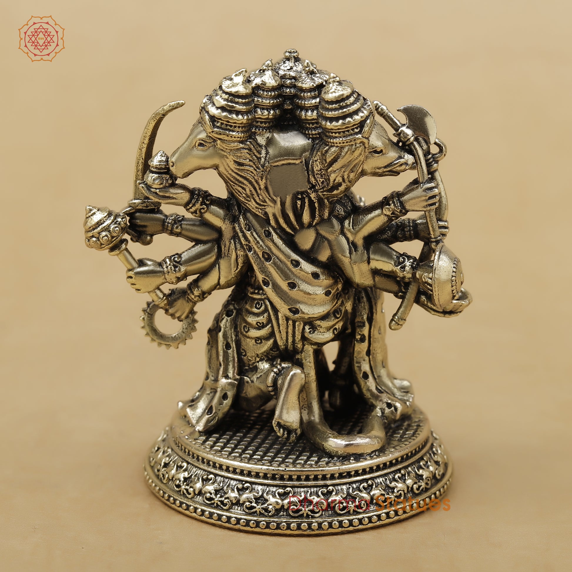 Bring home divine protection and unwavering strength with this intricately handcrafted Panchmukhi Hanuman idol. Designed in a stunning antique brass finish, this compact 3-inch masterpiece features all five faces and multiple weapons, symbolizing courage, wisdom, victory, and protection from negative energies. Perfect for puja rooms, work desks, cars, or gifting, it radiates powerful spiritual vibrations while adding a touch of traditional elegance to any space.