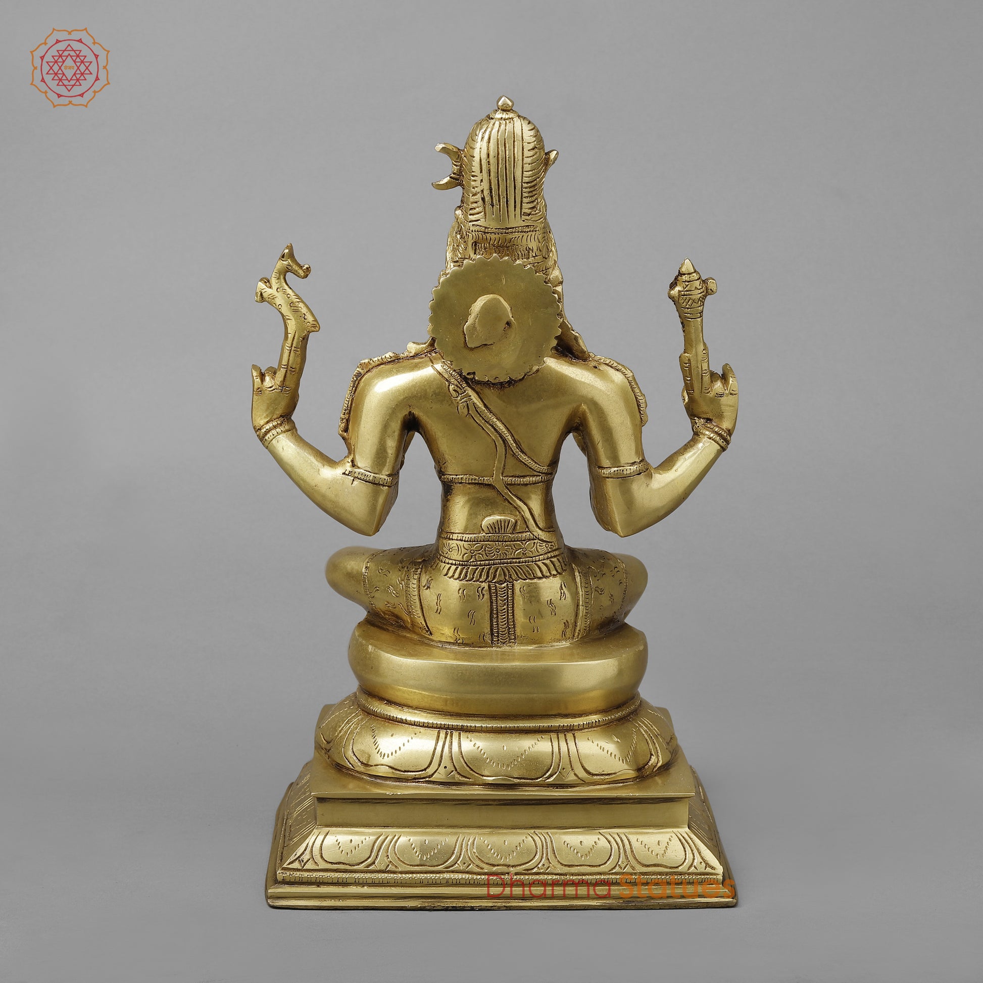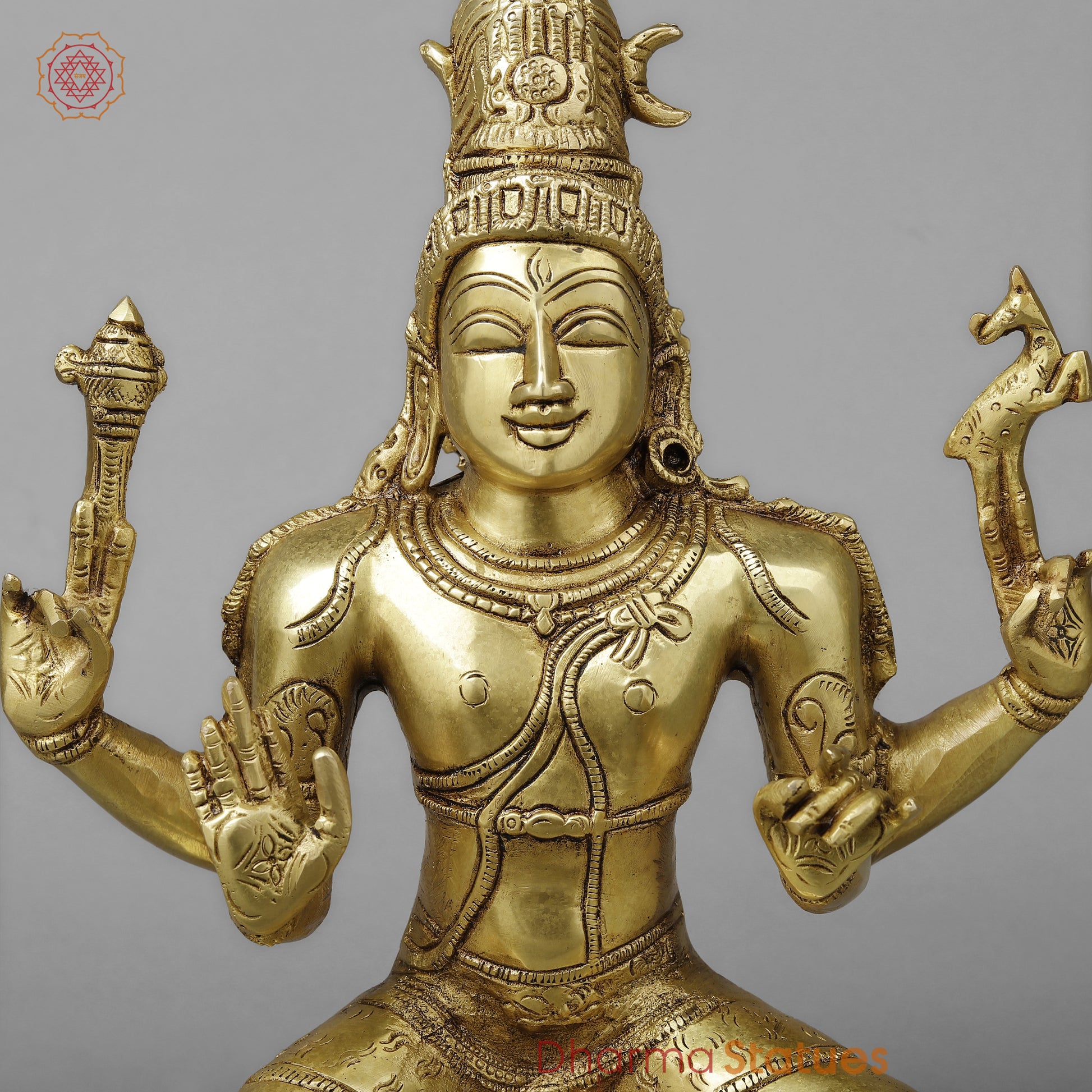 Brass Pashupatinath seated on Pedestal, Golden Finish, 14.5"