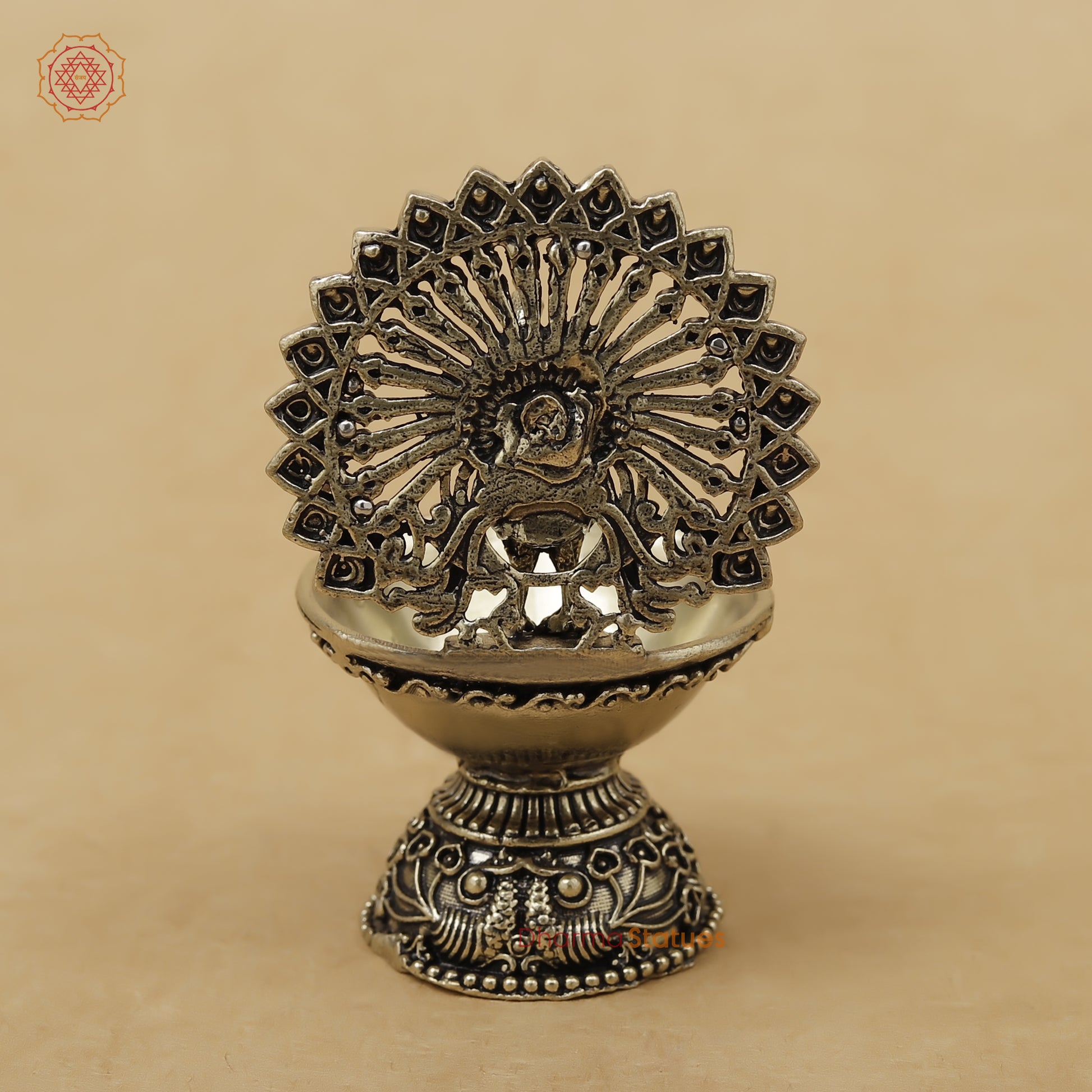 Featuring a majestic peacock with a fully spread feather fan, this diya combines traditional artistry with a regal aesthetic. The beautifully carved bowl is perfect for holding oil or ghee for daily puja, festive rituals, or decorative lighting.