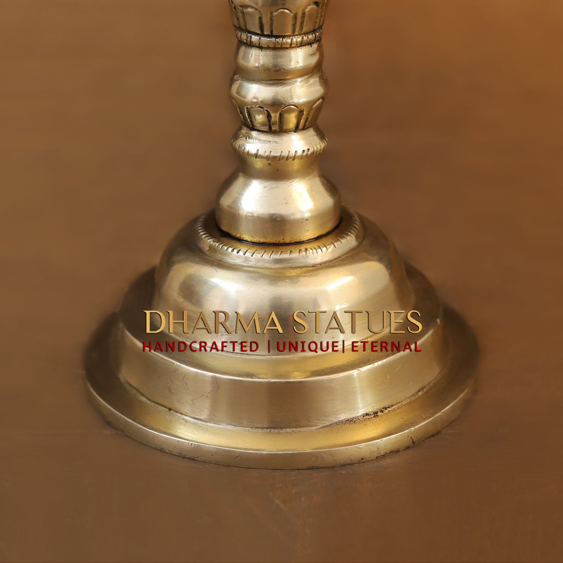 This elegant Brass Peacock Diya with Bells is the perfect addition to your home decor. The intricate peacock design and fine golden finish exude sophistication and charm. Illuminate your space with this beautiful diya and add a touch of traditional aesthetic to your surroundings. Best for Wedding Gift | Diwali Gift | Gift purpose | Temple | worshipping | Perfect for Home decoration | Office decoration.