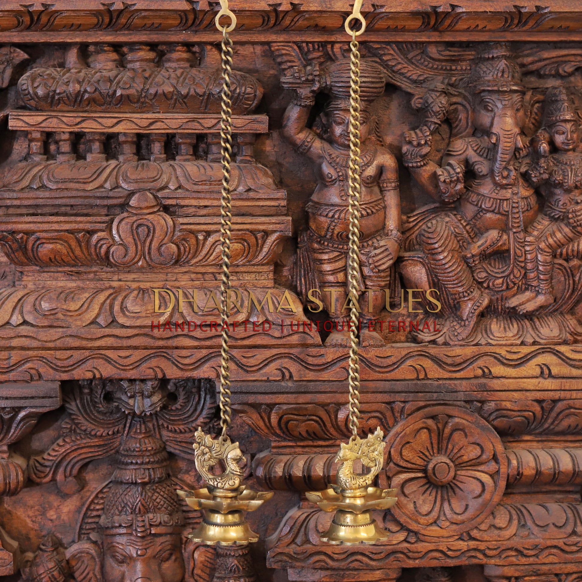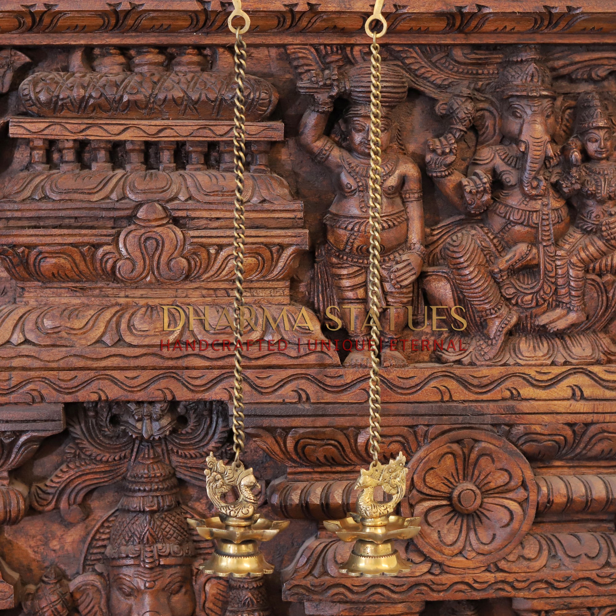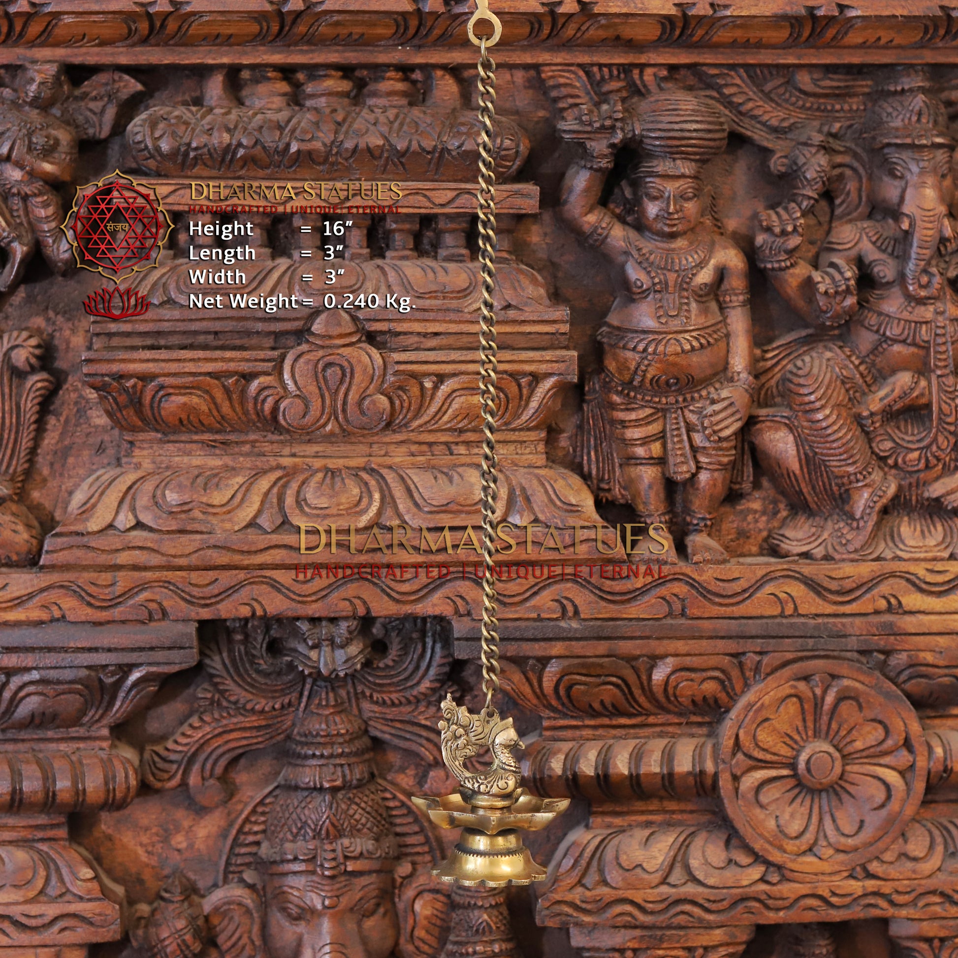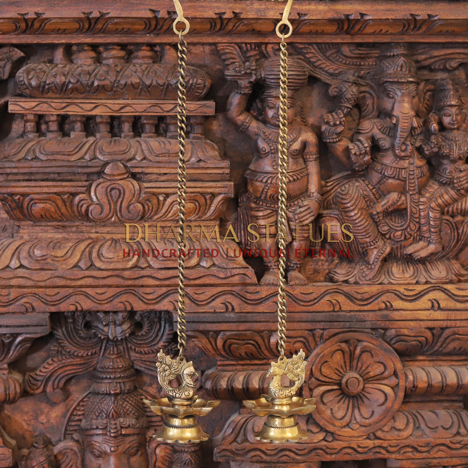 Brass Peacock Hanging Diya, Fine Golden Finish 16"